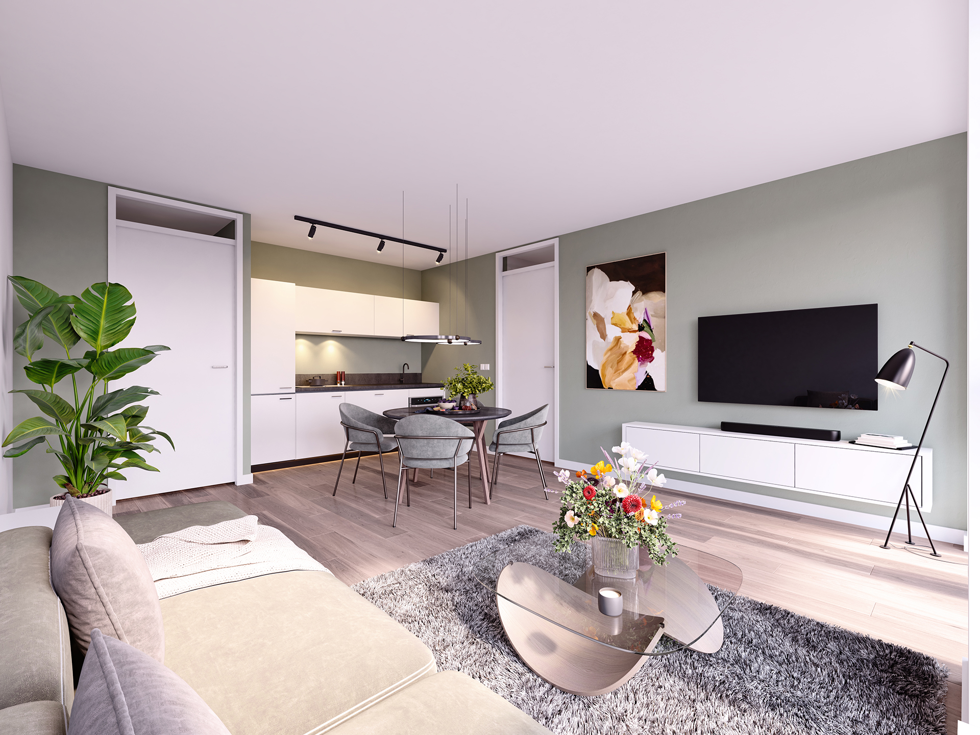 Of je nou graag je voeten op de grond houdt of het juist liever hogerop zoekt: in GOUD heb jij keuze uit 35 moderne appartementen, waaronder twee luxe penthouses op de zevende verdieping. De appartementstypen variëren in grootte van 55 m² tot 161 m². Welk appartement je ook kiest, jij geniet van een ruime woonkamer met een open keuken, een handige inpandige berging en 1, 2 of zelfs 3 fijne slaapkamers.