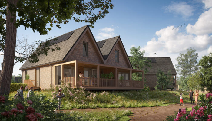 Vuurkorf aan. Dekentje over je benen. Je hoofd op de schouder van je lief. De kinderen liggen na een hele dag hutten bouwen, kikkervisjes vangen en bomenklimmen frisgewassen – het was even boenen, maar ze zijn weer squeaky-clean – en uitgeteld in hun bedje. Boven je schittert een heldere sterrenhemel. Het was weer een zalige zomerdag. En nu de avond maar zo lang mogelijk rekken … Kenmerken: • 162 m² • Veranda ‘zwevend’ op de…