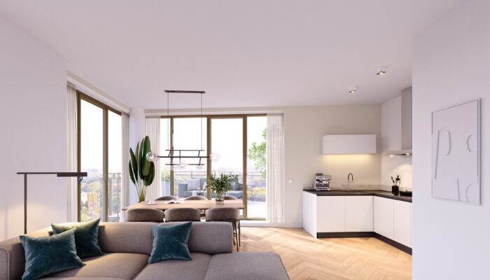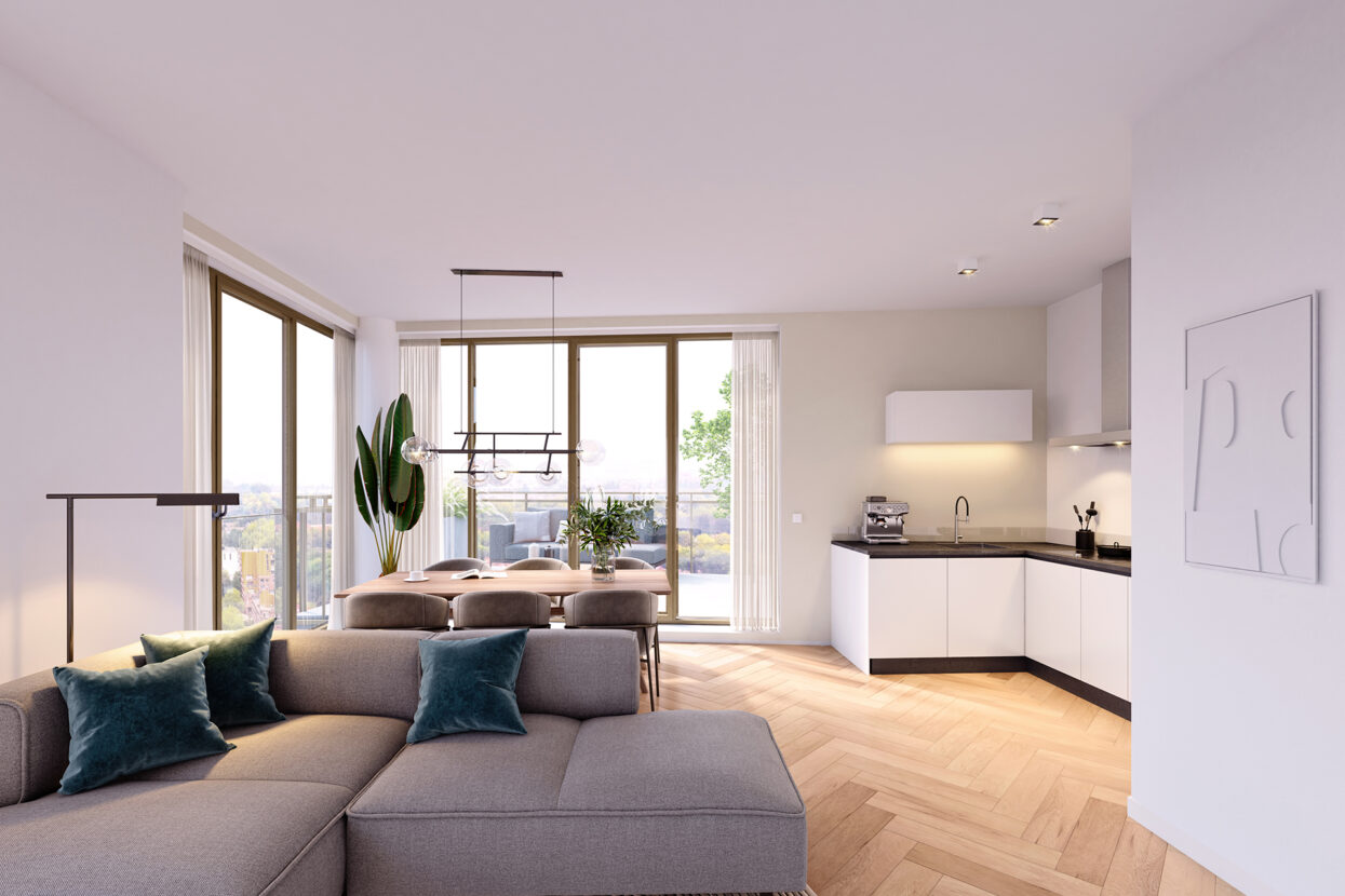 Door het dynamische, verspringende ontwerp van de woontoren is ieder appartement qua indeling en uitstraling uniek. Welk appartement je ook kiest, je geniet van een royale woonkamer met grote raampartijen, een ruime keuken, 2 of 3 slaapkamers, een zonnig balkon, 1 of 2 moderne badkamers, een separaat toilet, een handige inpandige én een externe berging en elke dag een uitzicht om van te dromen!