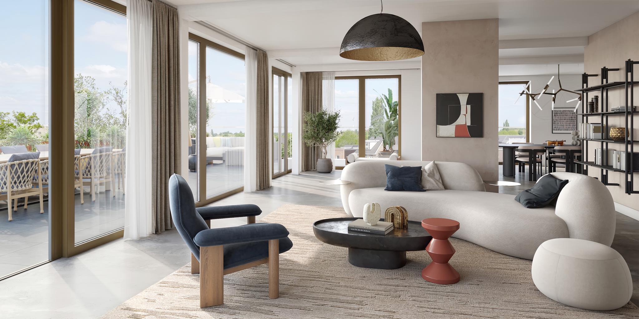 Als je kiest voor Triadome, kies je voor comfortabel wonen in een appartement, tuinloft (2-laags) of penthouse. Gunstig gelegen op de zon, energiezuinig, met veel ruimte voor groen en water, een gezellige openbare ruimte en een half verdiepte parkeergarage.