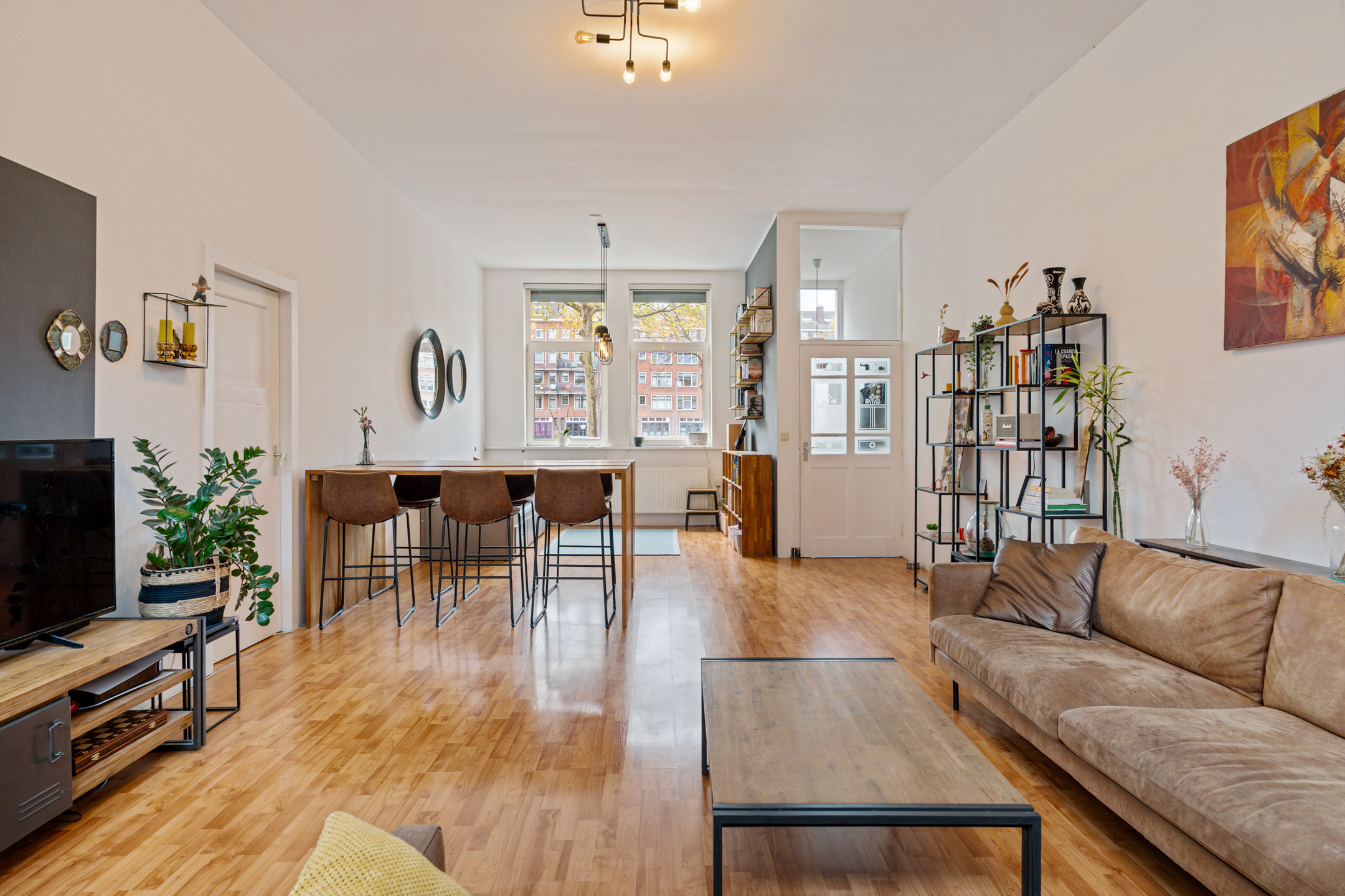 Deze royale 4-kamer benedenwoning met souterrain biedt bijzonder veel ruimte, hoge plafonds en een fijne achtertuin. De woonverdieping voelt open en licht door de hoge ramen aan zowel de voor- als achterzijde. In het souterrain vind je drie volwaardige slaapkamers en een luxe badkamer.