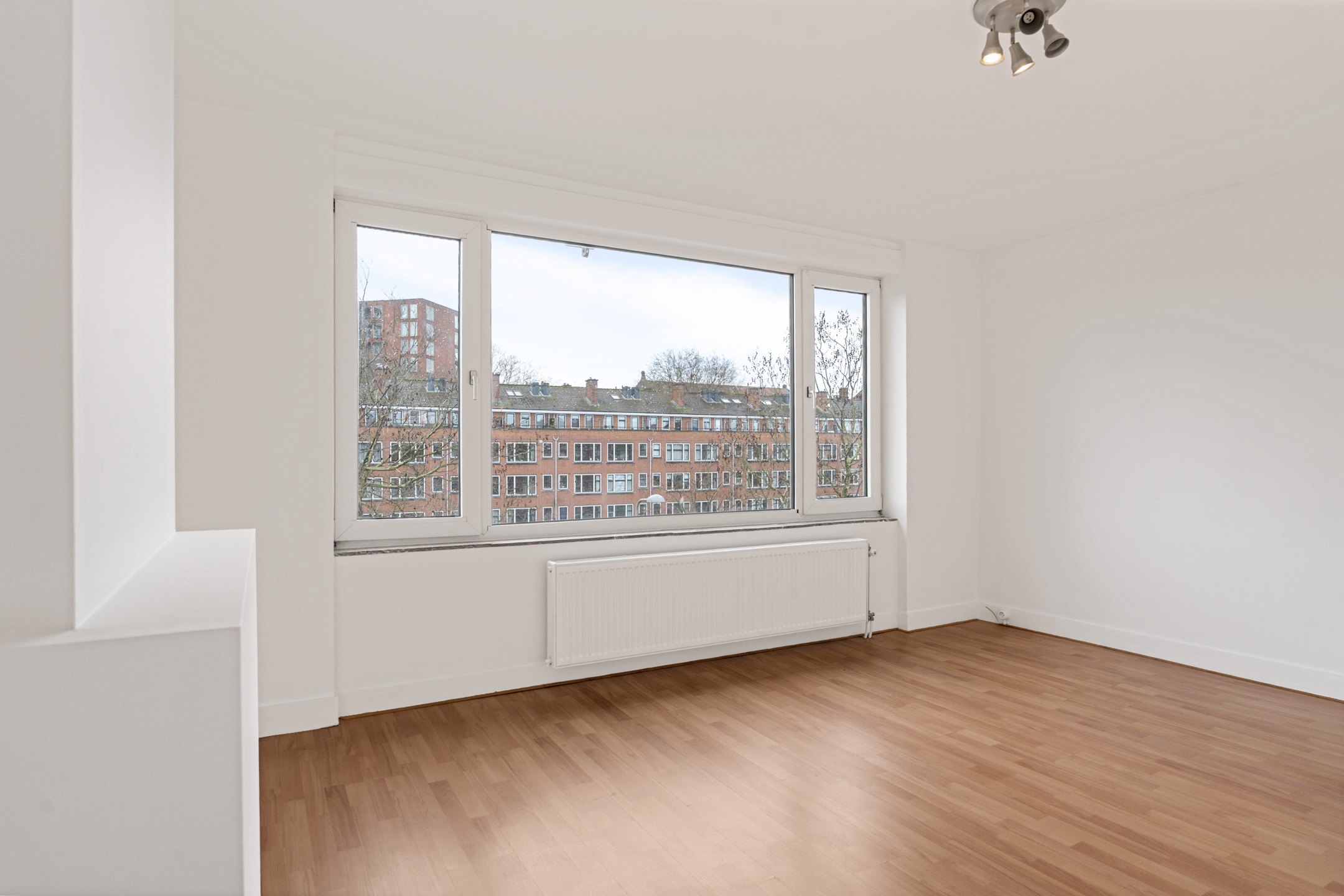De woonkamer bevindt zich aan de voorzijde en biedt een prachtig uitzicht over de Delfshavense Schie. Dankzij de grote raampartijen is dit een lichte en aangename leefruimte met een ruimtelijk gevoel.