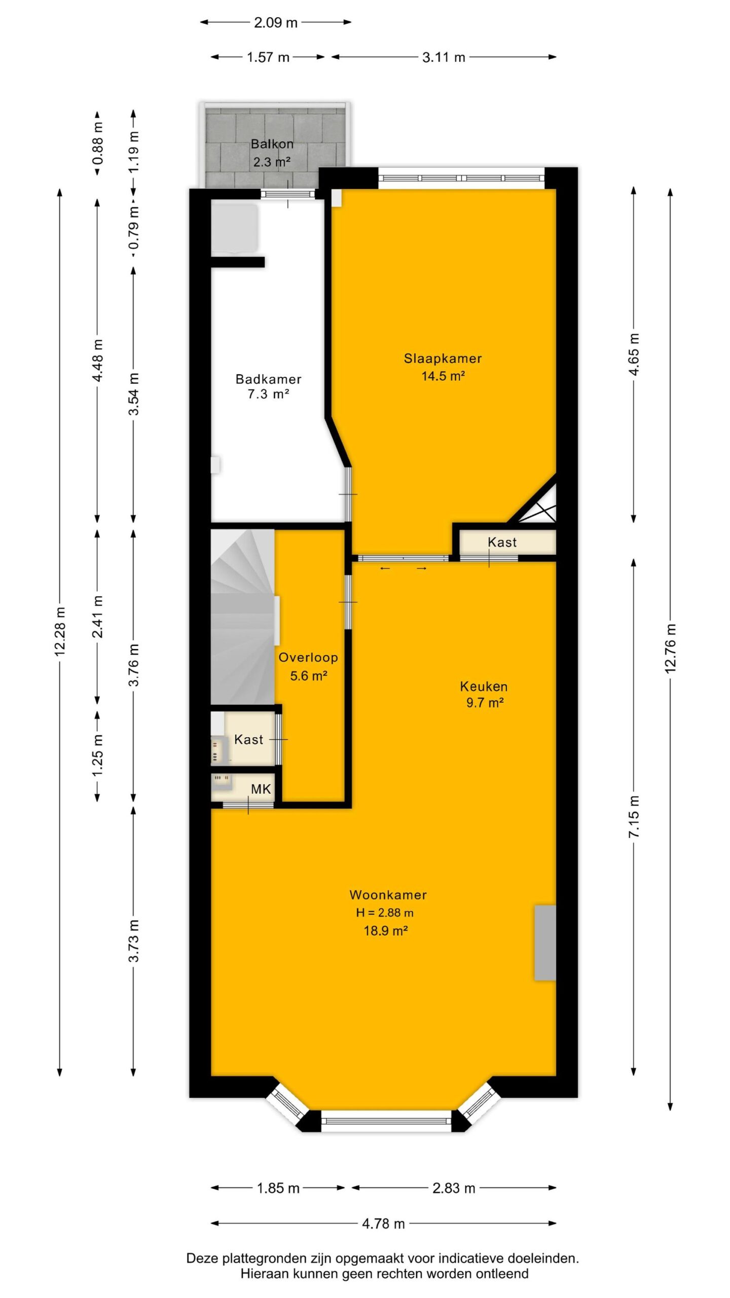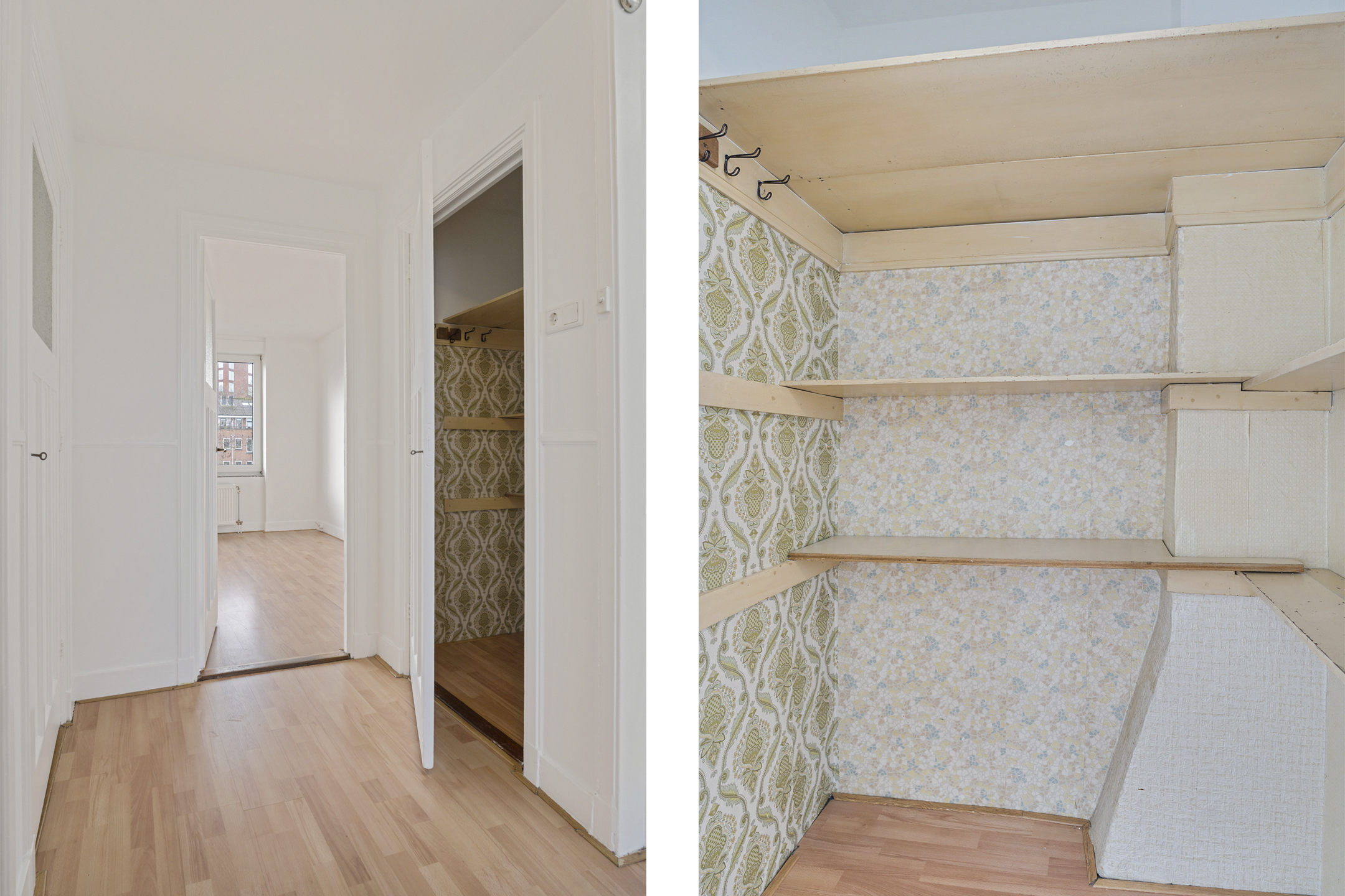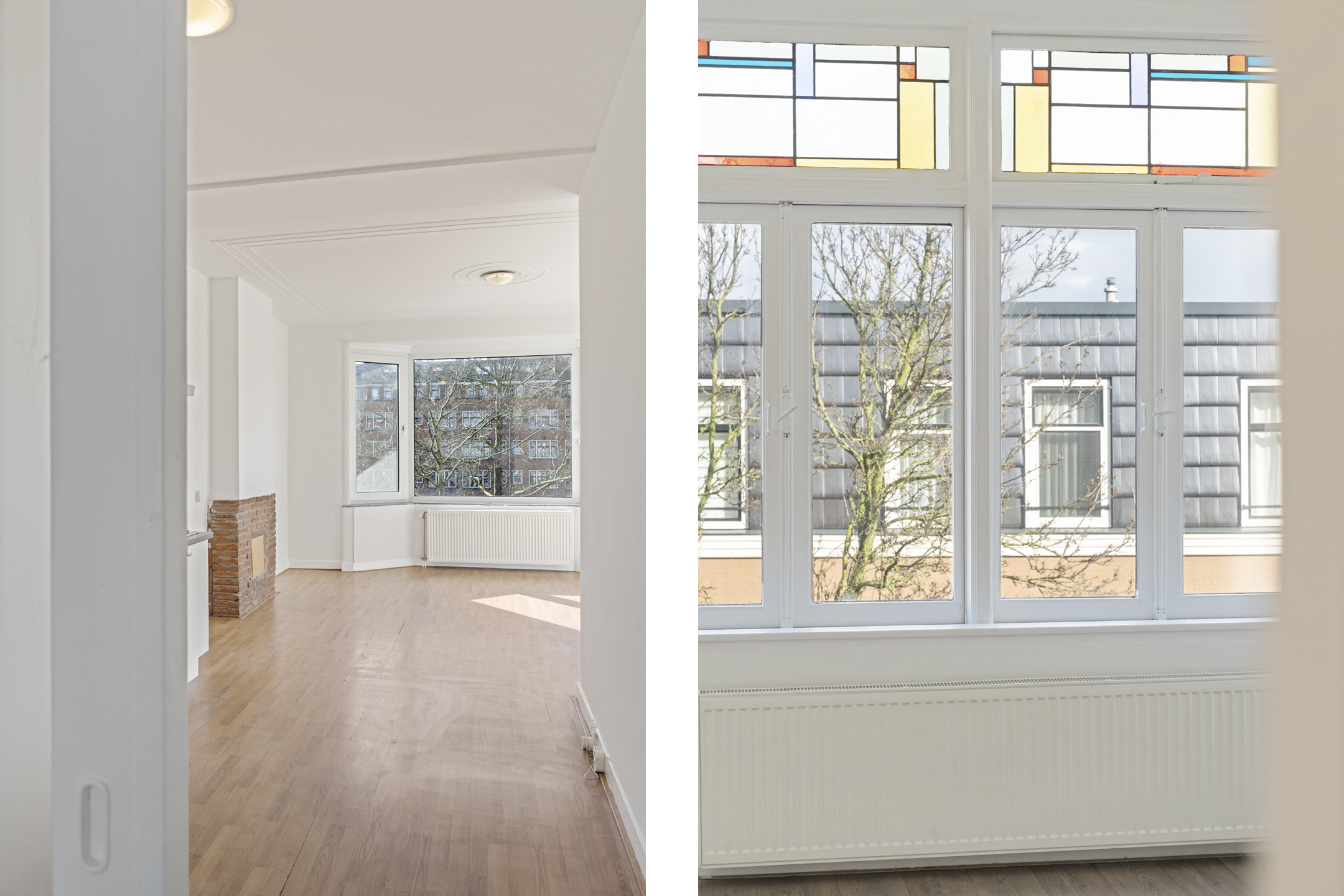 De woning is verdeeld over de tweede en derde verdieping en wordt in de praktijk gebruikt als twee appartementen, elk met een eigen keuken en badkamer. Daardoor is de woning ideaal voor dubbele bewoning, werken aan huis of het gebruik als één ruime bovenwoning. Dankzij de grote raampartijen aan de voorzijde geniet je bovendien van veel natuurlijke lichtinval en een open gevoel.