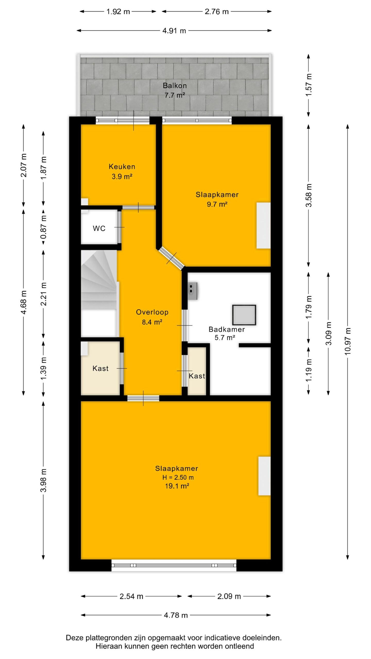 De indeling maakt het mogelijk om deze verdieping zelfstandig te gebruiken, maar de woning kan uiteraard ook eenvoudig als één ruime bovenwoning worden benut.