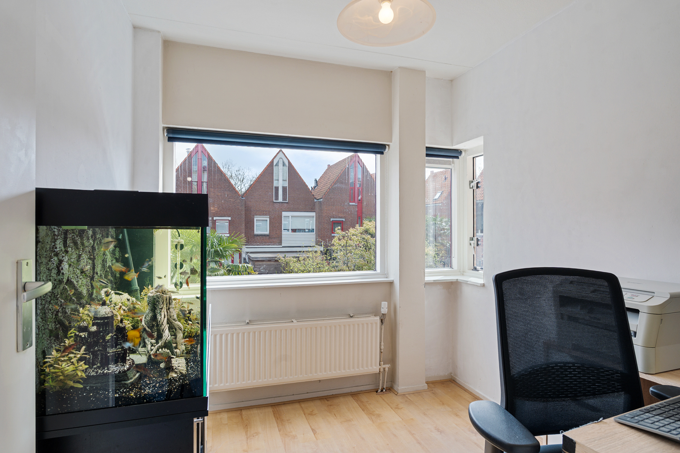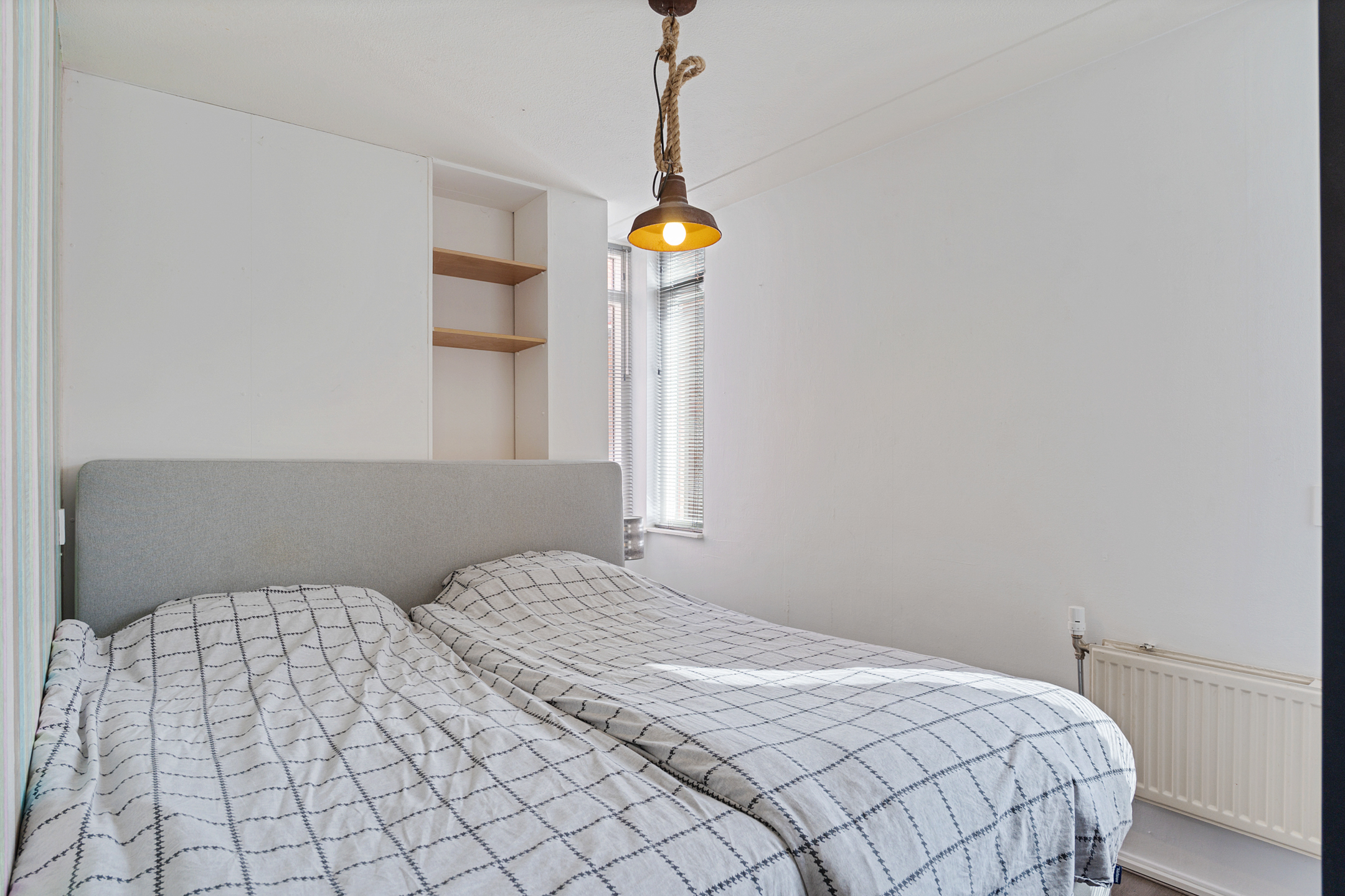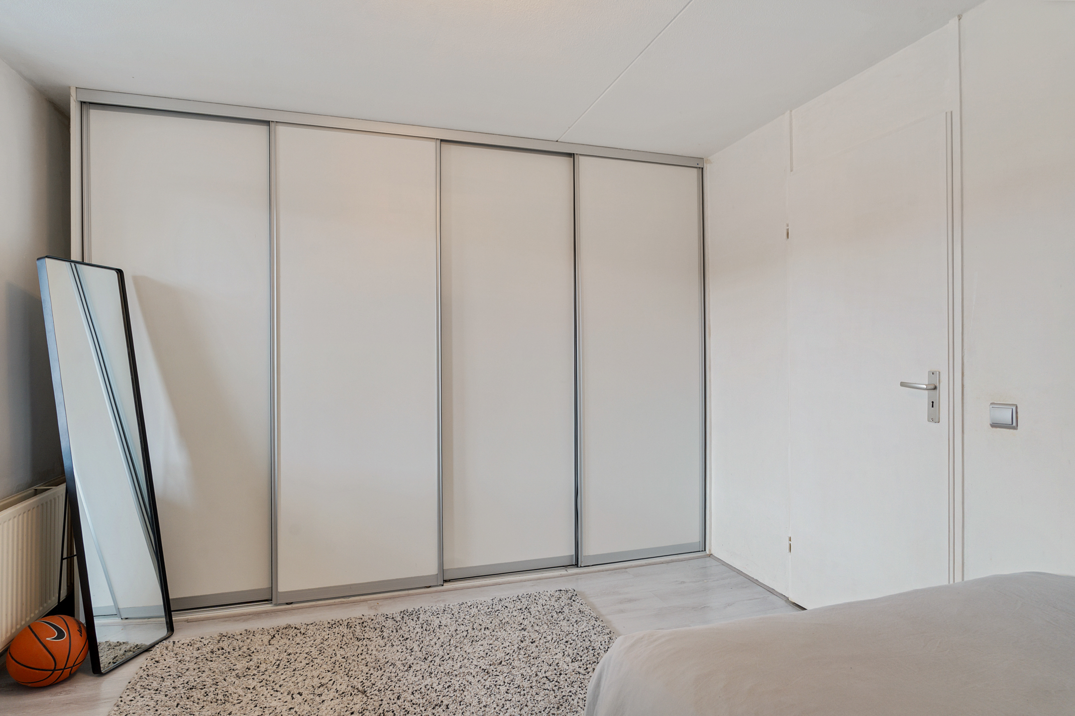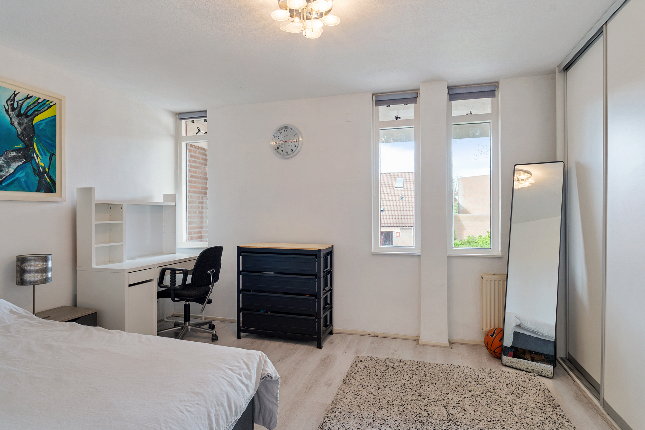 Op deze verdieping beschik je over drie slaapkamers, elk met een eigen indeling en mogelijkheden. De grootste slaapkamer ligt aan de voorzijde van de woning en is royaal opgezet. Dankzij de raampartijen valt er veel daglicht naar binnen, wat de ruimte extra prettig maakt. De kamer biedt volop plek voor een groot bed en is voorzien van een kastenwand. De tweede slaapkamer is eveneens goed bemeten en ideaal als kinder- of werkkamer. Ook hier zorgen de ramen voor een fijne lichtinval. De kamer is praktisch in te richten en biedt voldoende ruimte voor een bed, bureau en kast.