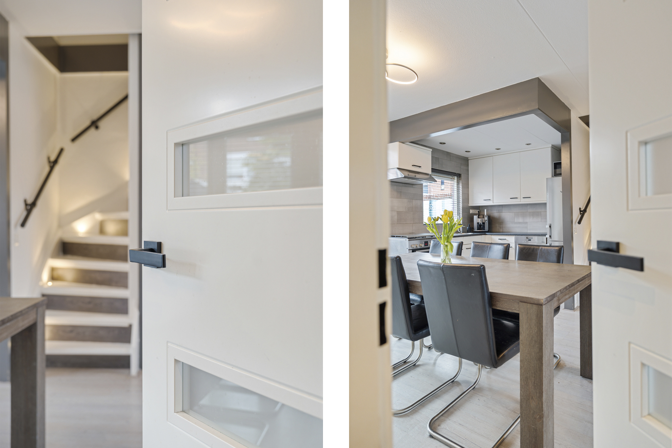 De gang vormt de centrale verbinding tussen de verschillende ruimtes op de begane grond. Alles voelt hier praktisch en overzichtelijk, met een prettige doorloop richting de leefruimte.