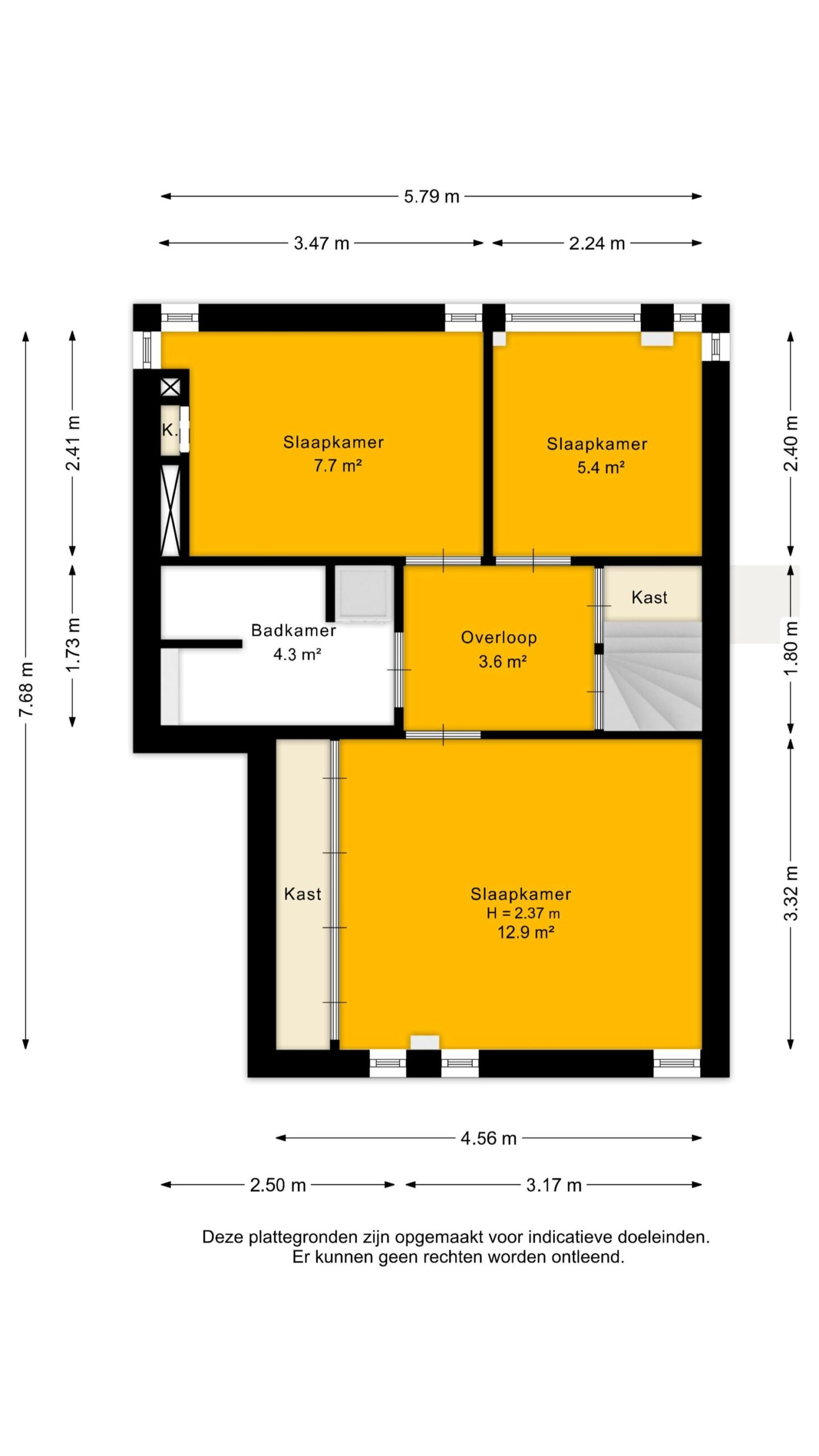 Via de trap kom je op de overloop die centraal in de woning ligt en toegang geeft tot alle vertrekken op deze verdieping. De indeling is praktisch en overzichtelijk, precies zoals je dat wilt in een gezinswoning. Vanuit hier bereik je de drie slaapkamers en de badkamer.