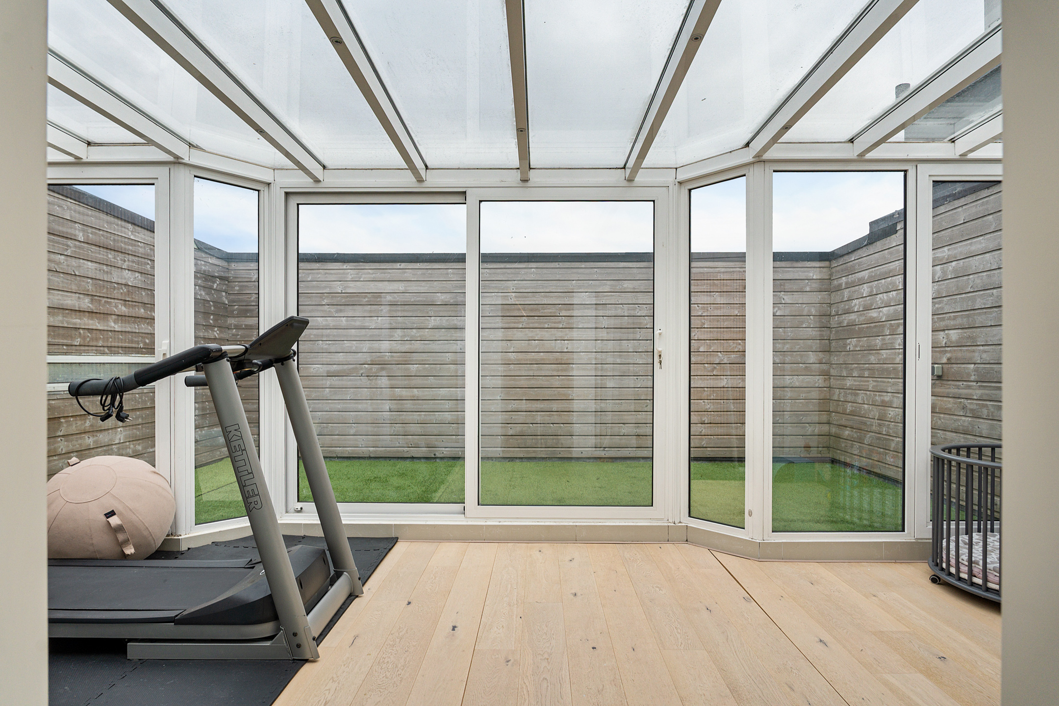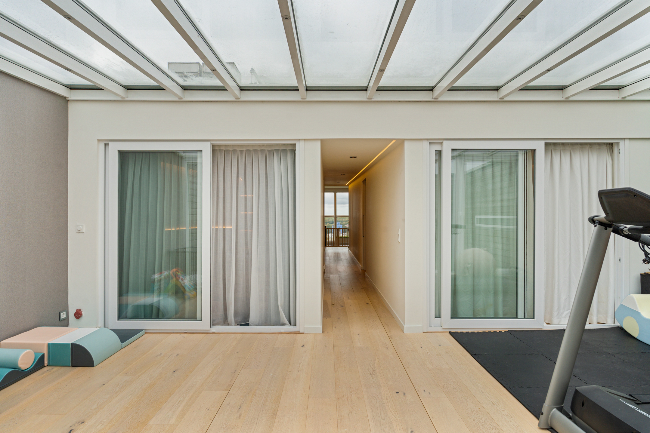 De hoofdslaapkamer is een droom op zich: ruim, elegant en voorzien van een maatwerk walk-in closet. Vanuit hier heb je direct toegang tot de serre van circa 20 m², nu ingericht als fitnessruimte, maar net zo goed geschikt als lounge of atelier. Aangrenzend vind je het zonnige dakterras van circa 17 m² – privé, beschut en met een uitzicht dat elke dag anders lijkt.