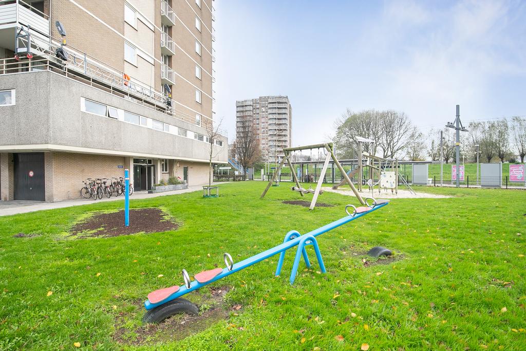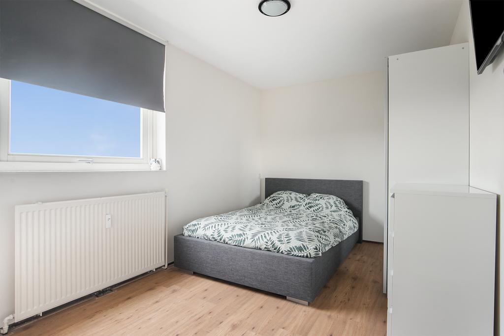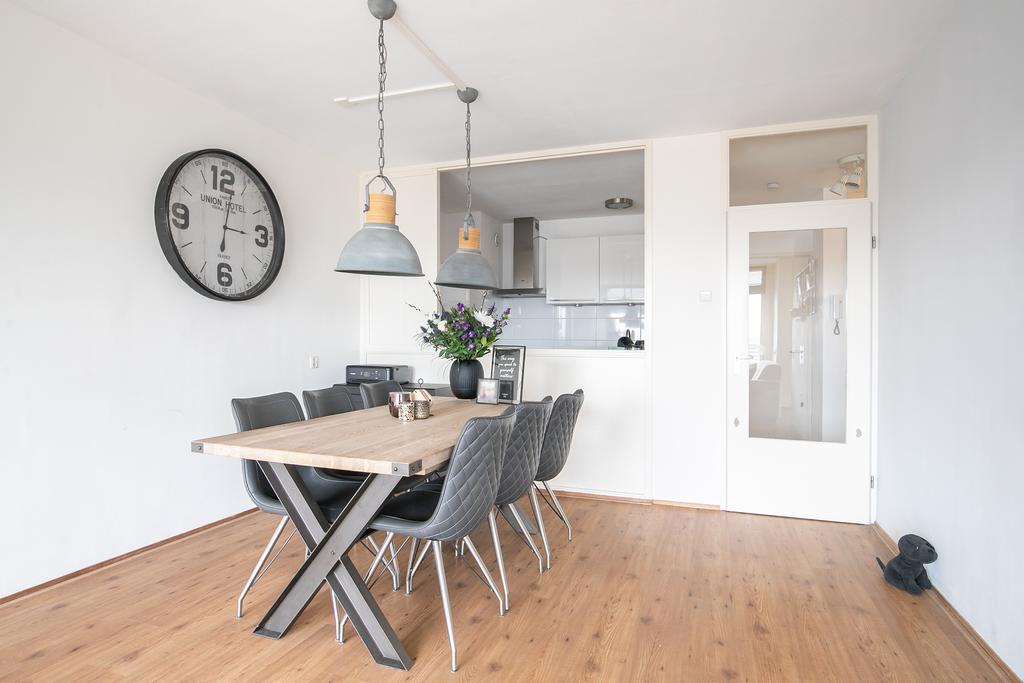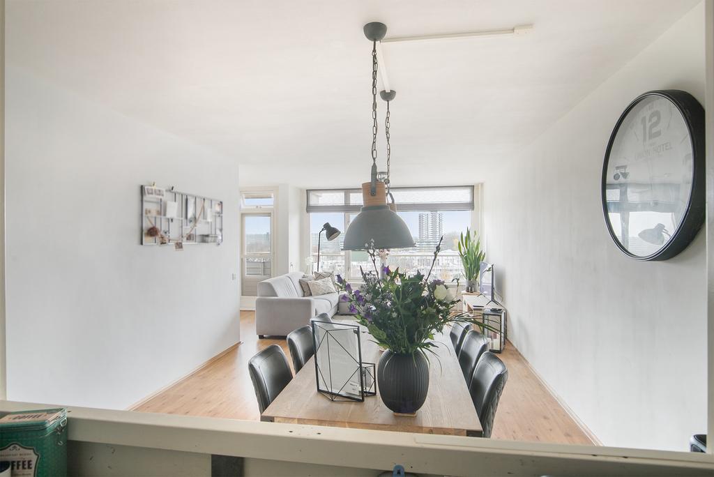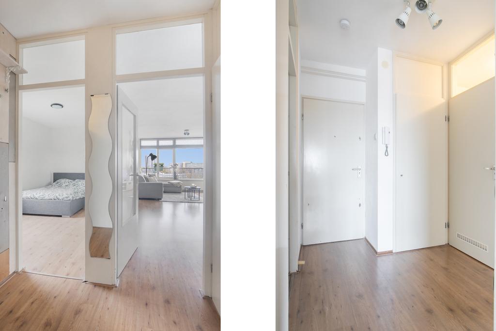 Op de 8ste etage van dit kleinschalige appartementencomplex vind je de sfeervolle woning met moderne elementen. Je stapt binnen in een ruime hal met een meterkast en een inpandige bergkast. Vanuit de hal is er toegang tot alle ruimtes in het appartement.