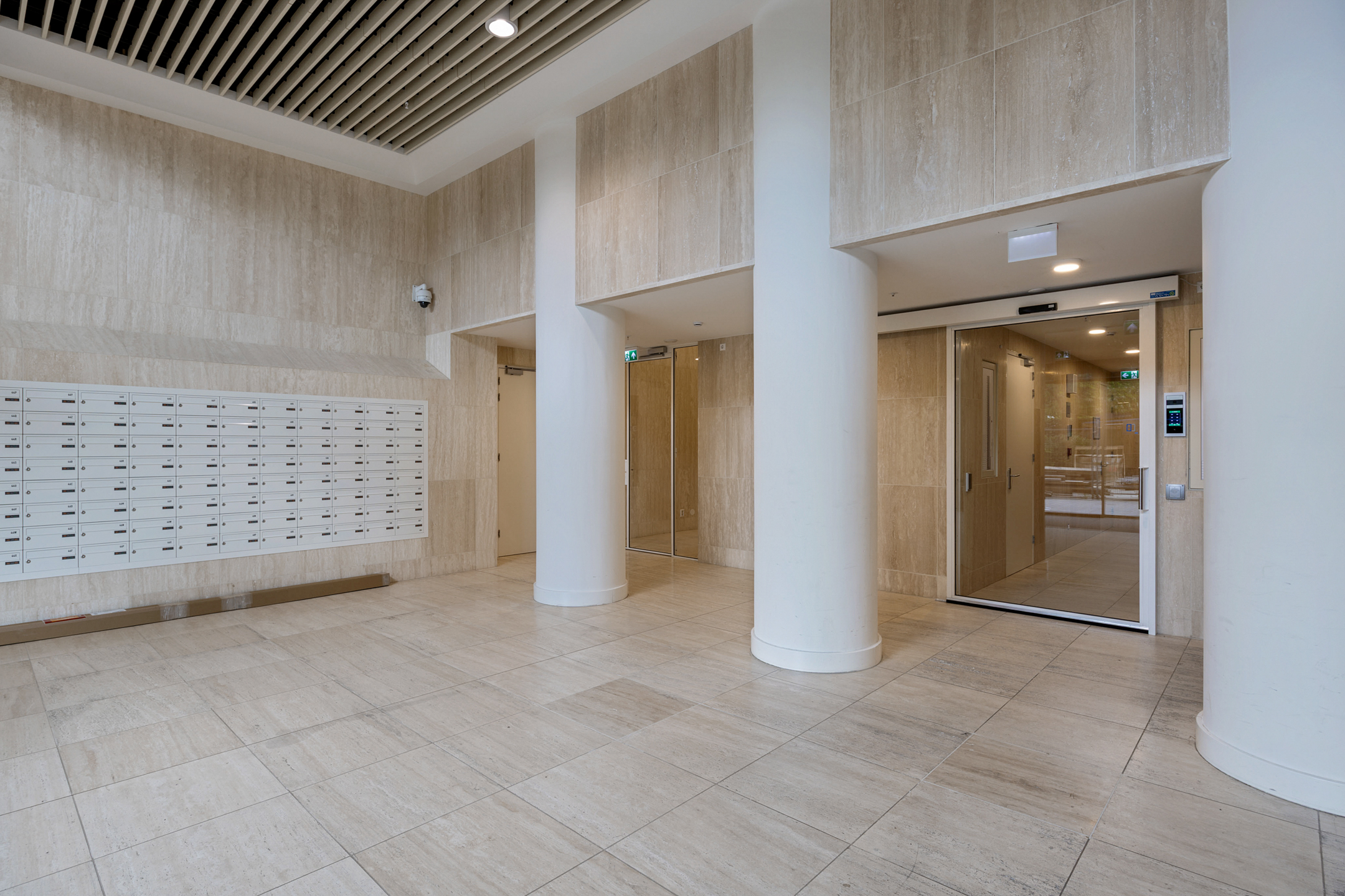 Bij binnenkomst stap je in de indrukwekkende entreehal van The CoolTower: hoogwaardig afgewerkt, met een portier, drie liften en een opzet die ruim, stijlvol en uitnodigend is.