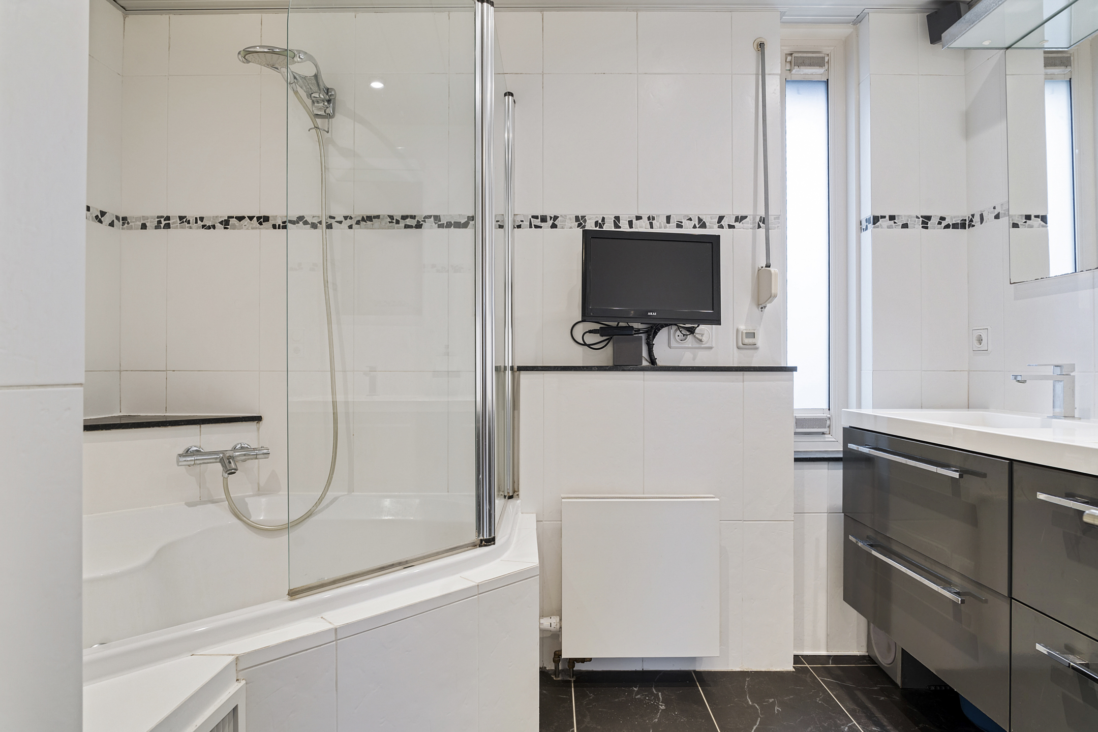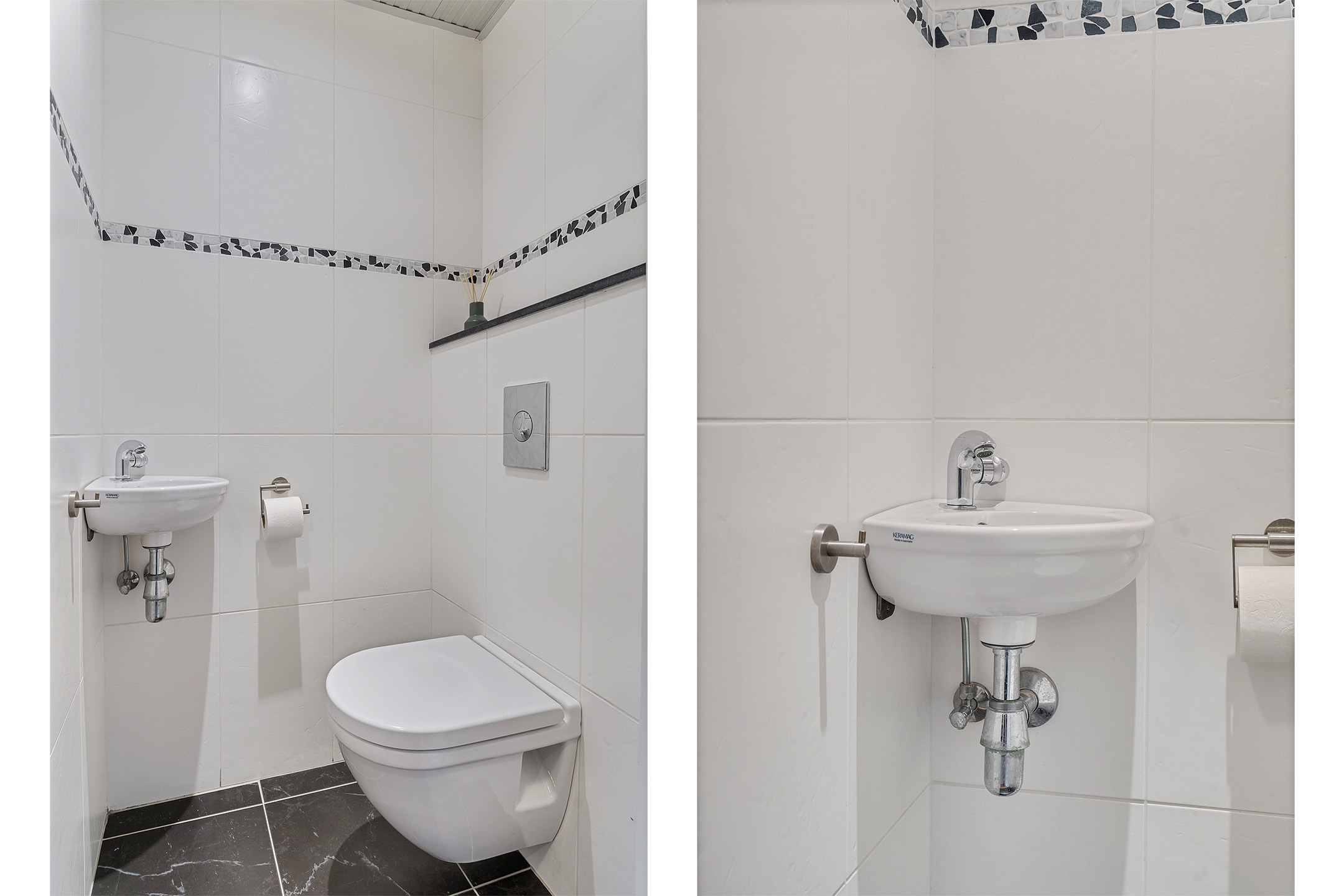 Het geheel is uitgevoerd in dezelfde mooie betegeling, wat zorgt voor een moderne en harmonieuze uitstraling.