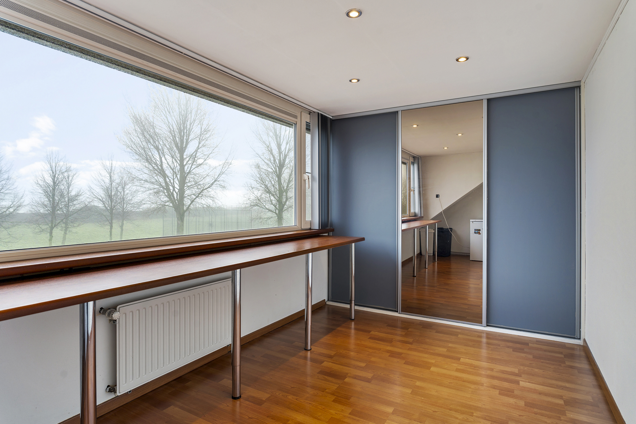 De overloop biedt toegang tot drie kamers, de badkamer en een separaat toilet. Aan de voorzijde bevindt zich een slaapkamer van circa 9 m². Aan de achterzijde is er een praktische garderobekamer en een ruime slaapkamer van circa 14,5 m², welke dienst kan doen als master bedroom en een prachtig uitzicht biedt op de tuin.