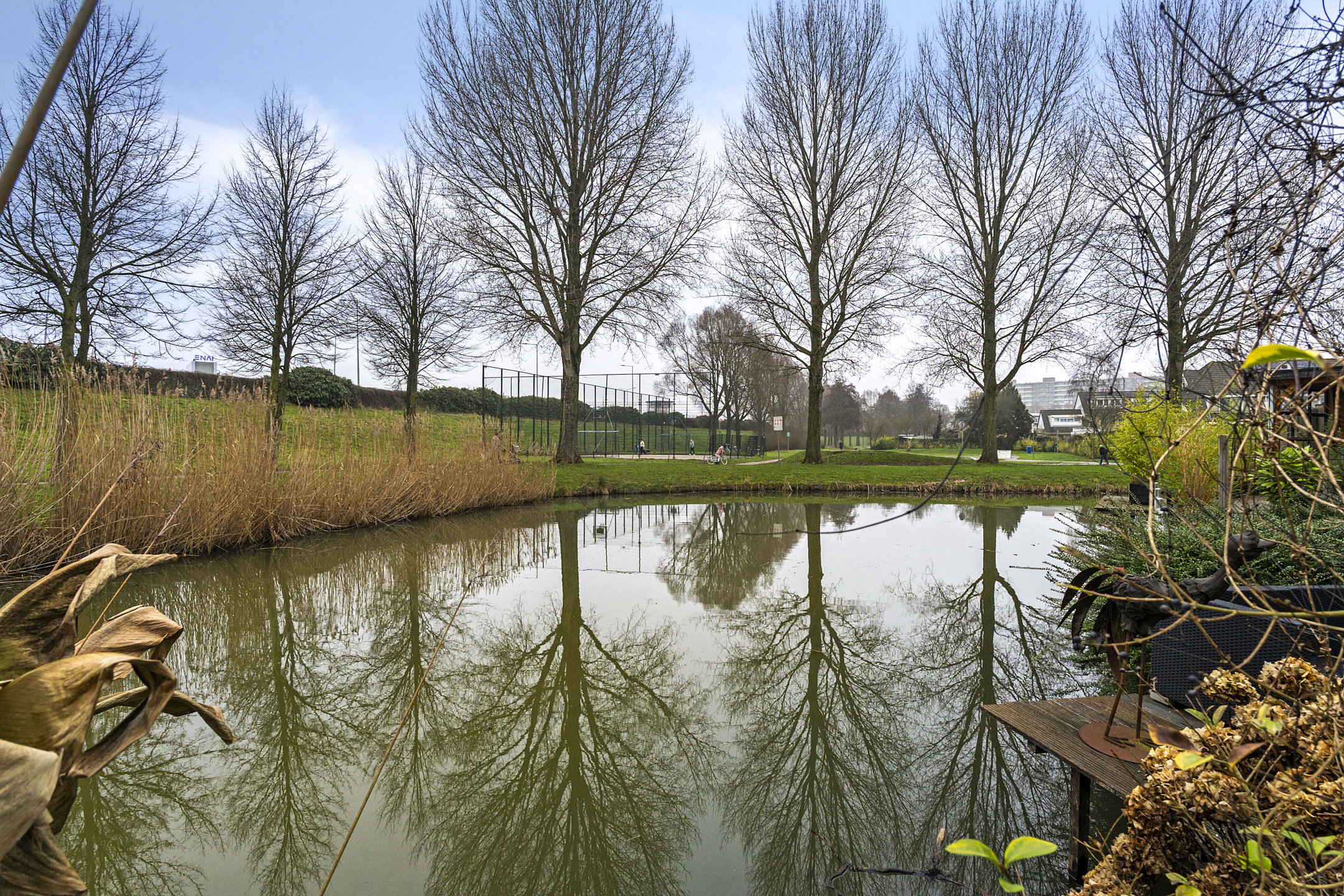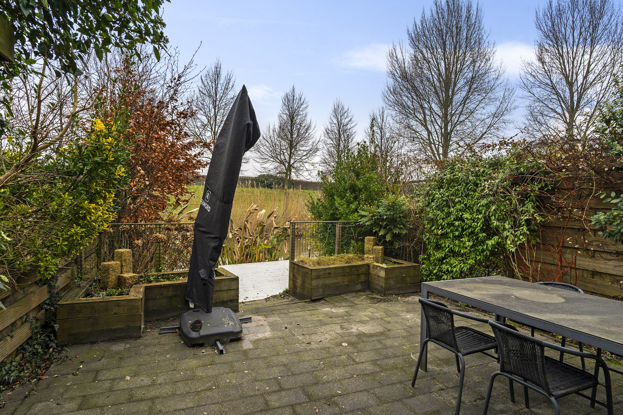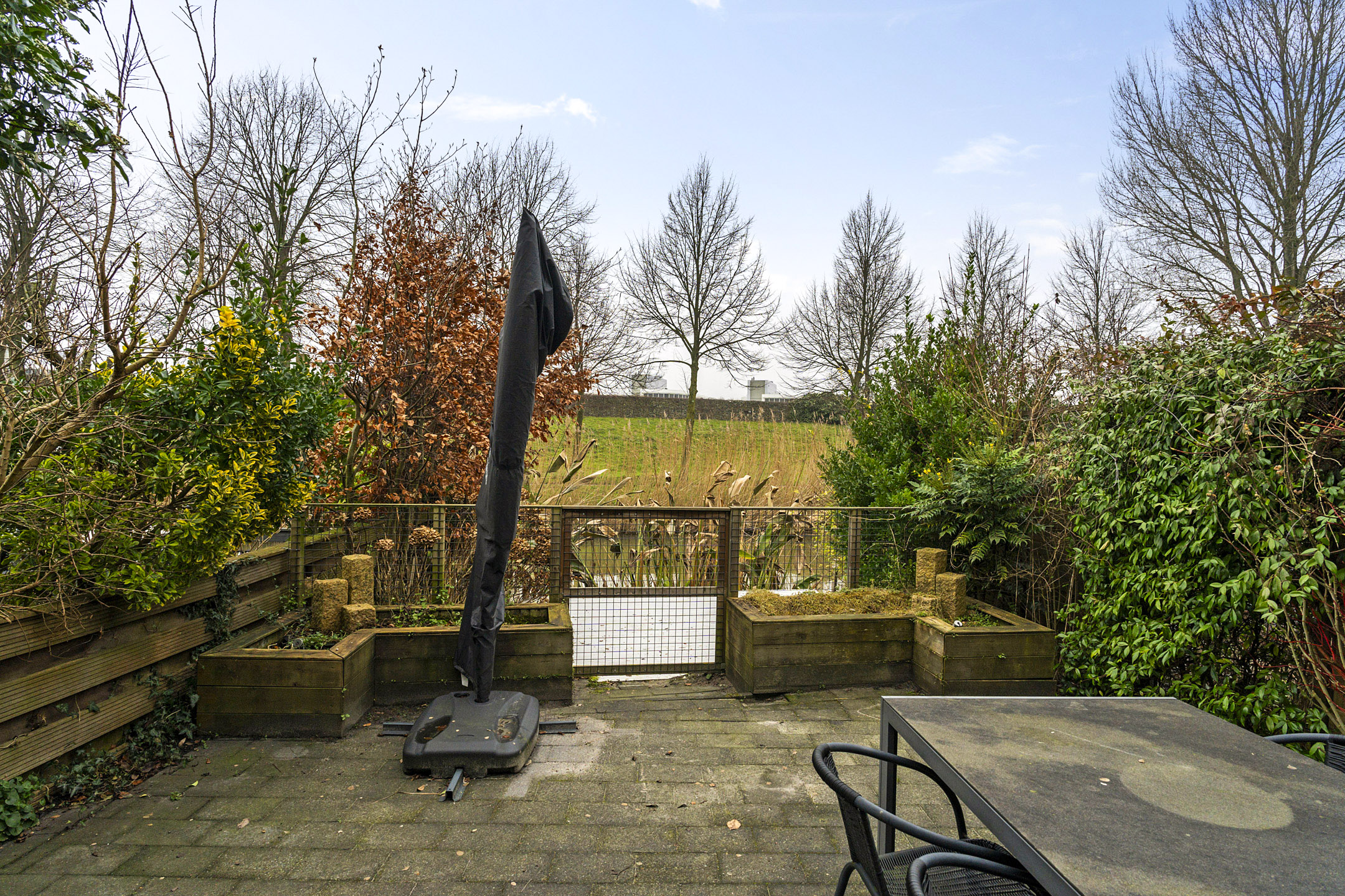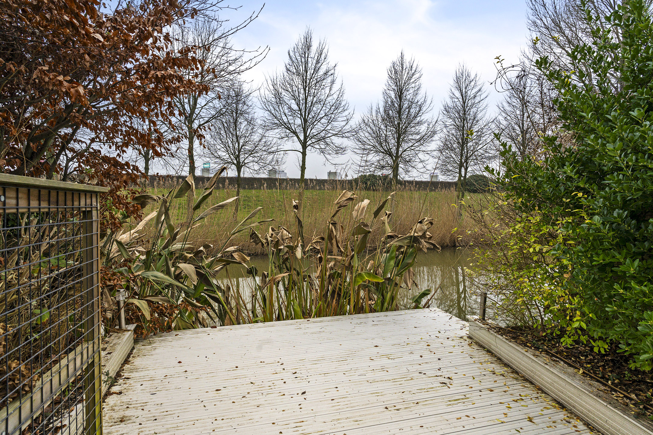 De diepe achtertuin, gelegen op het noordwesten, is fraai aangelegd en biedt zowel een terras aan de gevel als een onderhoudsarme aluminium vlonder aan het water. Dankzij het water en de aangrenzende groenstrook is de ligging heerlijk privé.