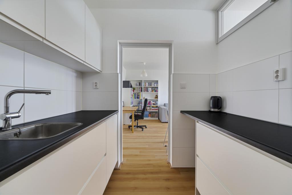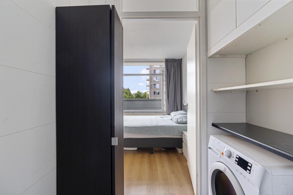 Ruime hal, meterkast, toilet, Ruime woonkamer met aangrenzende keuken. Luxe keukeninrichting voorzien van inbouw inductie kookplaat, combi-oven/magnetron en vaatwasmachine. Zeer ruime slaapkamer afgesloten door middel van openslaande deuren, moderne badkamer met wastafelmeubel, douche en opstelplaats was-apparatuur. Veel lichtinval in de woonkamer door grote raampartij. Vanuit de woonkamer toegang tot groot balkon op het westen. Het appartement is voorzien van een fraaie laminaatvloer.