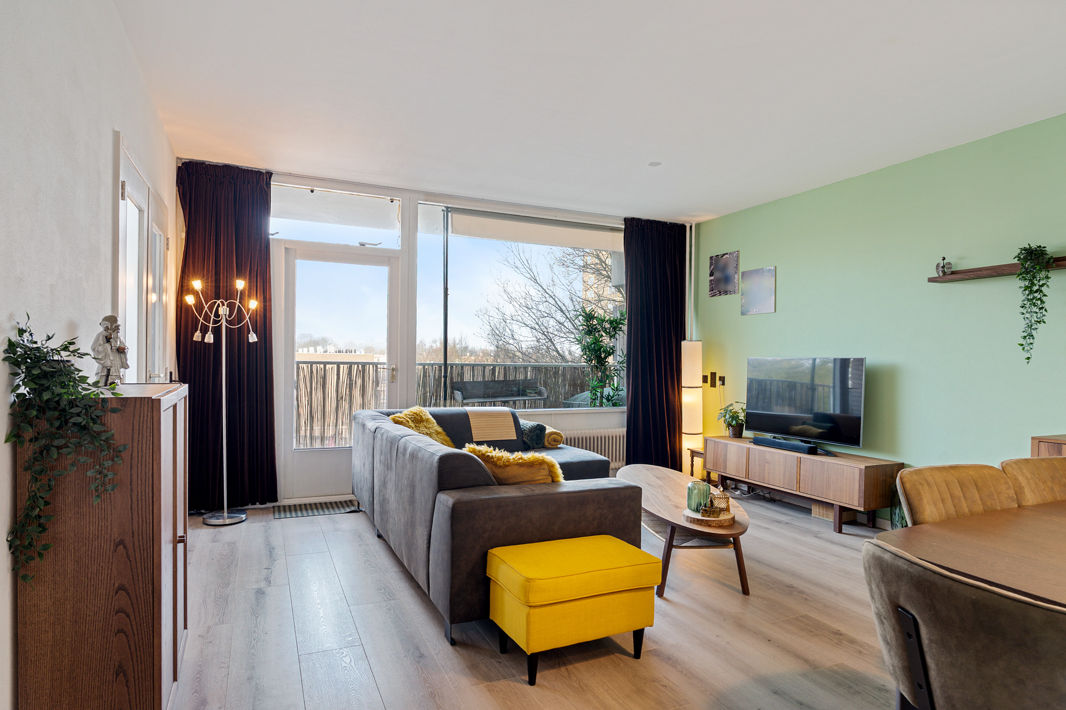 + Lichte woonkamer met kamerbrede raampartij