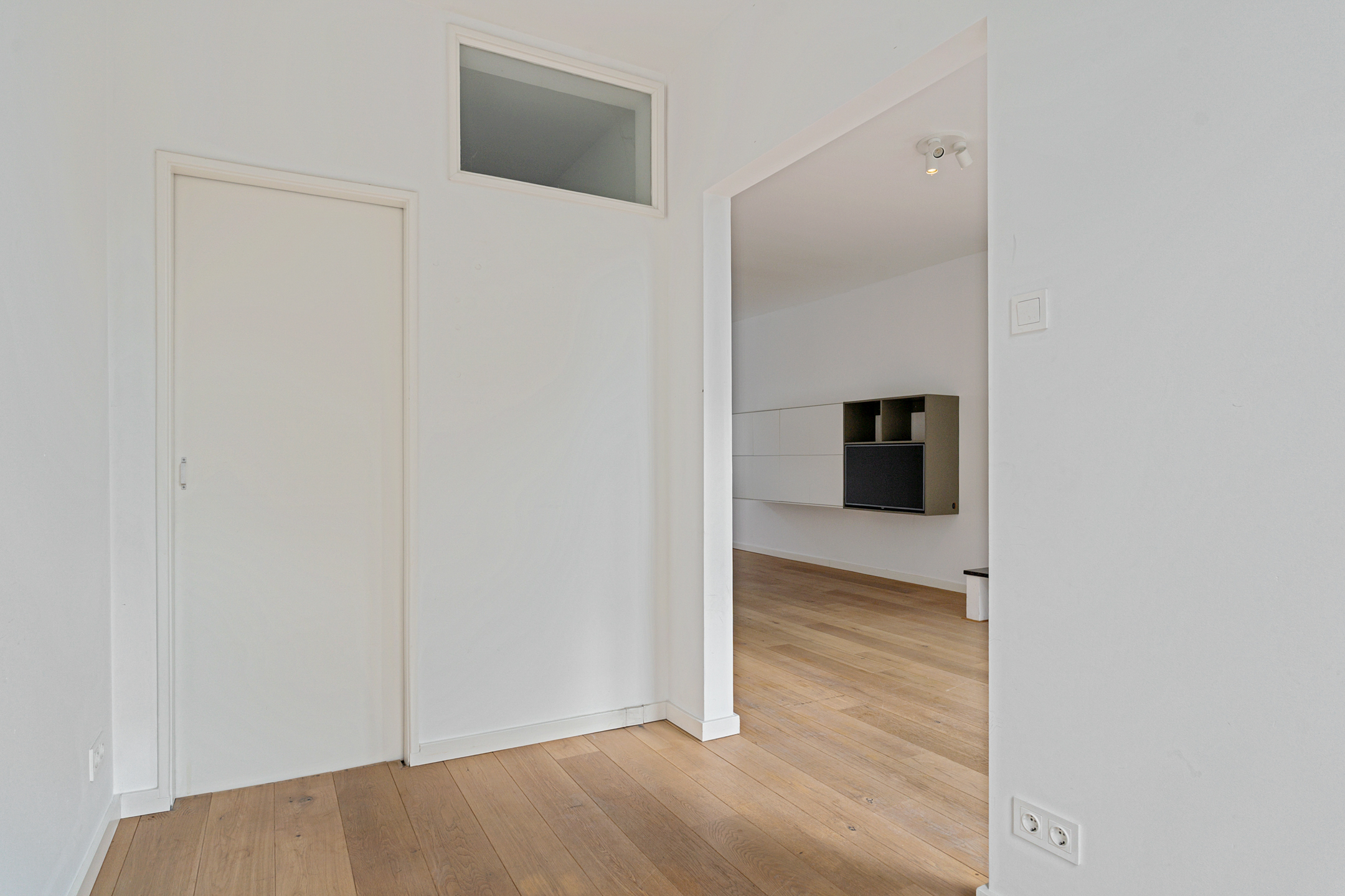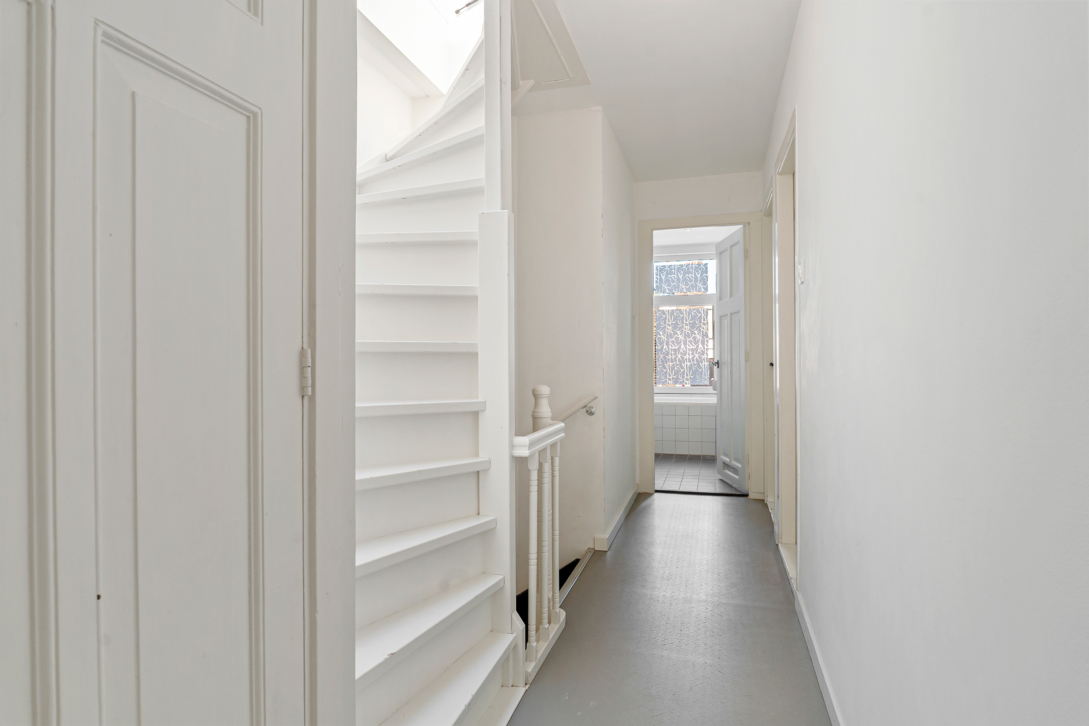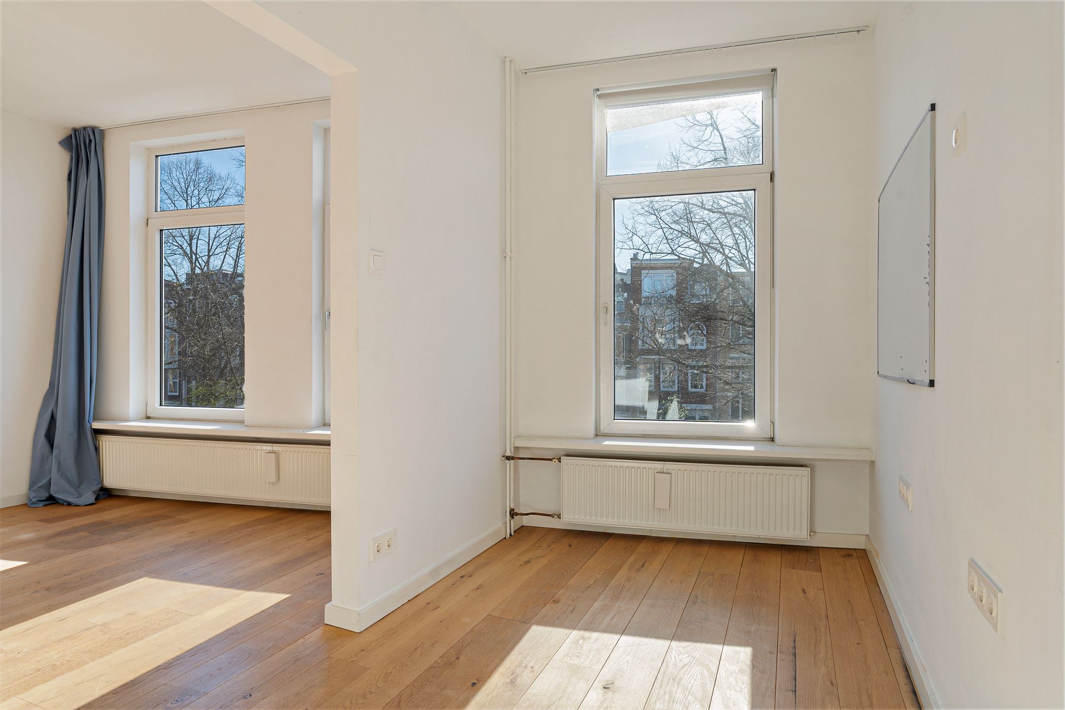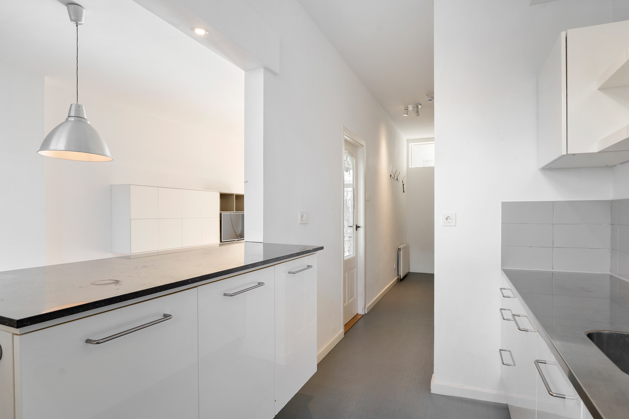 Op de tweede verdieping stap je binnen op de overloop die direct toegang verleend naar de keuken. Vervolgens stap je een royale woonkamer met hoge plafonds en grote raampartijen, die zorgen voor veel natuurlijk licht, binnen. De woonkamer is maar liefst 11 meter diep! Daarnaast vind je hier een separaat toilet en een multifunctionele kamer, perfect als werkplek of logeerkamer. Alhoewel de keuken een dichte keuken is, heeft de eigenaar middels een opening in de muur een leuke doorkijk naar de woon/eetkamer gemaakt, waardoor u altijd in contact staat met het gezelschap hier.