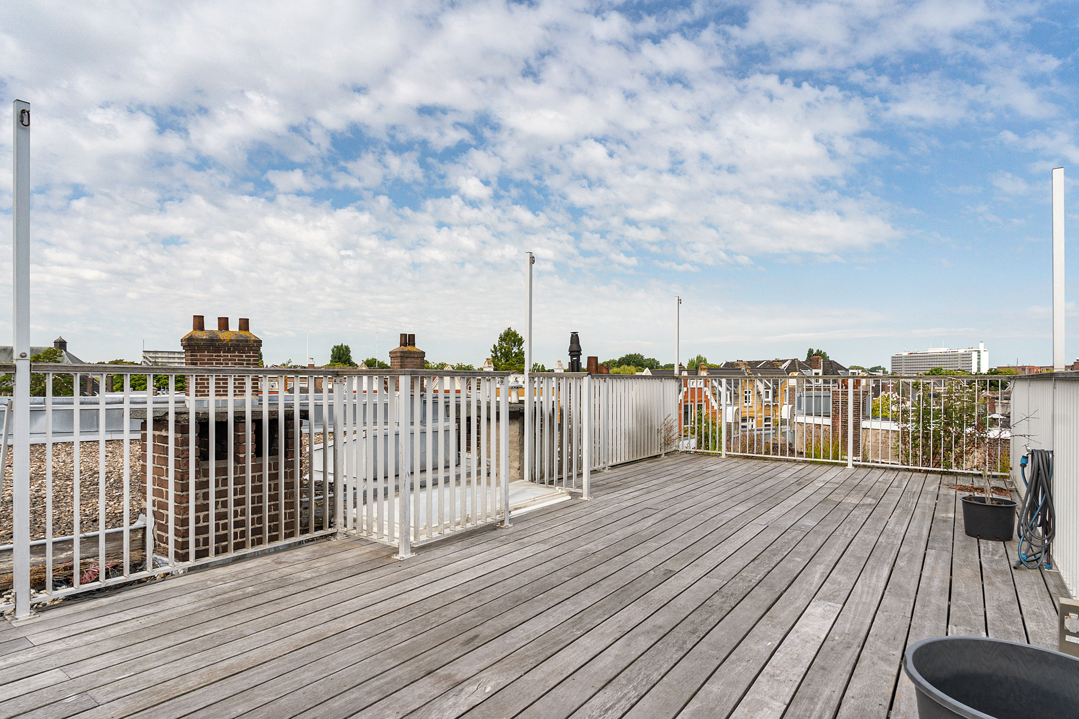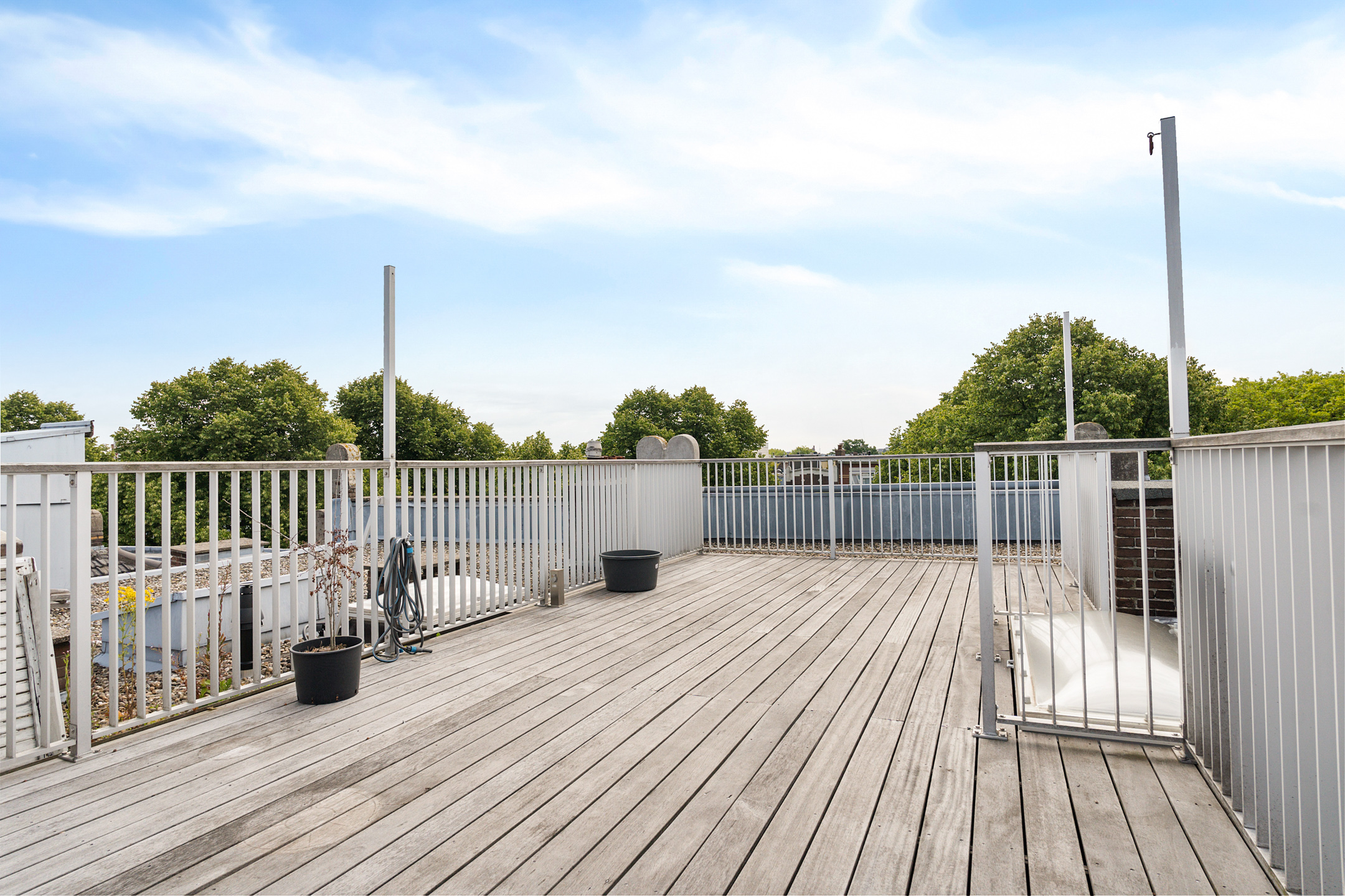 Het riante dakterras is een absolute eyecatcher. Een zeldzaam ruime buitenruimte waar je heerlijk kunt loungen, tuinieren of dineren in de open lucht. Een perfecte plek om te ontspannen in de zon.