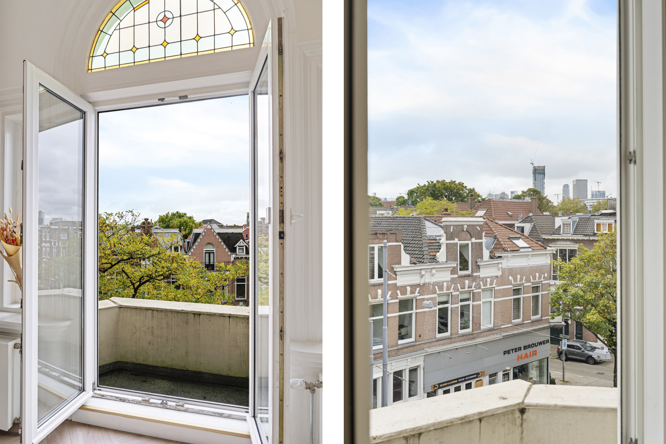 Deze stijlvolle bovenwoning combineert de charme van een klassiek herenhuis met het comfort van een moderne afwerking. Het appartement van circa 81 m², gelegen op de bovenste woonlaag, is volledig gerenoveerd met oog voor detail en biedt een sfeervolle leefruimte met twee balkons, hoge plafonds en een prachtig uitzicht over de skyline van Rotterdam.