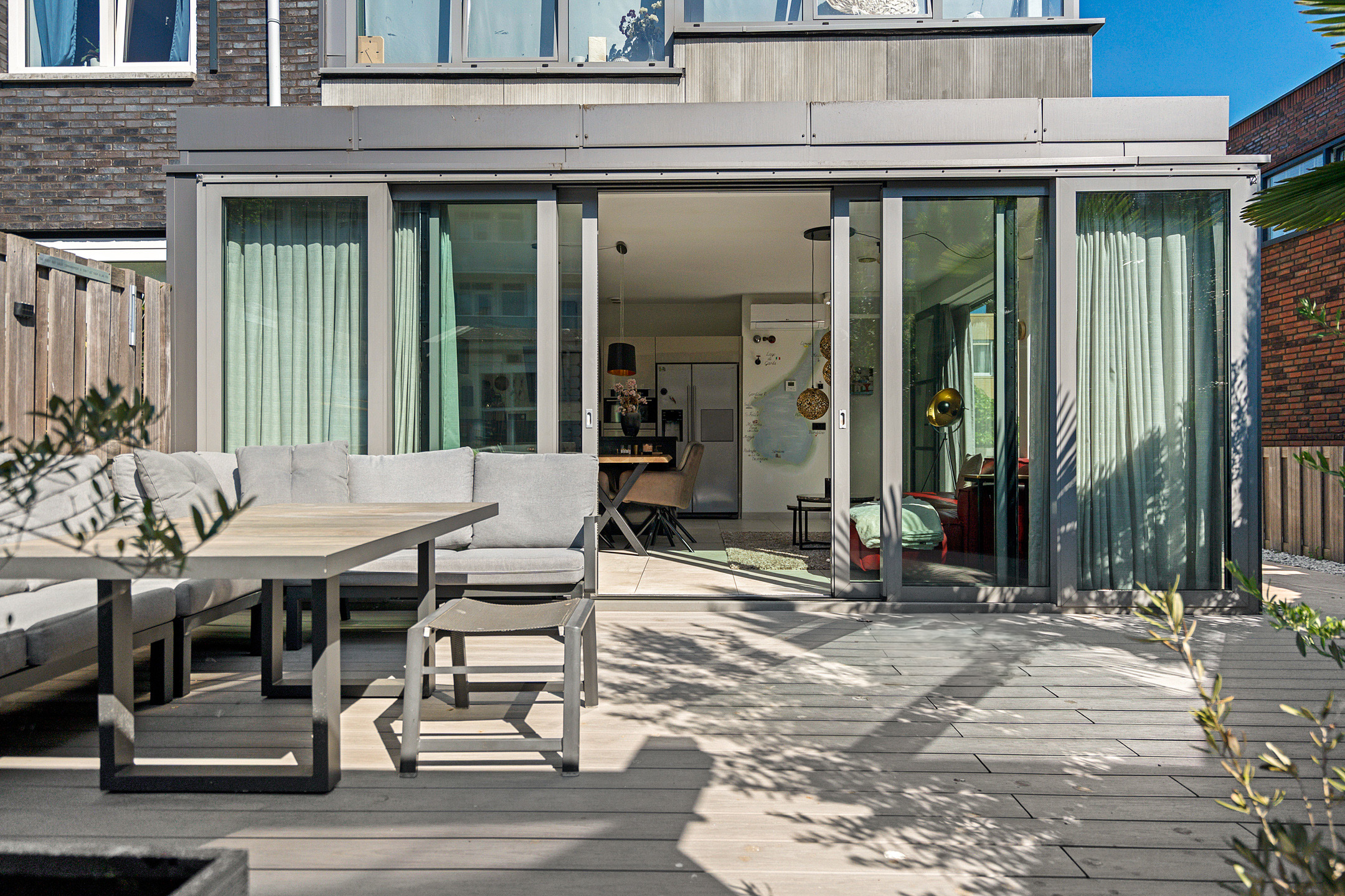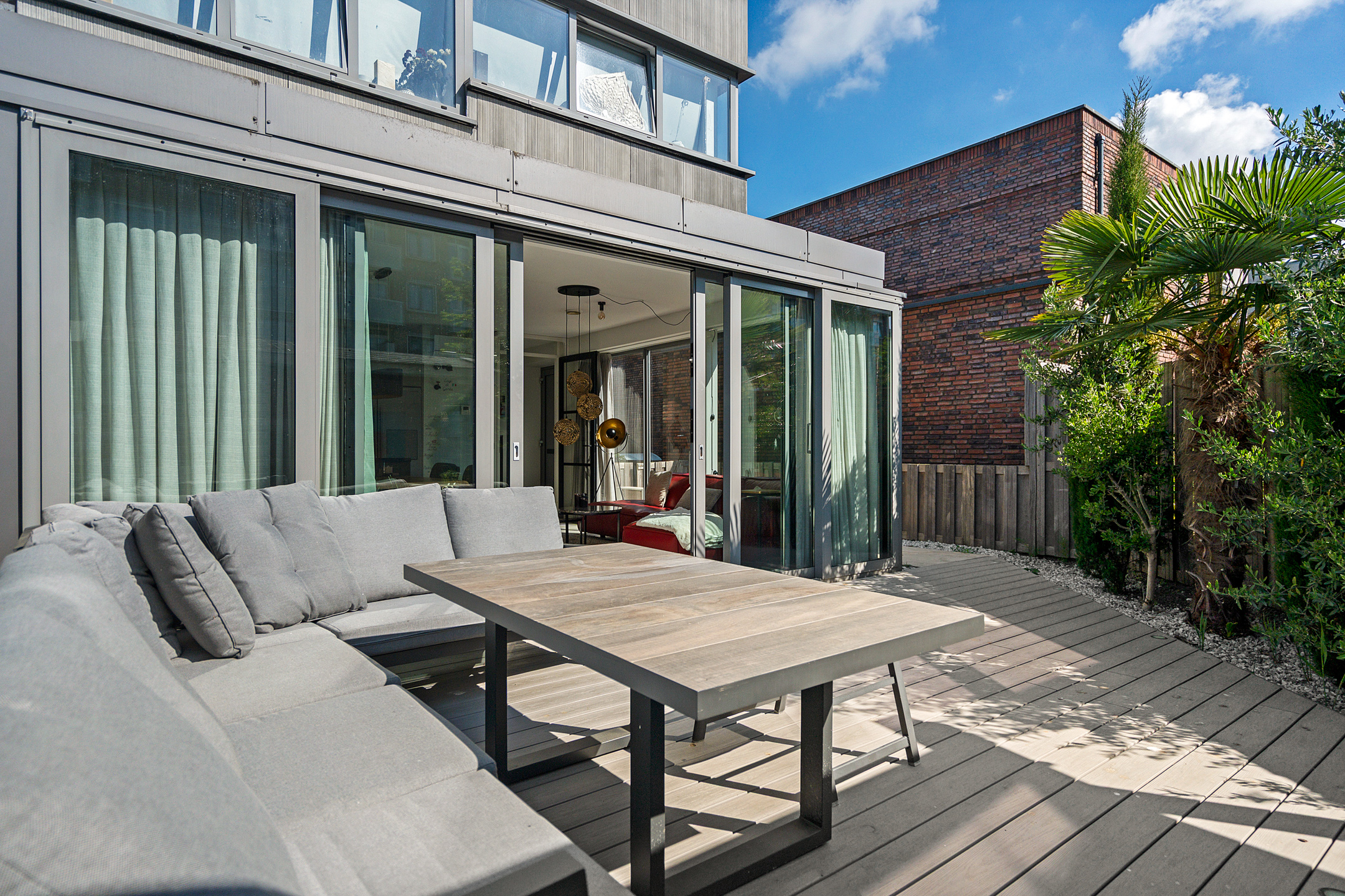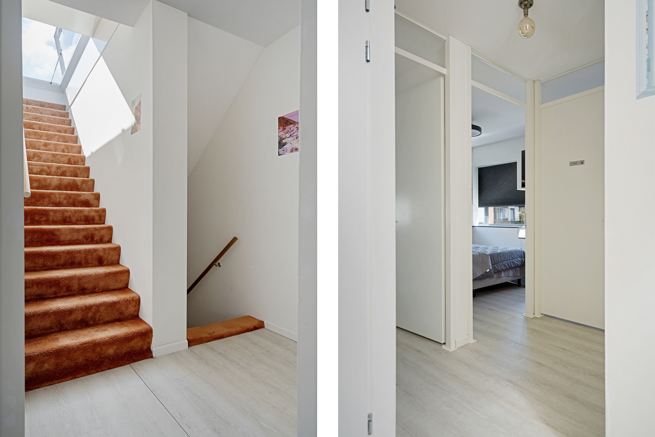 De woning maakt deel uit van een uniek pand dat gedeeld wordt met de buren. Dankzij de slimme indeling heb je aan de achterzijde de woonkamer, tuin en het dakterras, terwijl de slaapkamers aan de voorzijde liggen. Hierdoor ontstaat een speelse en prettige woonindeling, met volop privacy en ruimte.