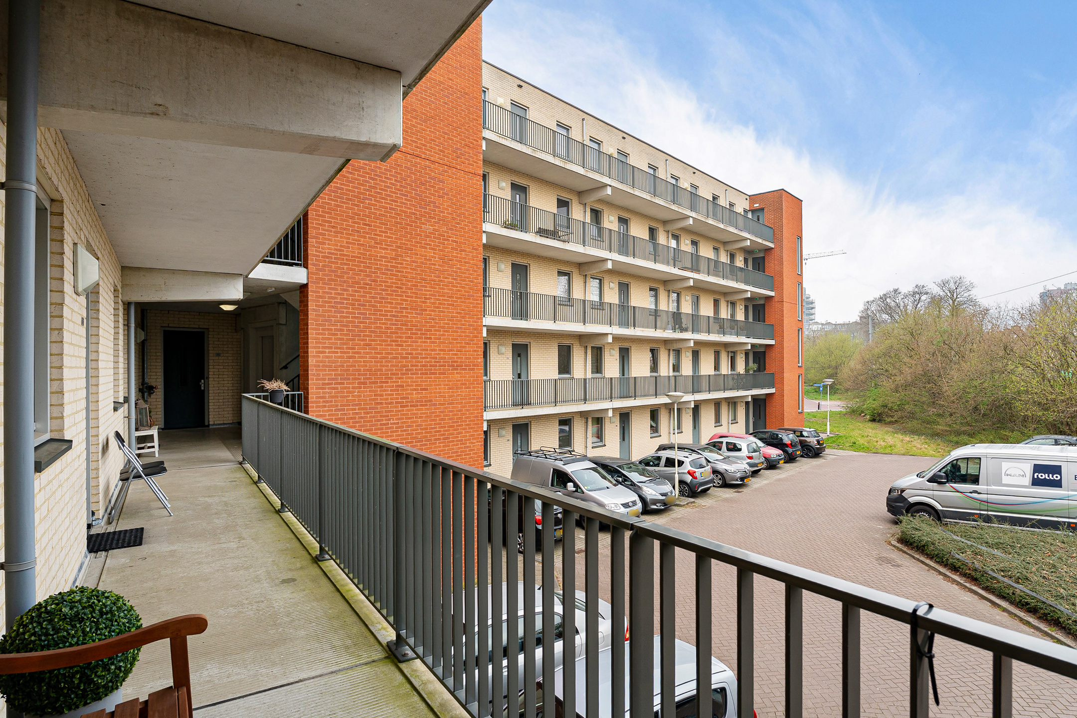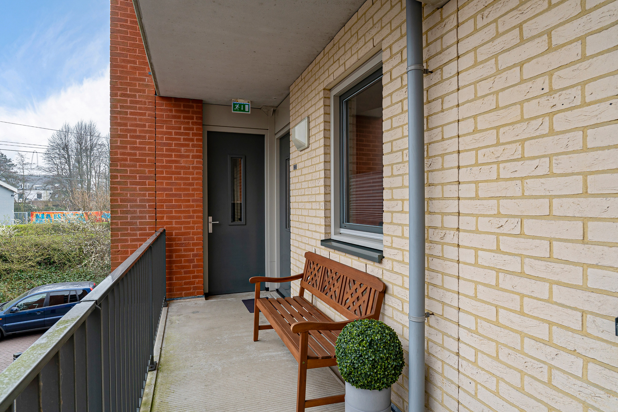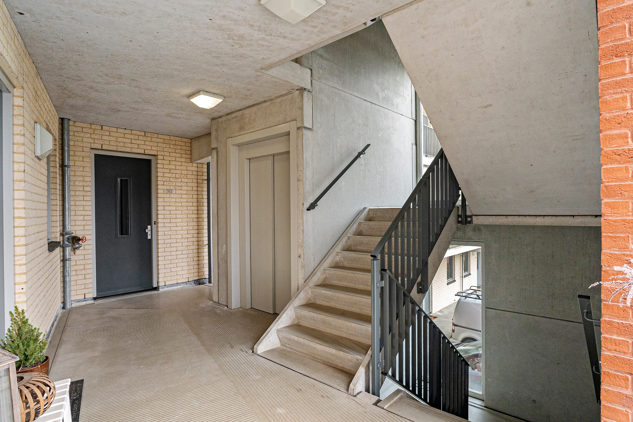 + Op de eerste verdieping van een modern appartementencomplex