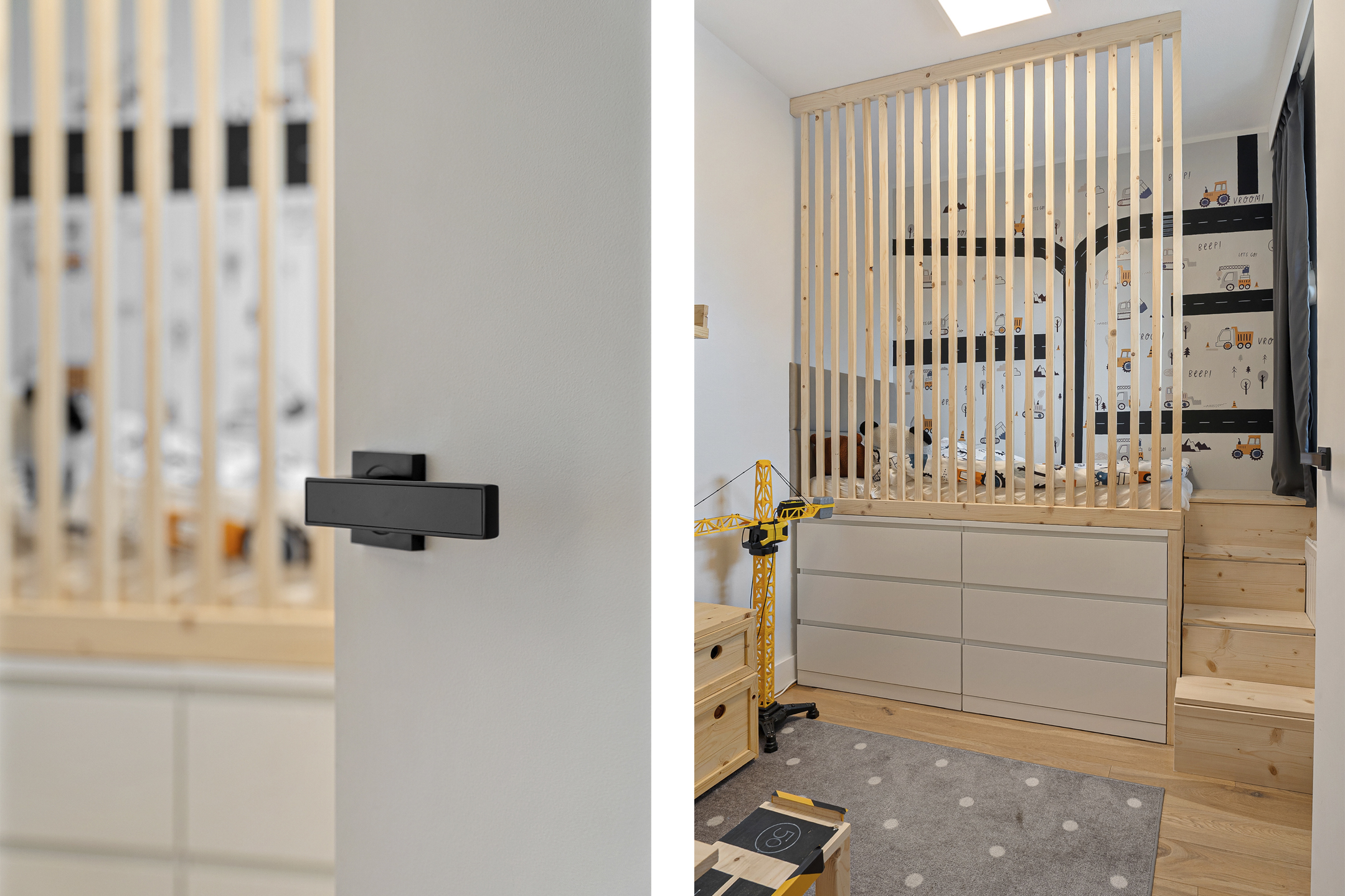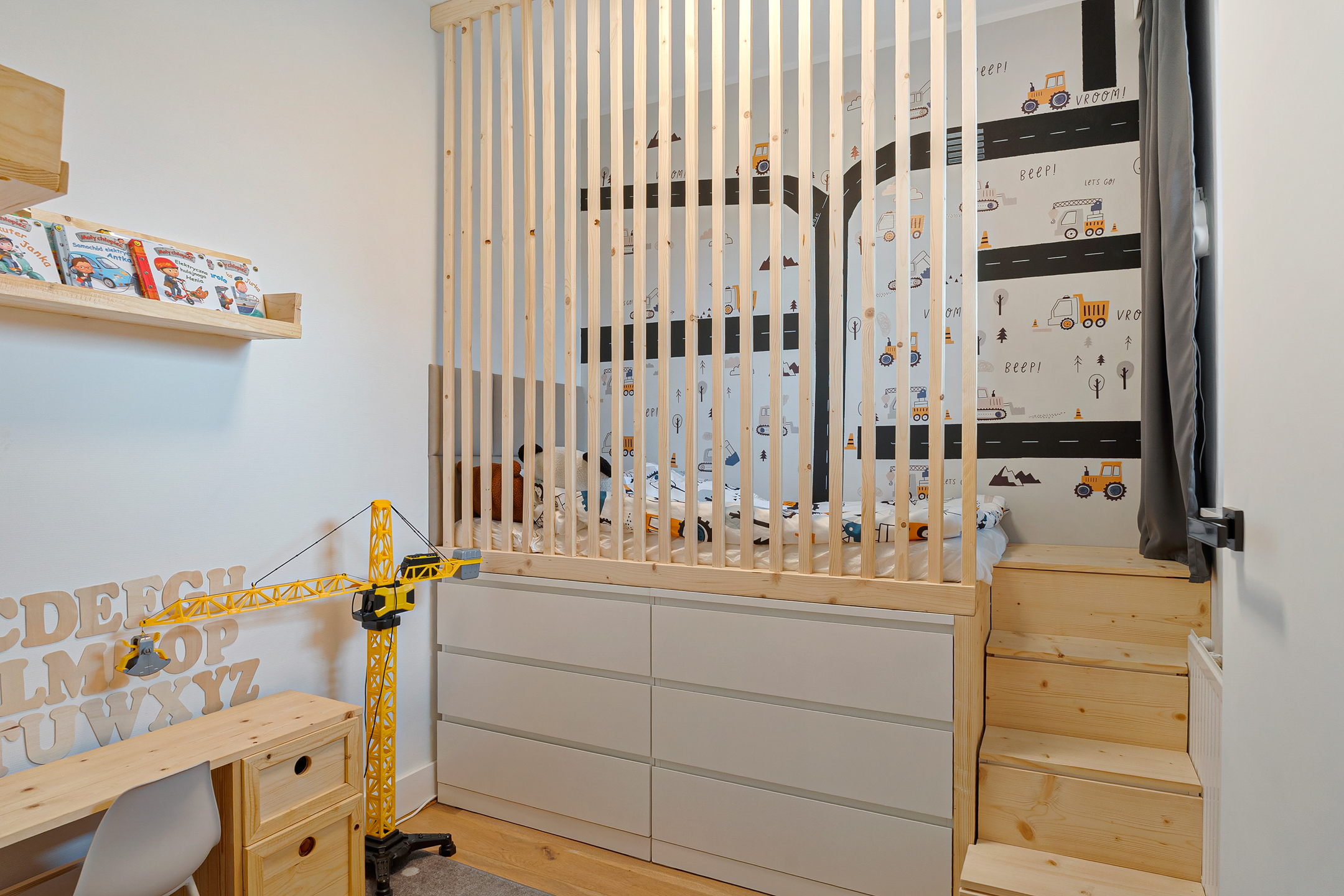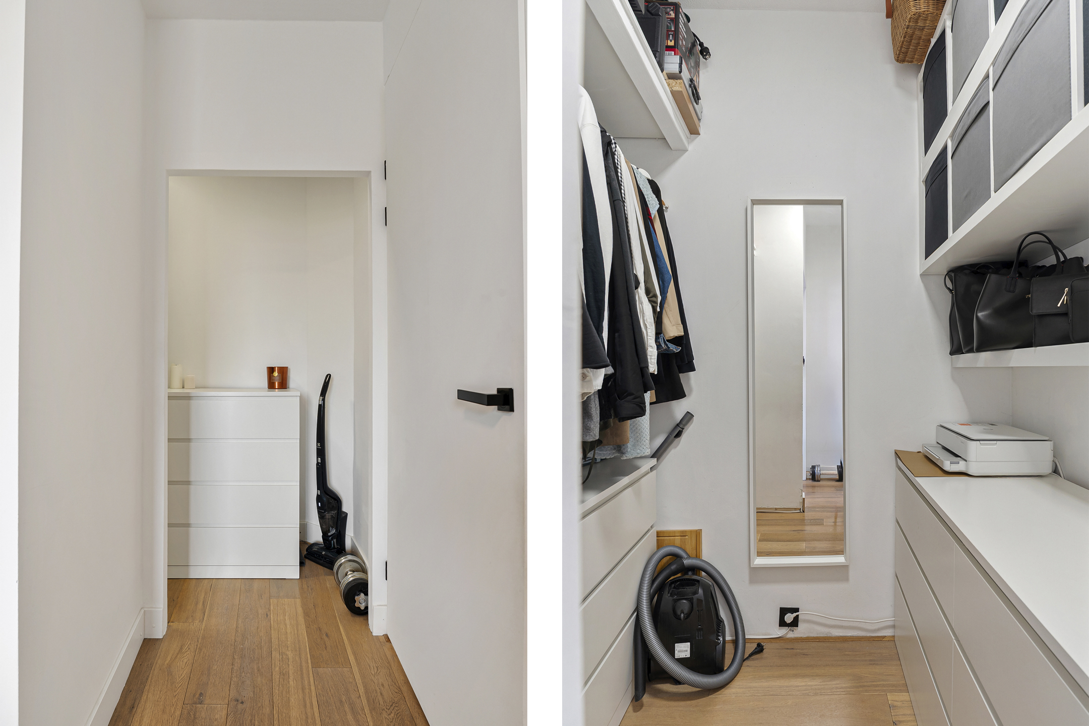 De hoofdslaapkamer aan de achterzijde beschikt over een royale inloopkast – een echte meerwaarde! De tweede slaapkamer aan de voorzijde is nu ingericht als kinderkamer met een praktische hoogslaper (ter overname) en biedt eveneens volop ruimte.