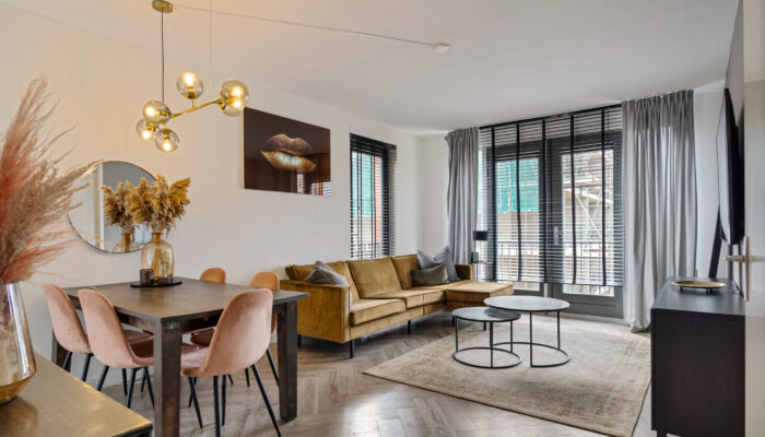 De woonkamer voelt licht en ruim aan dankzij de hoekligging, het extra zijraam en de dubbele openslaande deuren naar het Franse balkon. De wanden zijn strak afgewerkt en de inrichting is modern en stijlvol. De open keuken aan de voorzijde is eveneens heerlijk licht en voorzien van een vijfpits gaskookplaat, vaatwasser, koel-vriescombinatie, Quooker en oven. De grote ramen zorgen voor een prettige sfeer tijdens het koken.