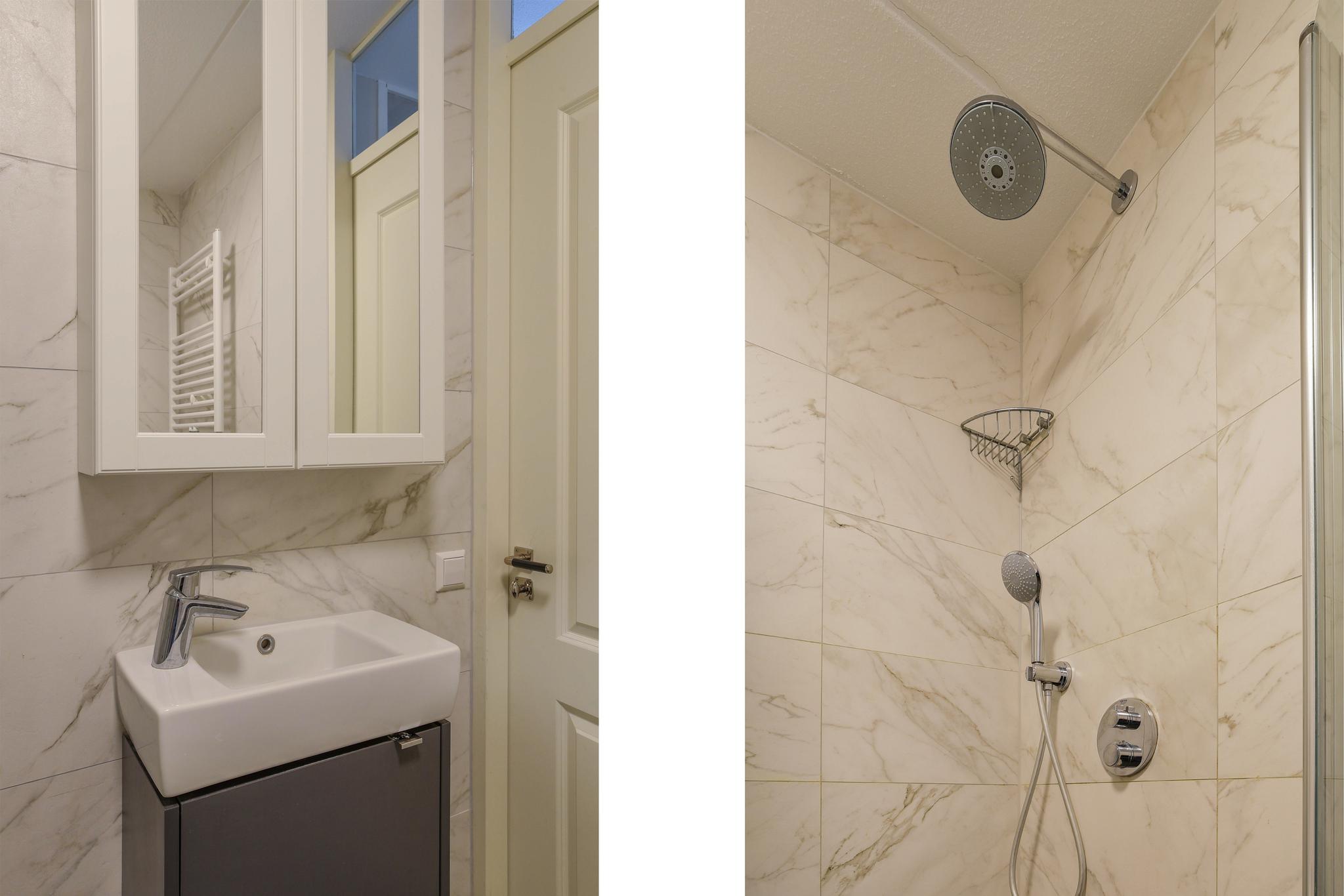 Via de trapopgang kom je, aan de voorzijde van de woning, in de ruime woonkamer terecht. De moderne keuken in het midden van de woning is voorzien van inbouwapparatuur. Via de overloop kan je doorlopen naar de aparte toiletruimte, de wasruimte met cv-opstelling en de badkamer. De badkamer is voorzien van een ligbad, douchecabine en wastafelmeubel. Aan de achterzijde van de woning liggen 2 ruime slaapkamers.