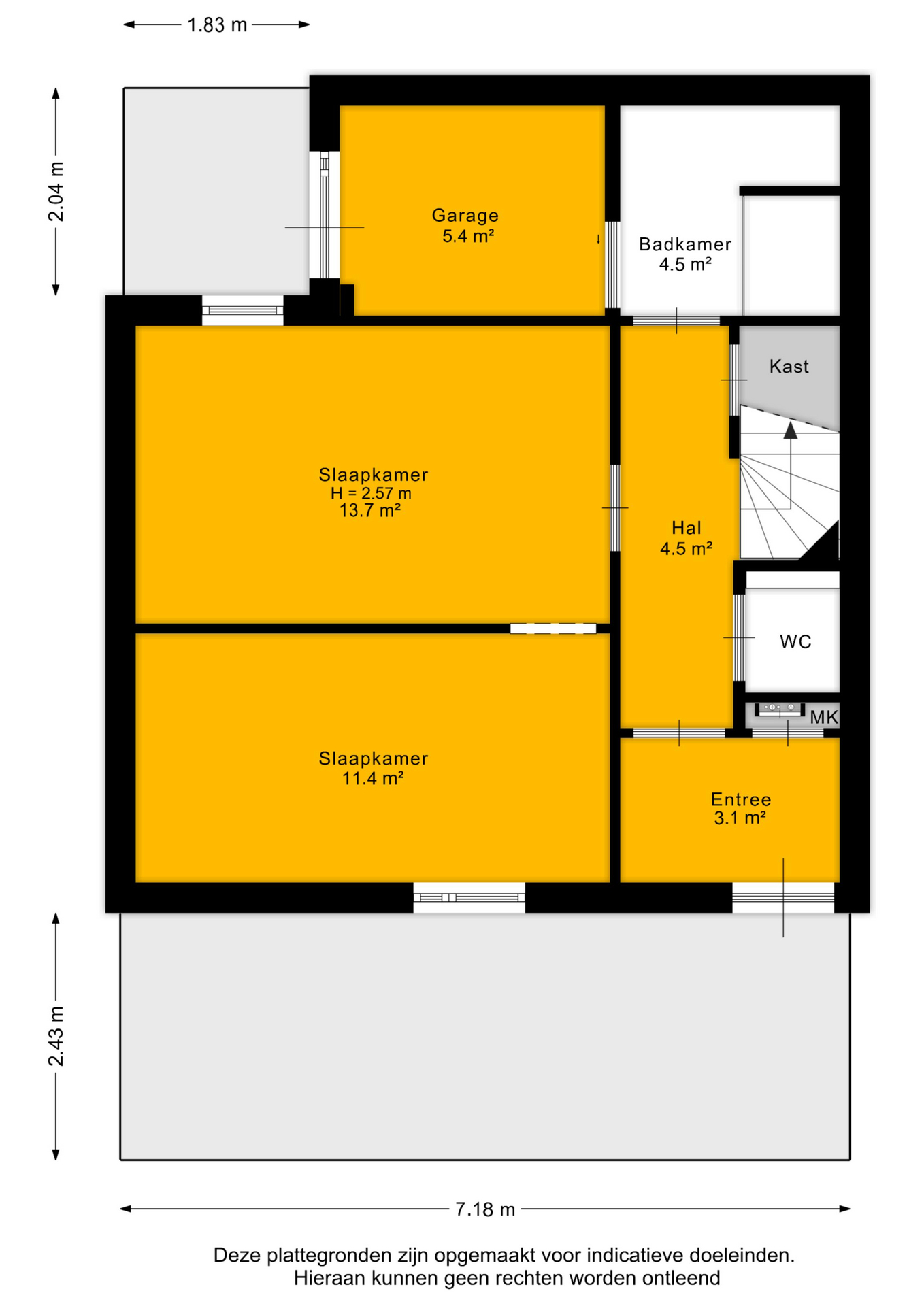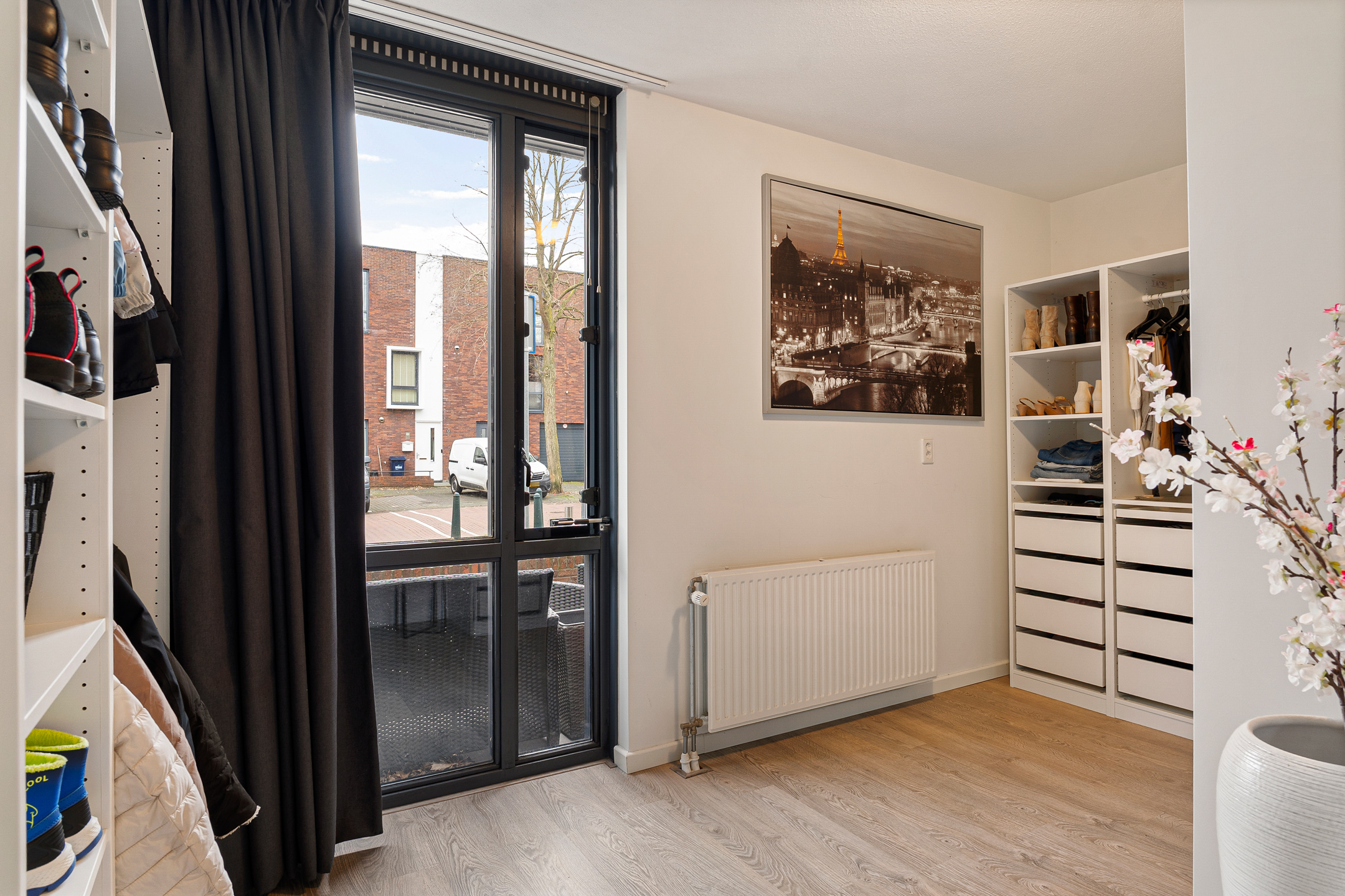 De woning beschikt op de begane grond over twee ruime slaapkamers, beide met een fijne lichtinval. Daarnaast bevindt zich hier een moderne badkamer met regendouche en een aparte wasruimte, ideaal voor praktisch dagelijks gebruik. Via de hal zijn ook de entree, het separate toilet, de meterkast en een diepe bergkast bereikbaar. Aan de achterzijde bevindt zich een inpandige berging, een waardevolle toevoeging voor opslag, hobby of fietsen.