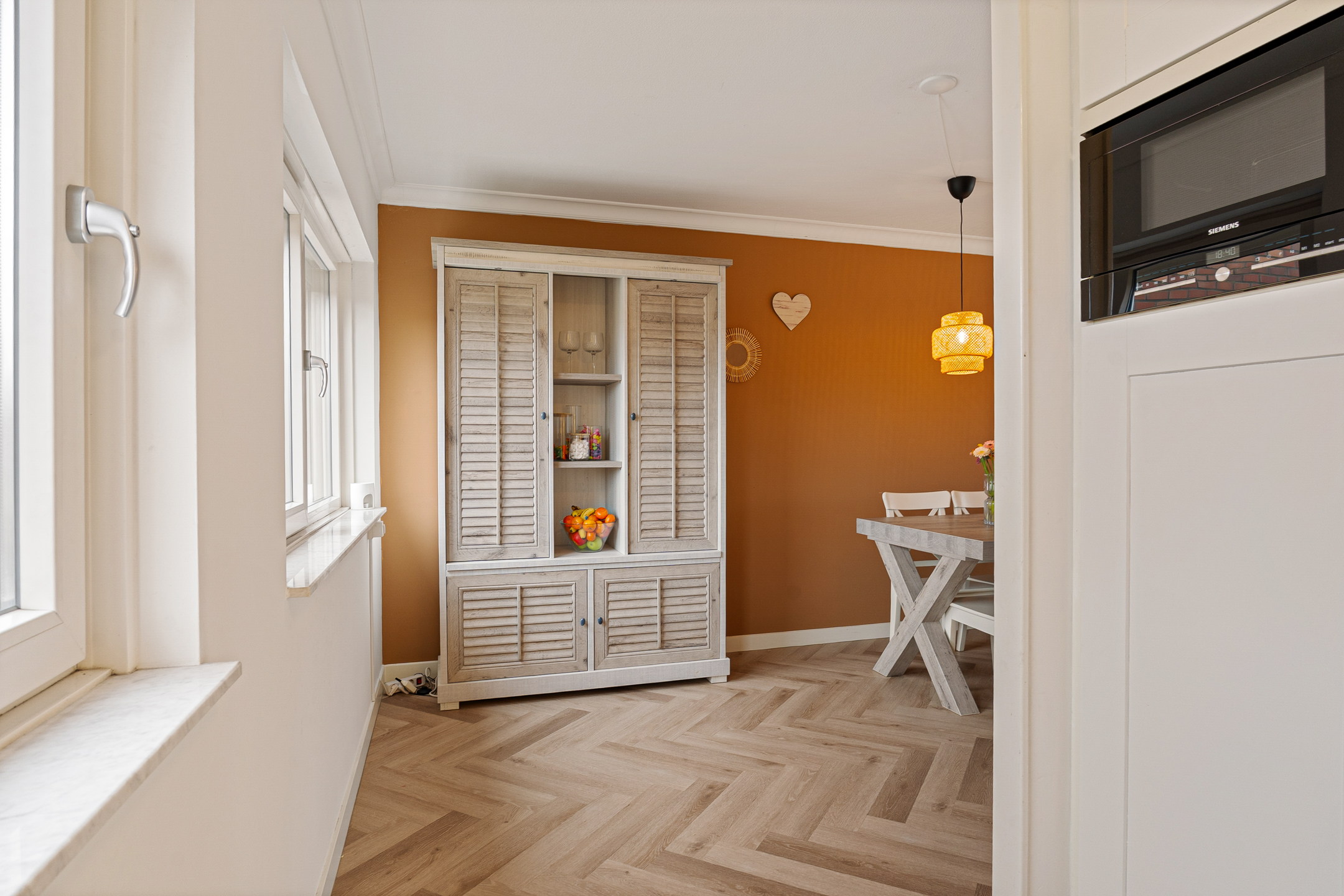 Aan de voorzijde bevindt zich de lichte woonkamer met grote raampartijen en vrij uitzicht. Dankzij de prettige lichtinval en de moderne afwerking voelt deze verdieping ruim en comfortabel aan. Aan de achterzijde ligt de half open keuken .De keuken is voorzien van diverse inbouwapparatuur, waaronder een combi-oven, vaatwasser, kookplaat, afzuigkap en koel-/vriescombinatie. Je hebt hier volop werk- en bergruimte, waardoor koken hier echt een plezier wordt.