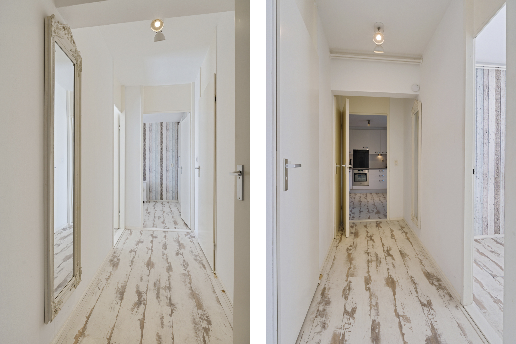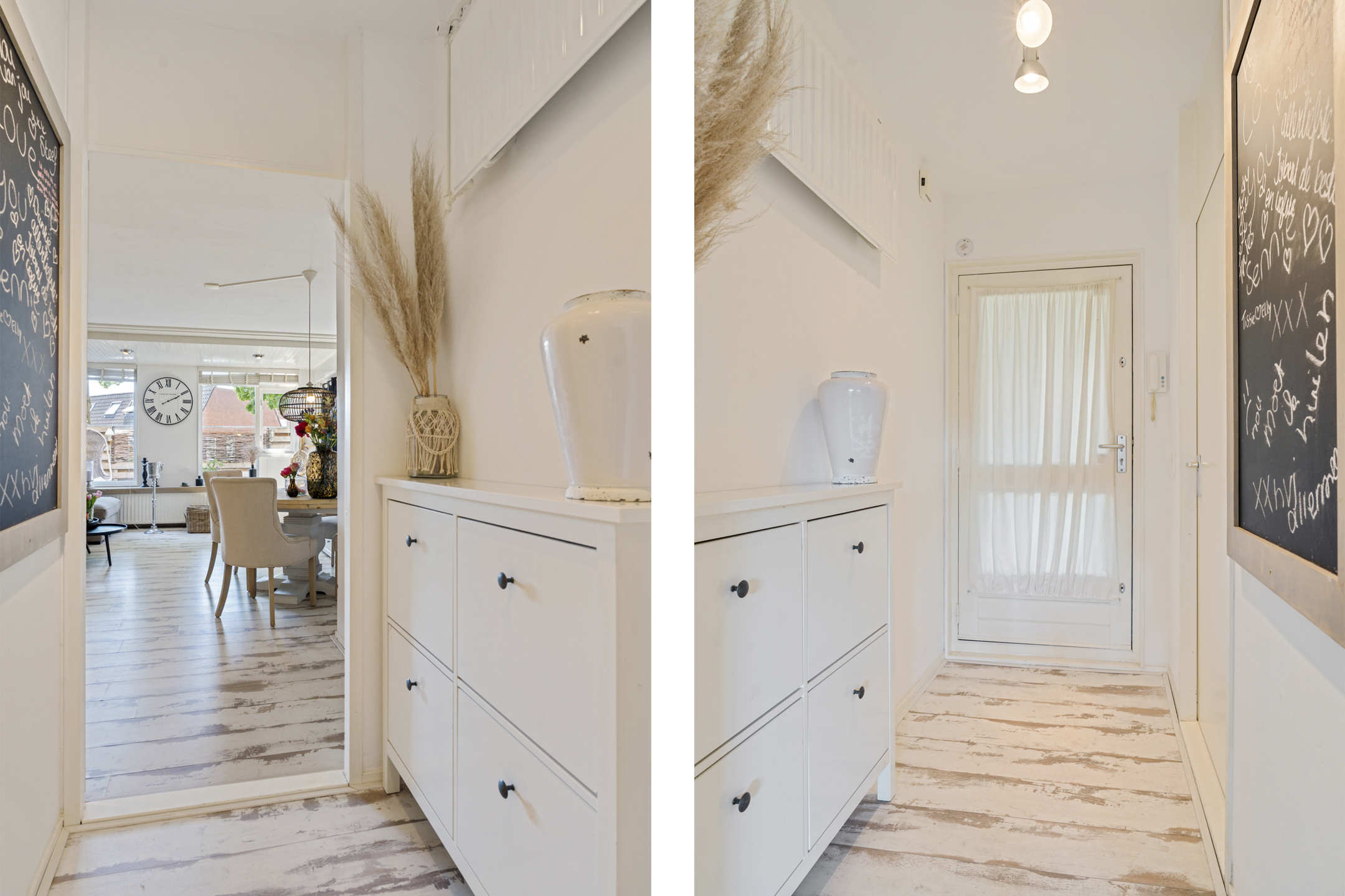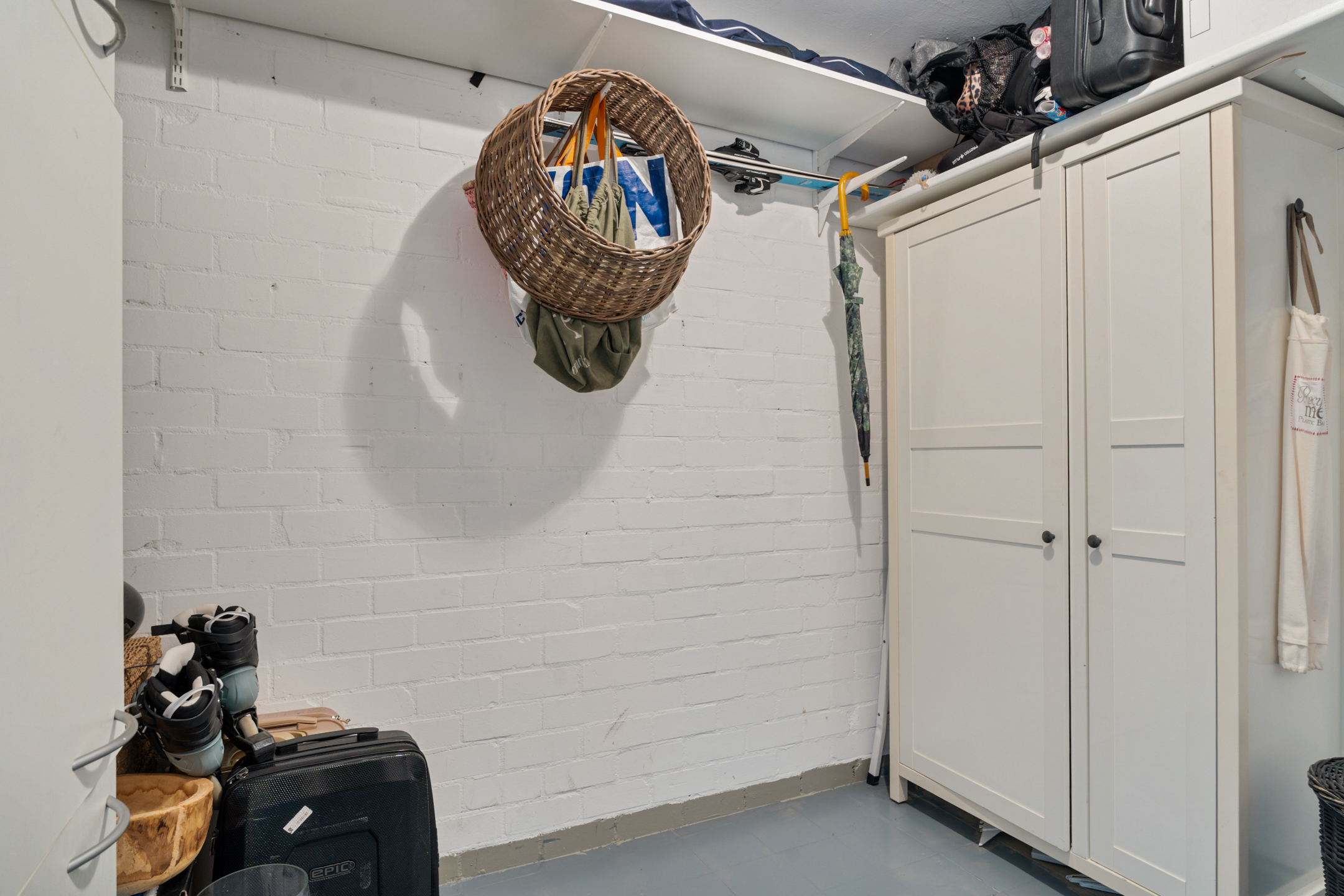 De woning heeft een praktische indeling met een verzorgde hal die toegang biedt tot alle vertrekken. Aan de rechterzijde vind je een ruime berging met aansluitingen voor wasmachine en droger. Wat deze woning verder uniek maakt, is dat de praktische berging zowel van buitenaf als direct vanuit de woning bereikbaar is – de enige in het hele complex met deze bijzondere toegang.
