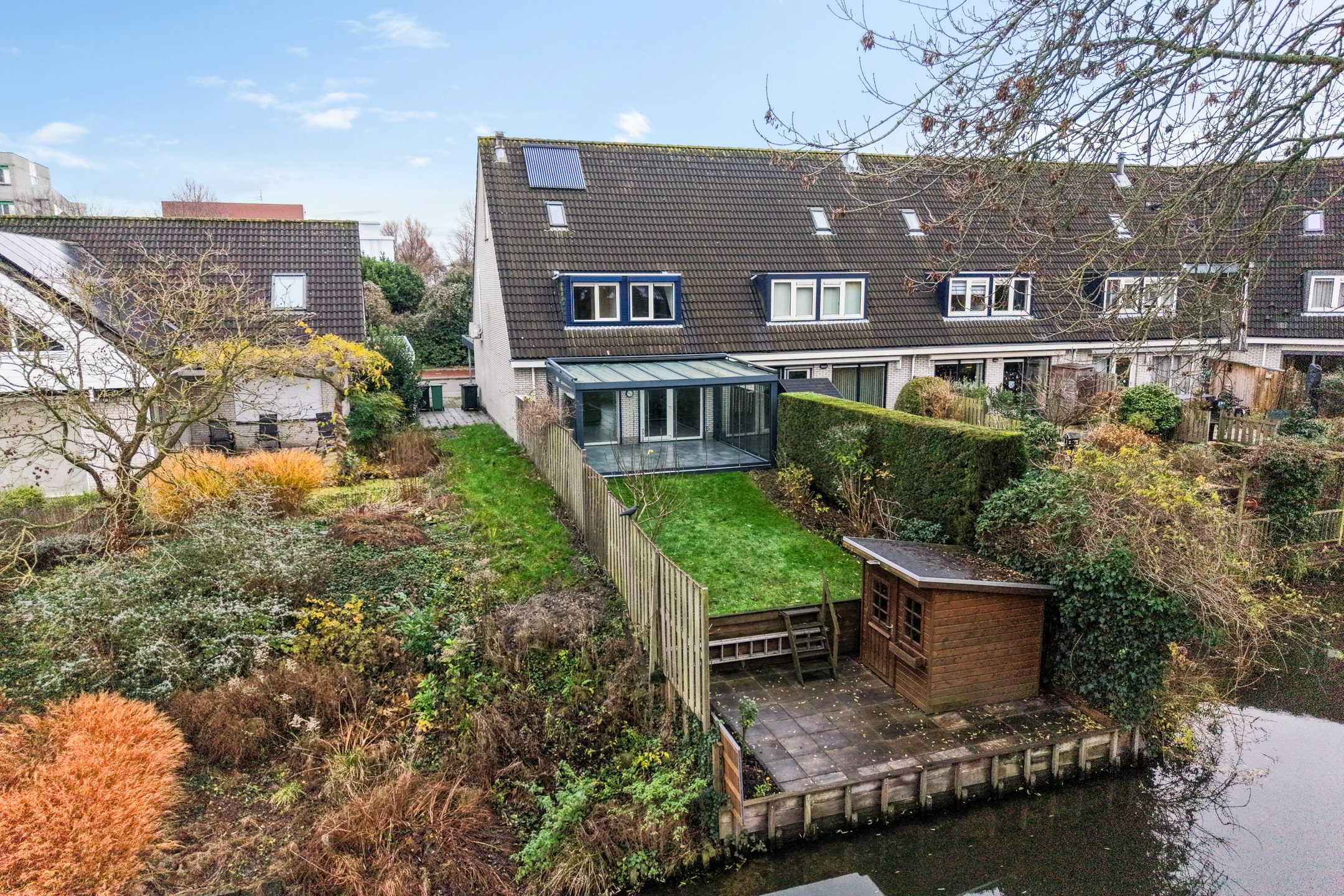 Royale hoekwoning aan het water met serre, carport en energielabel A
