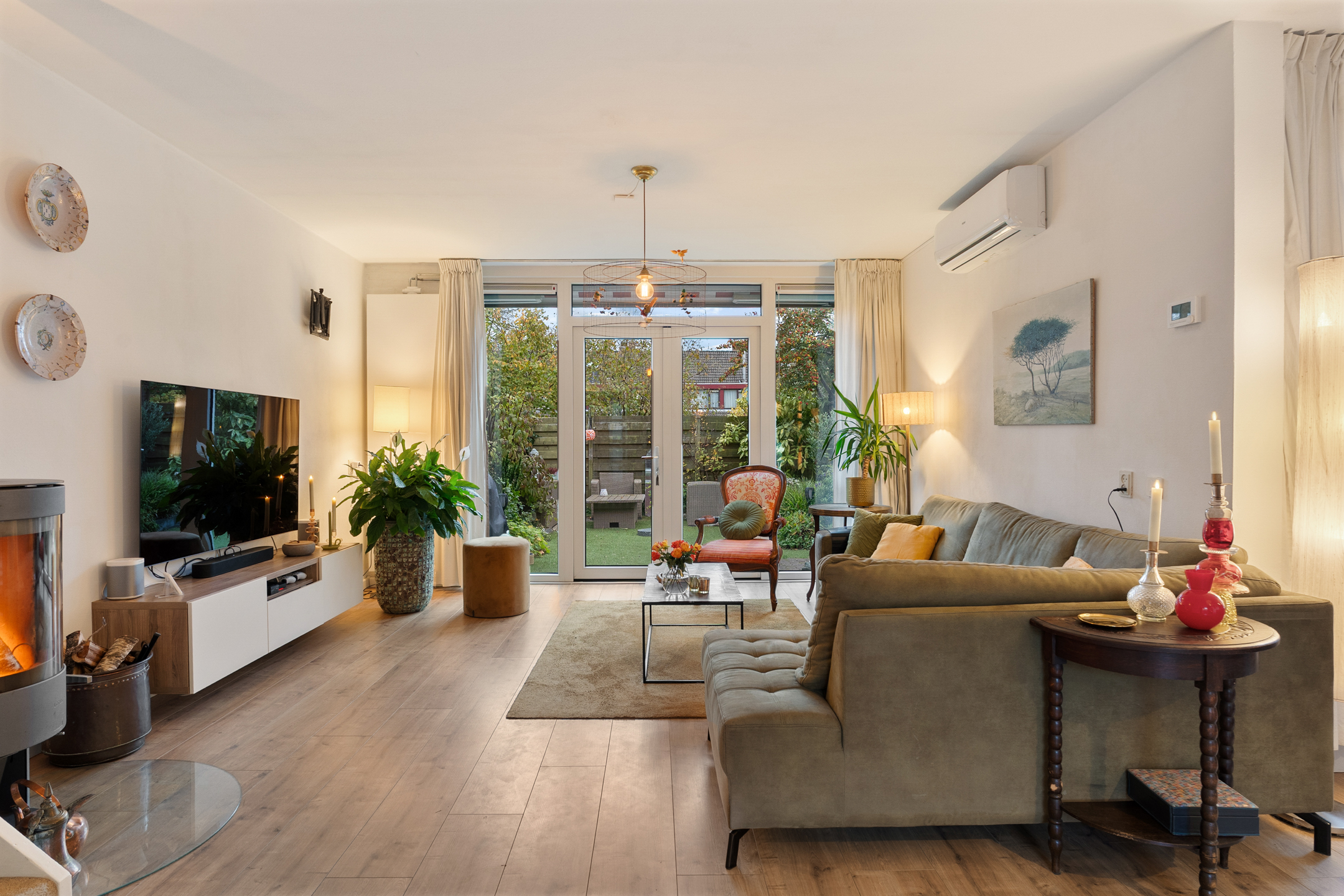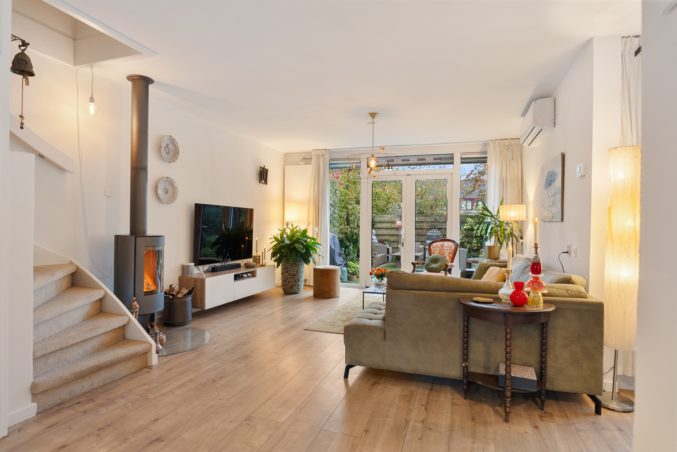 Deze goed onderhouden en verrassend lichte woning ligt in een rustige, groene omgeving direct aan het park en water. De royale voortuin zorgt voor een fijne, rustige entree en binnen wacht een ruime woonkamer met open haard, moderne open keuken en openslaande deuren naar de zonnige tuin.