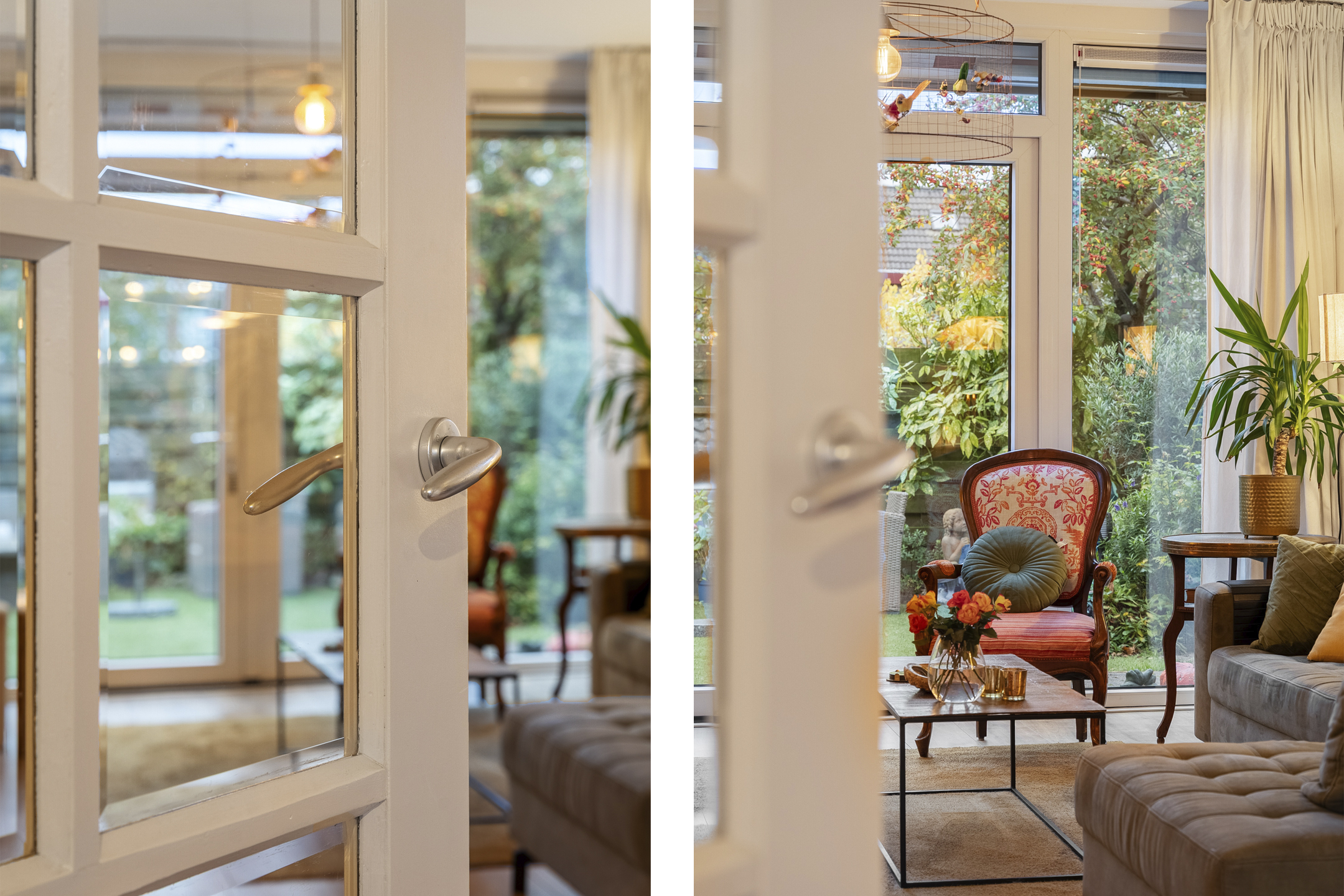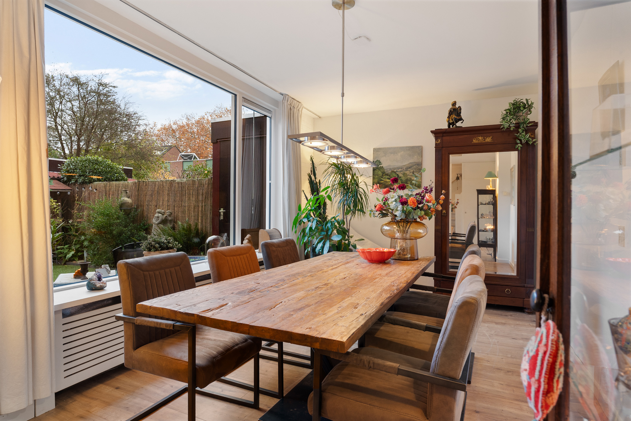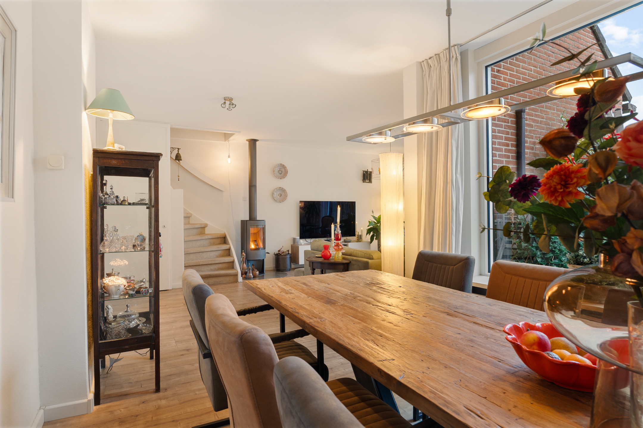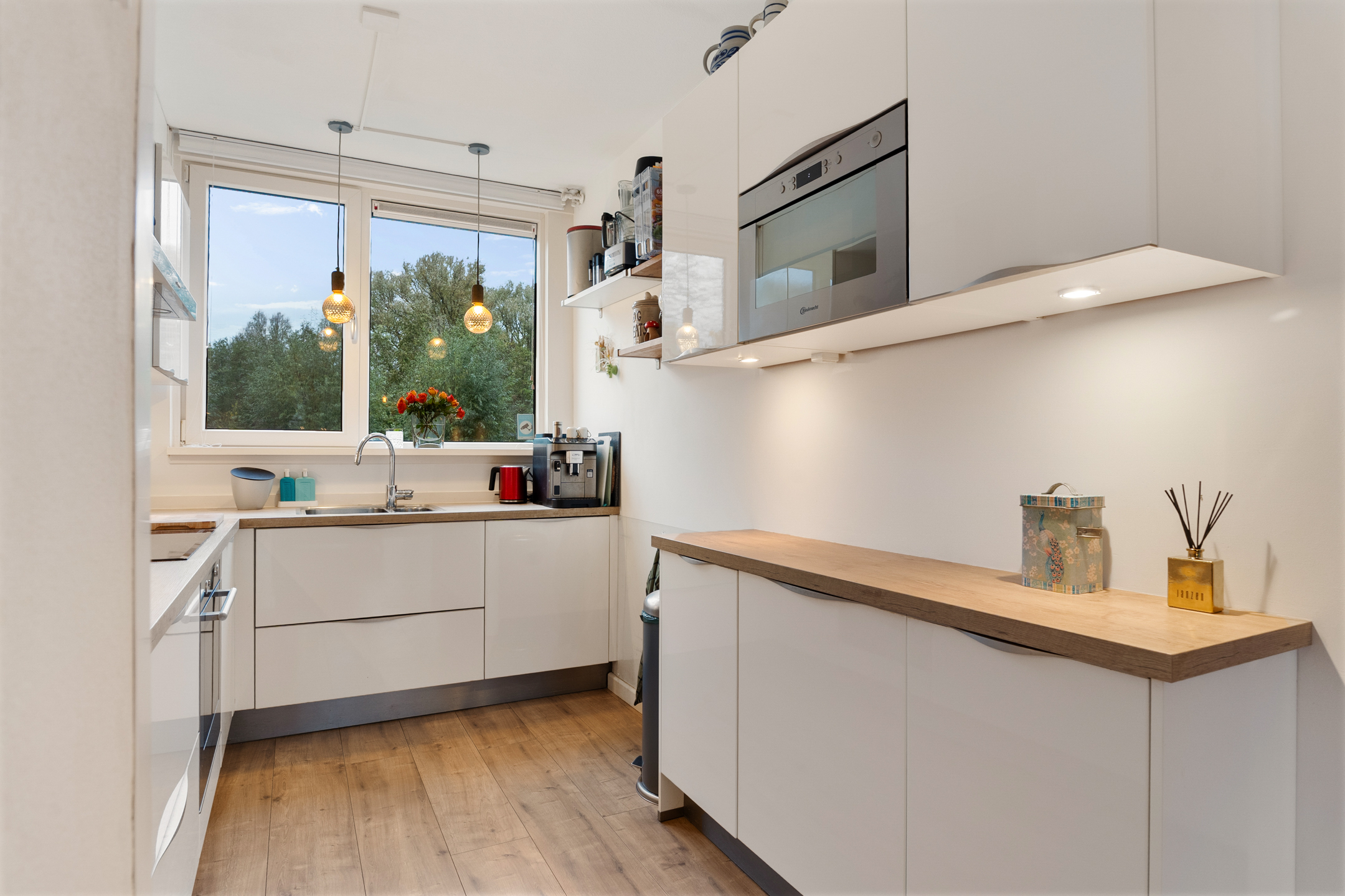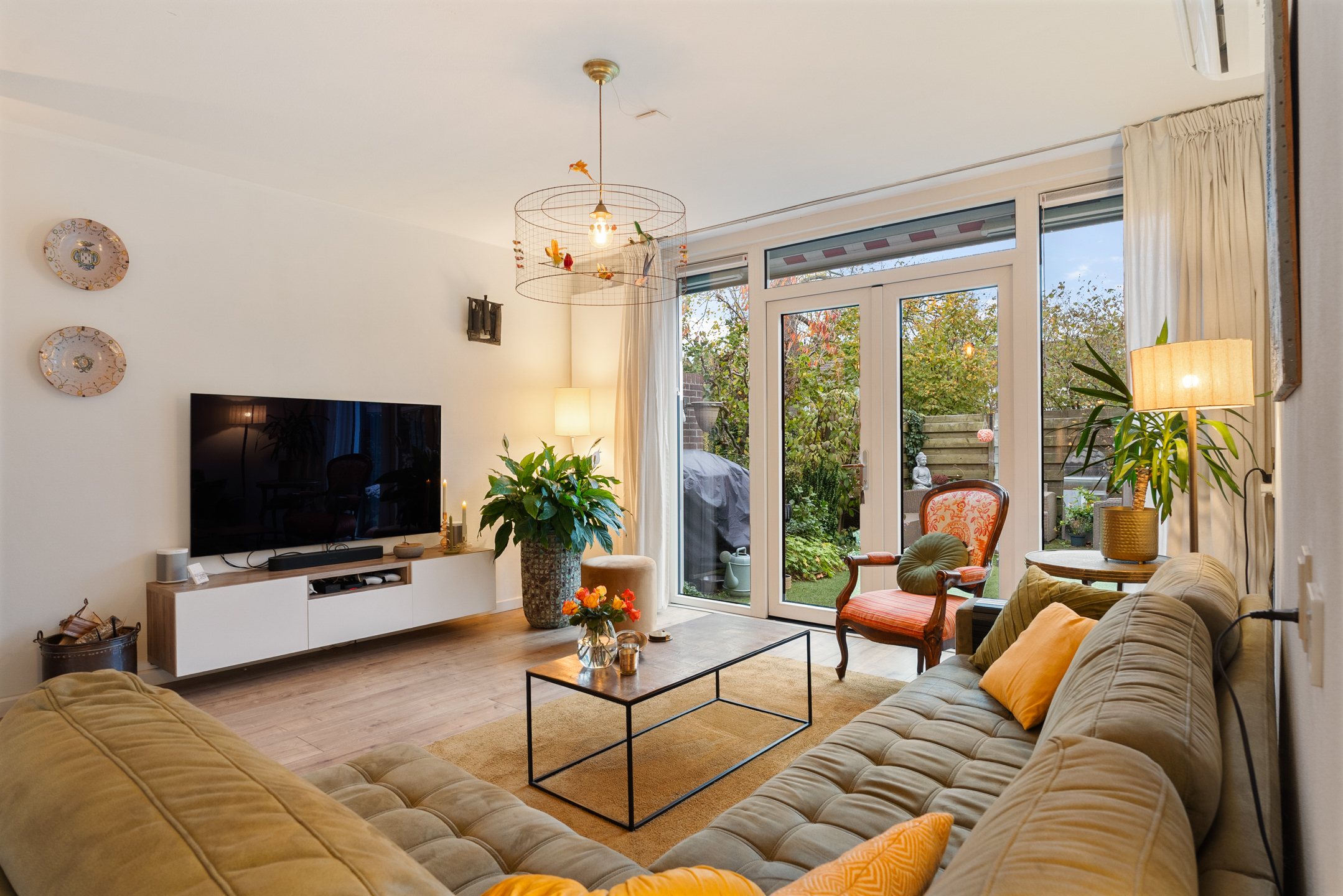 Aan de voorzijde bevindt zich de open en moderne keuken (2018). De keuken is voorzien van hoogwaardig gemoderniseerde inbouwapparatuur, waaronder; een inductiekookplaat van Bosch (2024), een vaatwasser (Siemens 2024) en een separate heteluchtoven en magnetron van Bauknecht. Via de openslaande deuren in de woonkamer kom je in de diepe, op het zuiden/oosten gelegen achtertuin, inclusief stenen berging, fietsenhok, tuinkast en achterom. De royale tuin is netjes onderhouden (deels betegeld en grotendeels voorzien van groen) en voorzien van twee zonneschermen, waardoor je de gehele dag heerlijk kan vertoeven buiten. De kunststof kozijnen met HR+++ glas zorgen voor uitstekende isolatie en een laag energieverbruik.