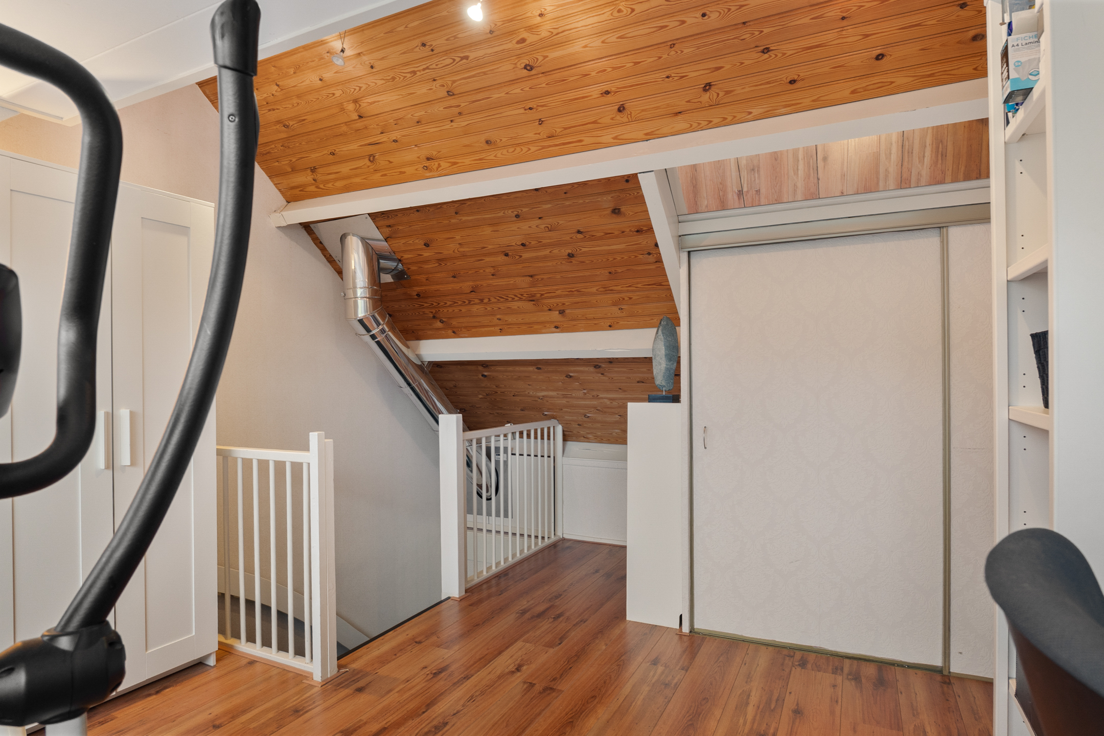 Op de eerste verdieping bevinden zich drie keurig afgewerkte slaapkamers. Aan de achterzijde bevinden zich twee slaapkamers waarvan één met een dakkapel en de andere slaapkamer beschikt over airconditioning. De slaapkamer aan de voorzijde is eveneens netjes afgewerkt, thans in gebruik als atelier. De badkamer werd in 2024 volledig vernieuwd en is voorzien van; elektrische verwarming, los toilet, glazen douchescherm en fraaie tegels, strak en functioneel. Op de overloop vind je een praktische bergkast voor extra opbergruimte.