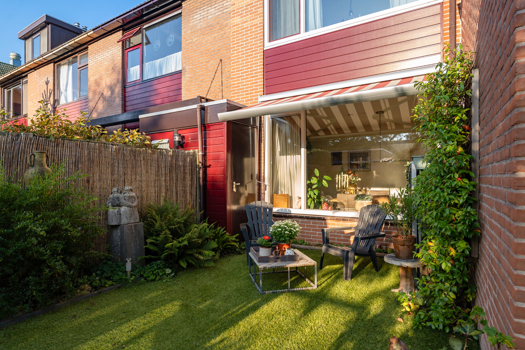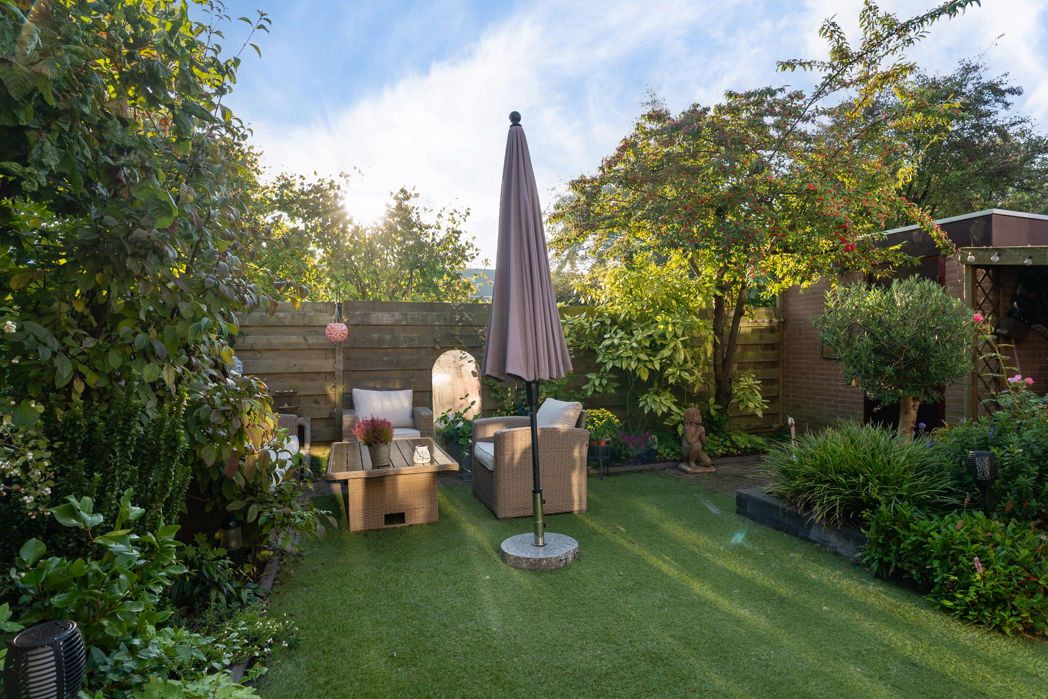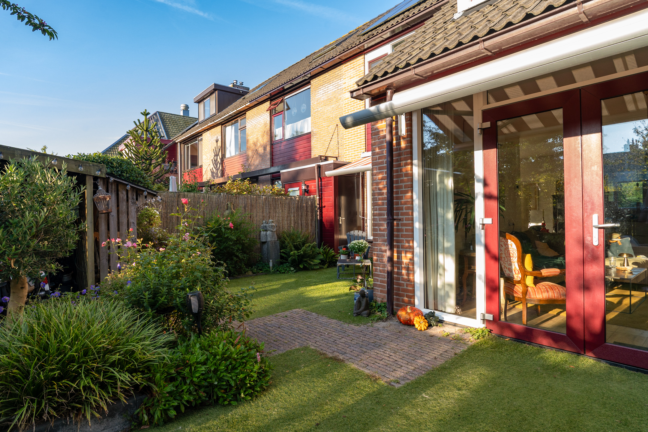 De royale voortuin geeft de woning een groene aanblik en biedt extra privacy ten opzichte van de straat. De achtertuin ligt op het zuiden/oosten, is goed onderhouden, heeft een achterom en stenen berging. Direct achter de woning ligt een autovrij grasveld, ideaal voor gezinnen met kinderen om vrij te spelen.