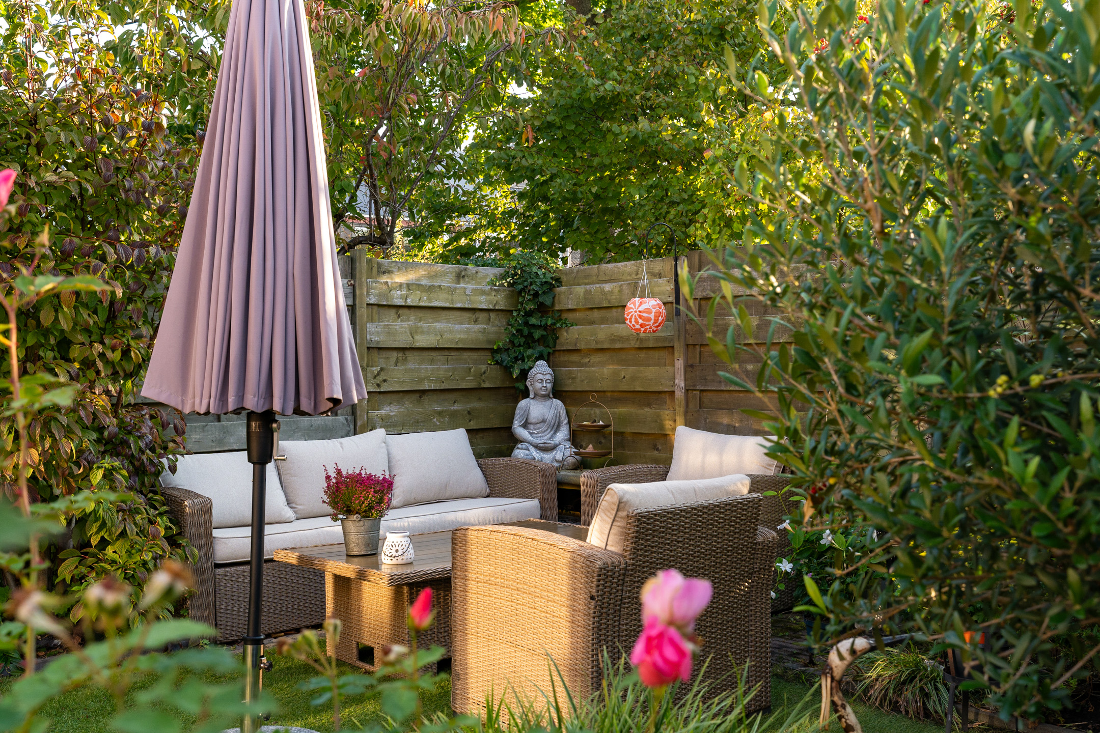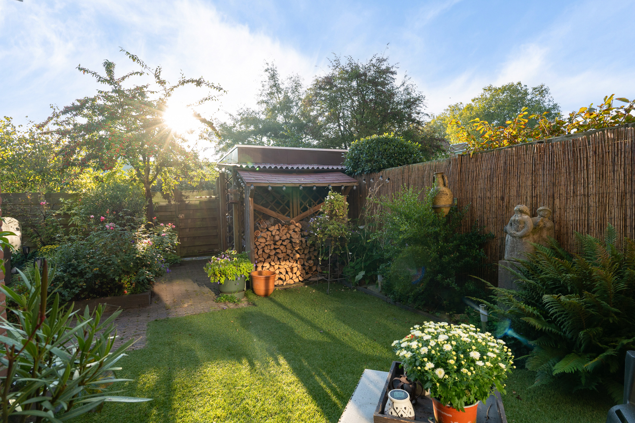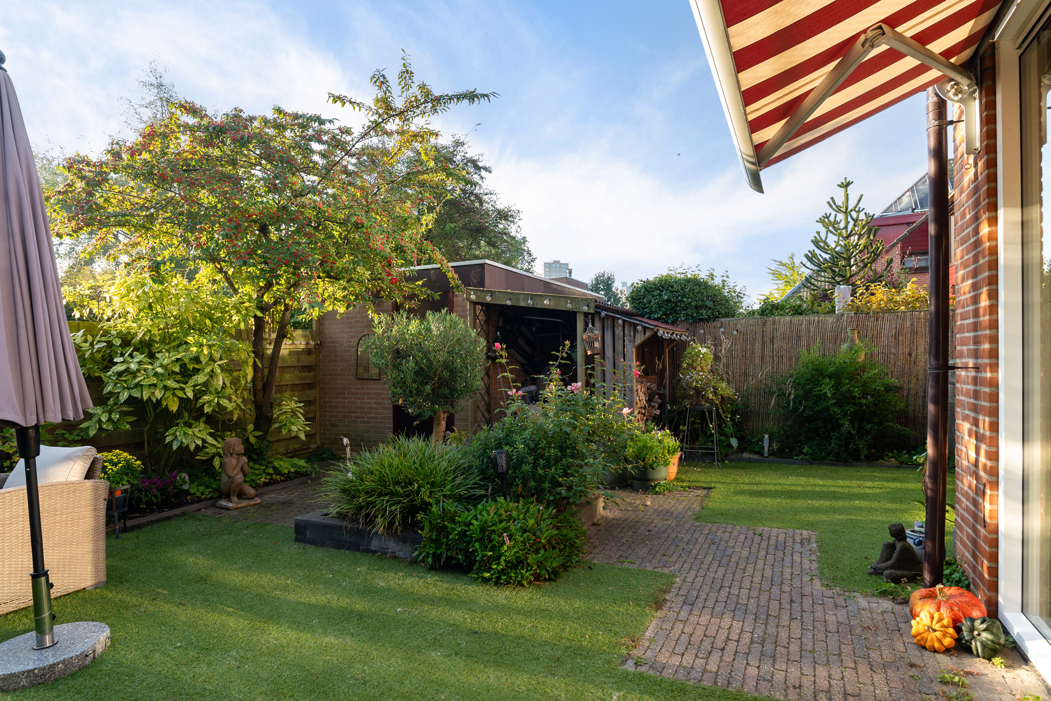 De royale voortuin geeft de woning een groene aanblik en biedt extra privacy ten opzichte van de straat. De achtertuin ligt op het zuiden/oosten, is goed onderhouden, heeft een achterom en stenen berging. Direct achter de woning ligt een autovrij grasveld, ideaal voor gezinnen met kinderen om vrij te spelen.