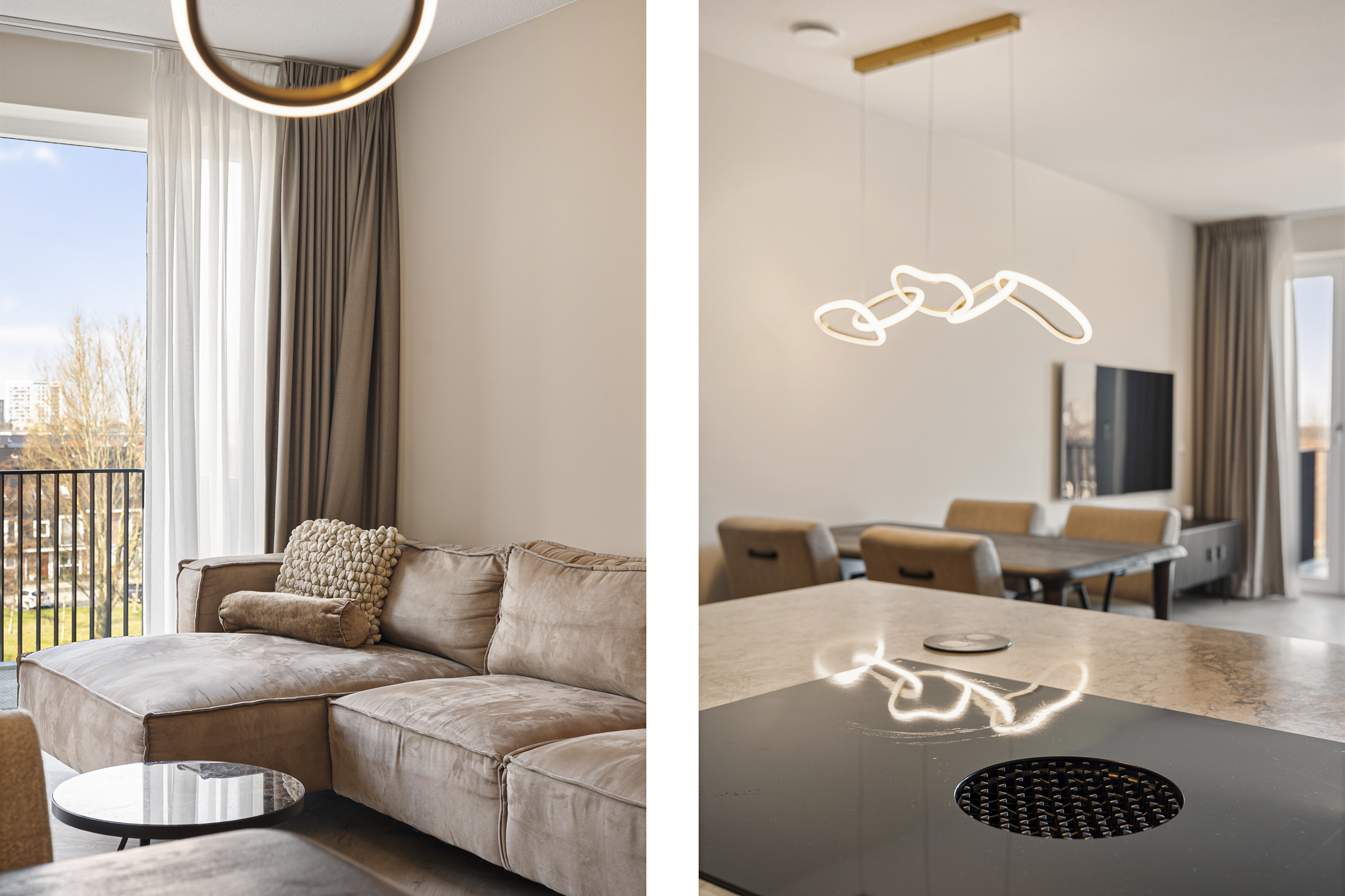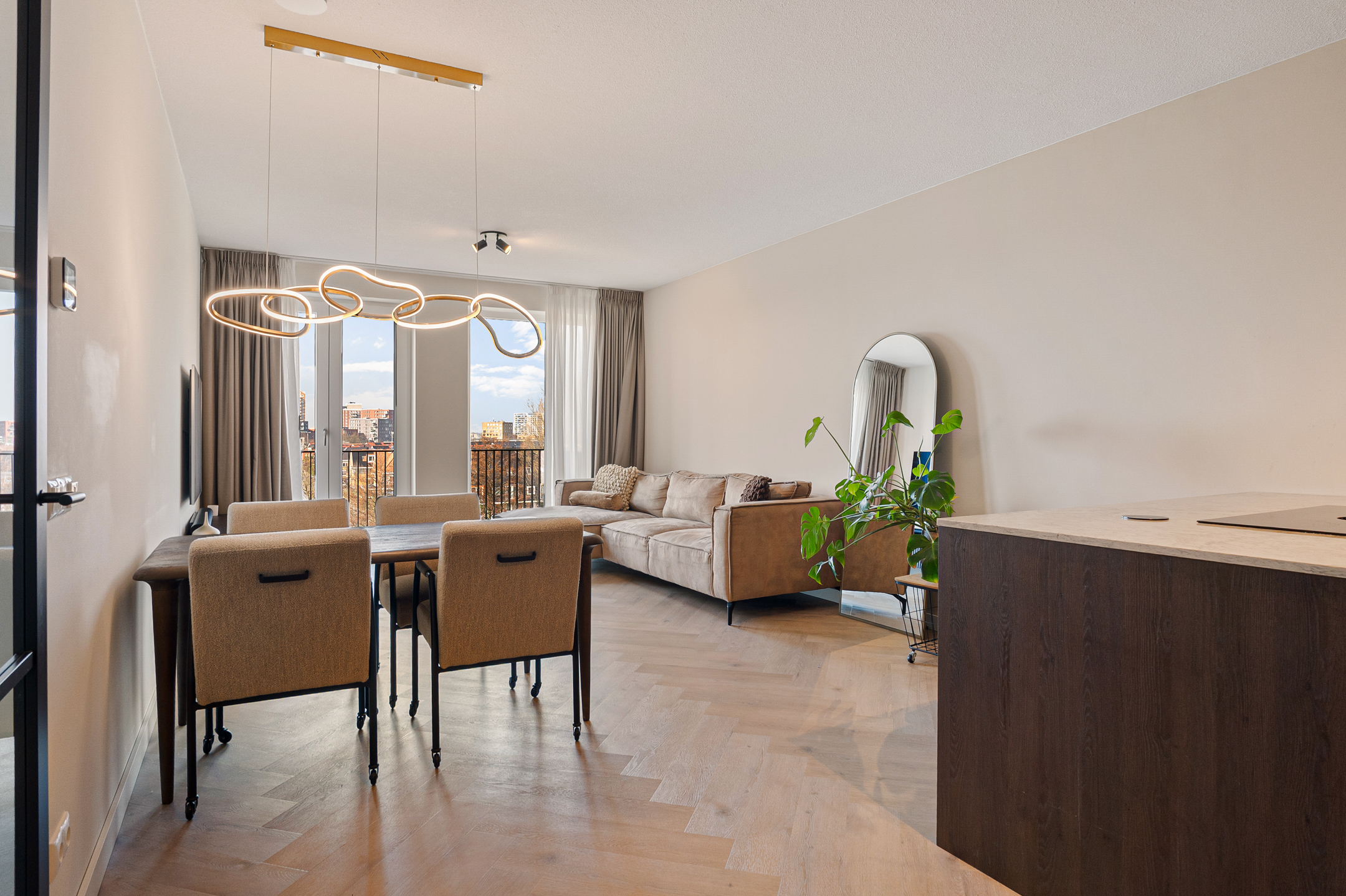 Bij binnenkomst kom je in de hal die toegang geeft tot vrijwel alle vertrekken. De ruime woonkamer vormt samen met de open keuken het hart van de woning. Dankzij de grote raampartijen valt er veel natuurlijk licht naar binnen, wat zorgt voor een ruimtelijk en prettig woongevoel. Vanuit de woonkamer stap je zo het balkon op het noordwesten, waar je kunt genieten van een vrij uitzicht.