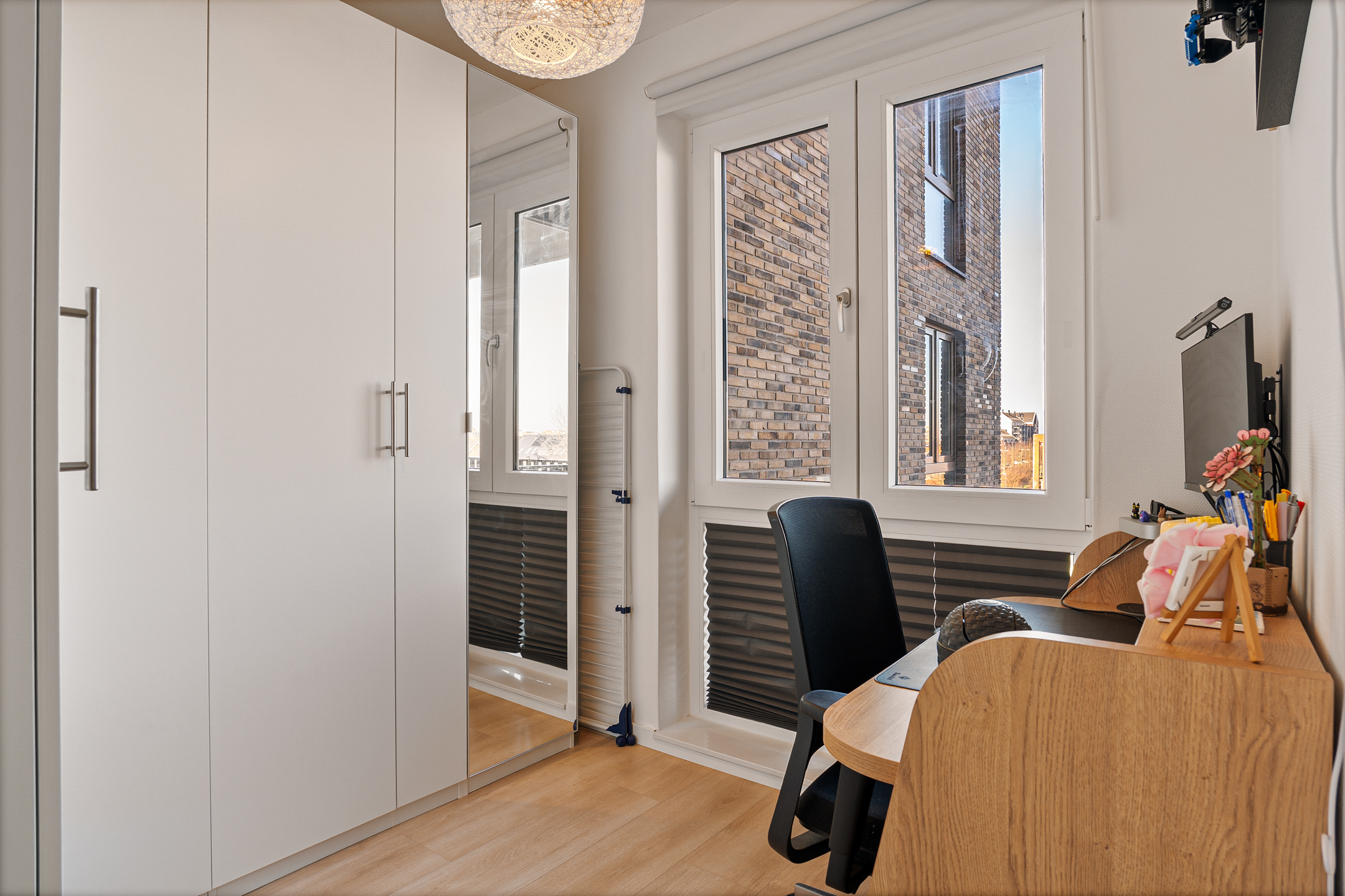 De moderne open keuken sluit naadloos aan op de woonkamer en is voorzien van divers hoogwaardig inbouwapparatuur en beschikt over een kookeiland. Verder beschikt het appartement over drie goed bemeten slaapkamers, ideaal als slaap-, werk- of hobbykamer.