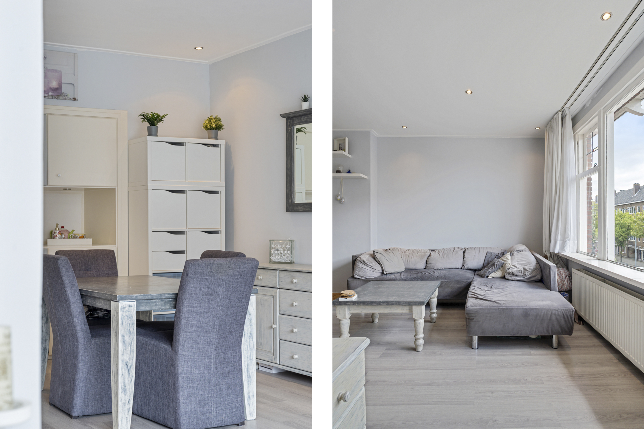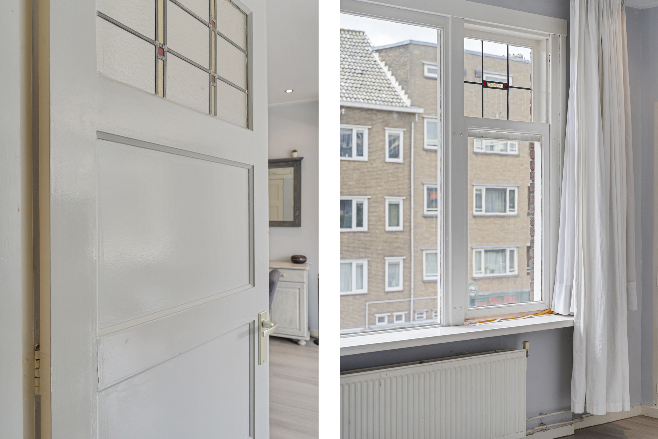 Deze charmante dubbele bovenwoning op de derde en halve vierde verdieping aan de Burgemeester Knappertlaan 268 c in Schiedam biedt verrassend veel ruimte en een warme, authentieke sfeer. Met originele glas-in-loodramen, vaste kasten, drie slaapkamers en een balkon aan de achterzijde is dit een fijne plek om thuis te komen.