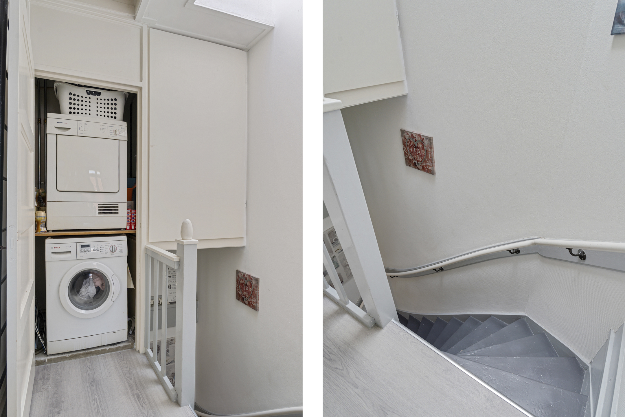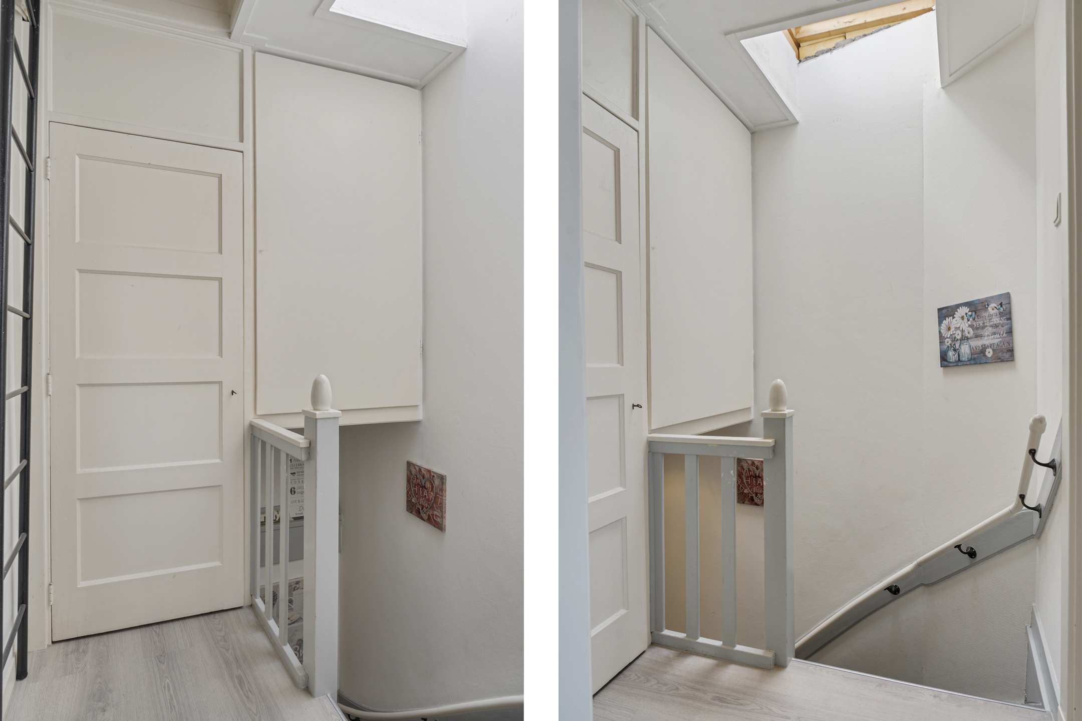 Doordat de overloop is voorzien van een ruime dakkoepel beschikt de overloop over veel licht. De vierde verdieping beschikt ook over een opstelplaats voor de cv-combiketel en een bergkast met wasmachineaansluiting. De twee slaapkamers zijn te vinden aan de achterzijde van de woning en allebei voorzien van glas-in-loodramen.