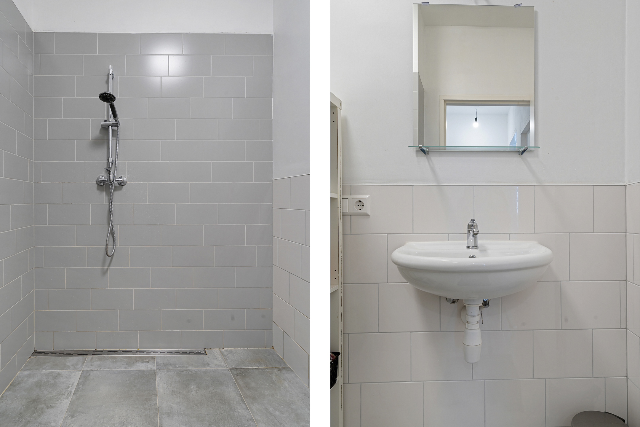 Verder vind je aan de achterzijde twee volwaardige slaapkamers, beide met grote ramen en een rustige ligging. De moderne badkamer is compleet betegeld en ingericht met een ruime inloopdouche en een stijlvol wastafelmeubel.