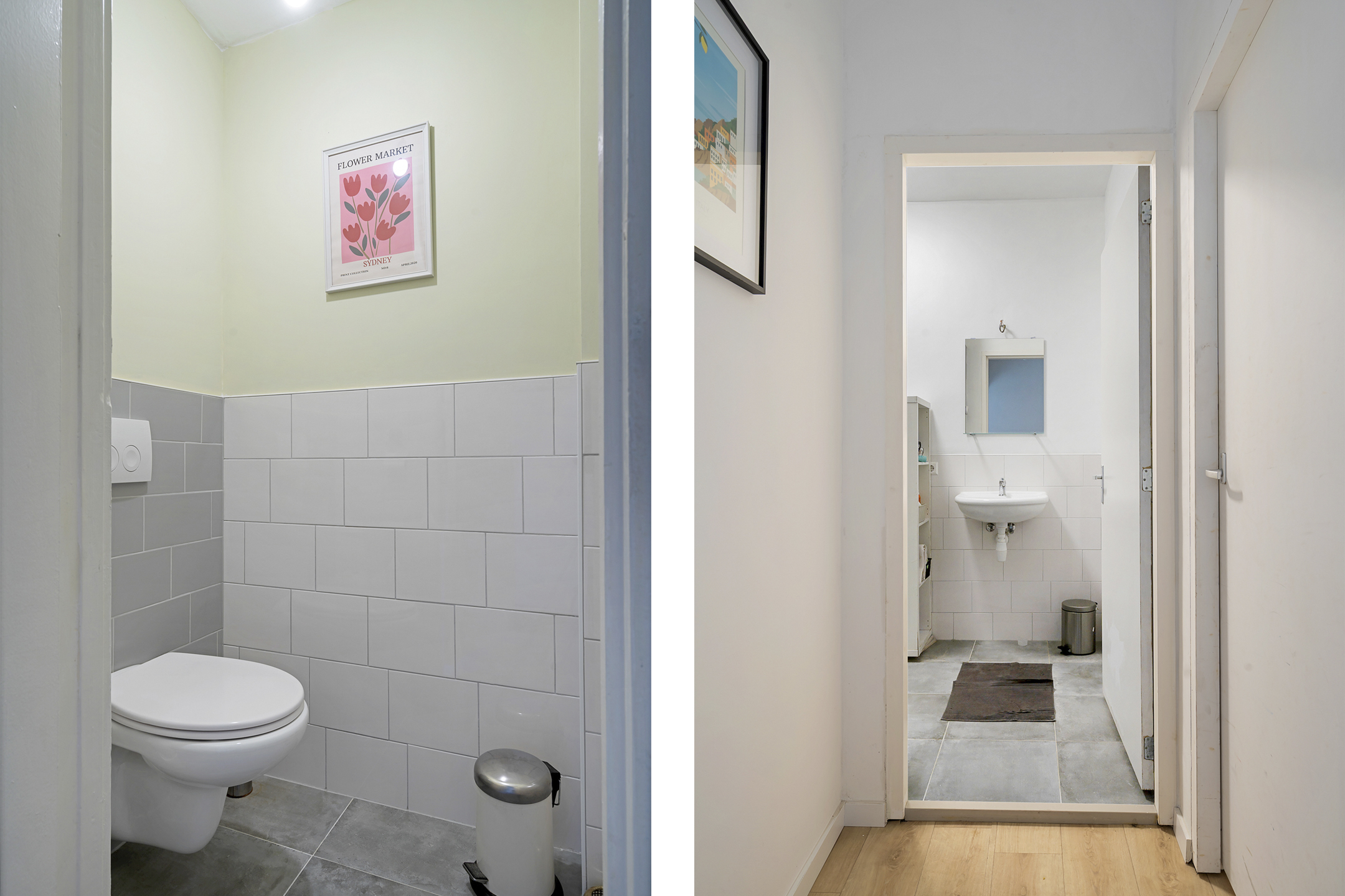 In de hal bevinden zich ook een separaat toilet met fonteintje, een praktische wasruimte met opstelplaats voor de wasmachine en cv-installatie, én extra bergruimte.