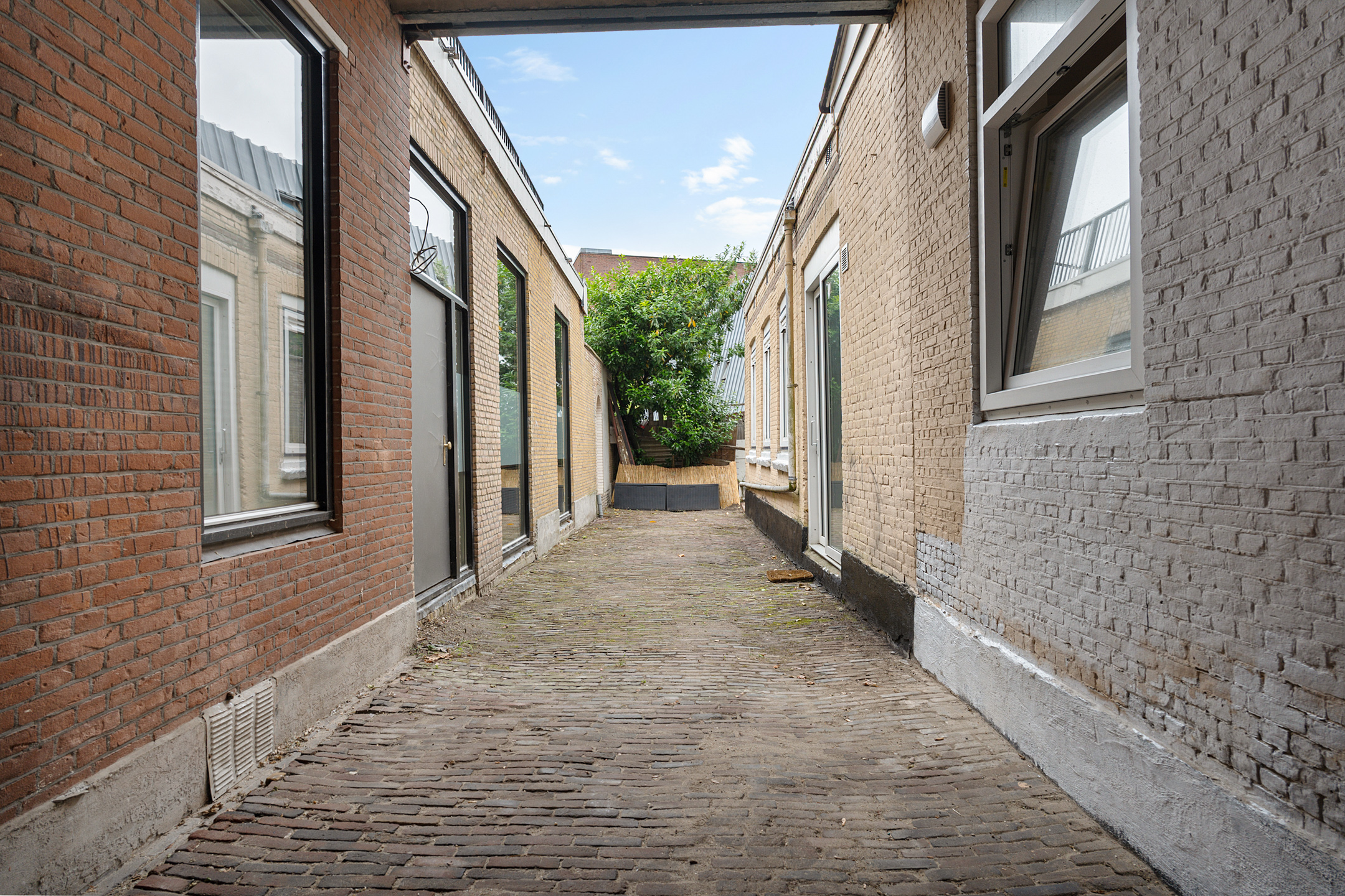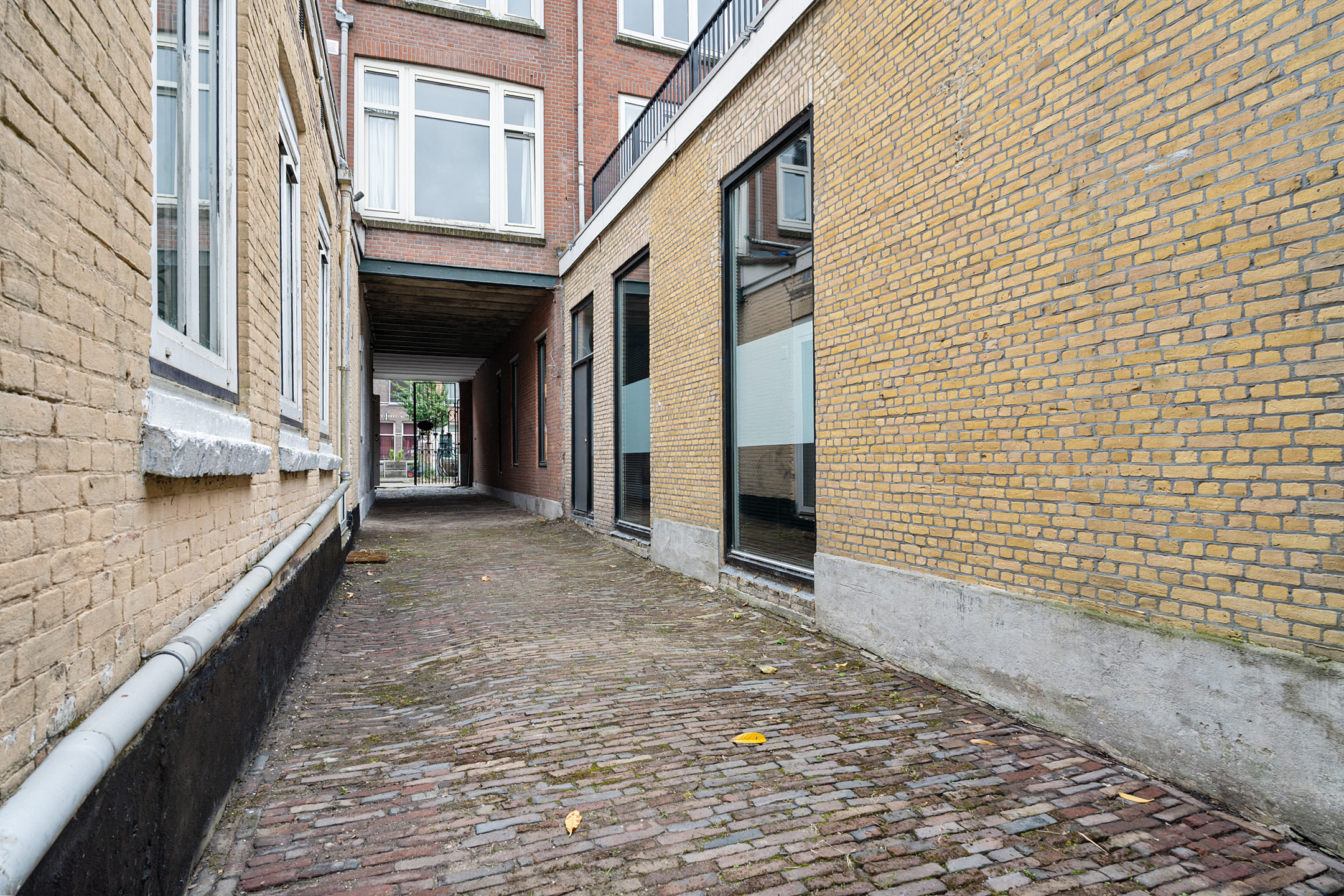 Achter de klassieke gevel van dit karakteristieke pand – opgedeeld in vijf appartementen – bevindt zich de eigen entree van jouw nieuwe thuis. Je bereikt de voordeur via een afgesloten toegangspoort, die tevens toegang geeft tot je privéparkeerplek en stadstuin.