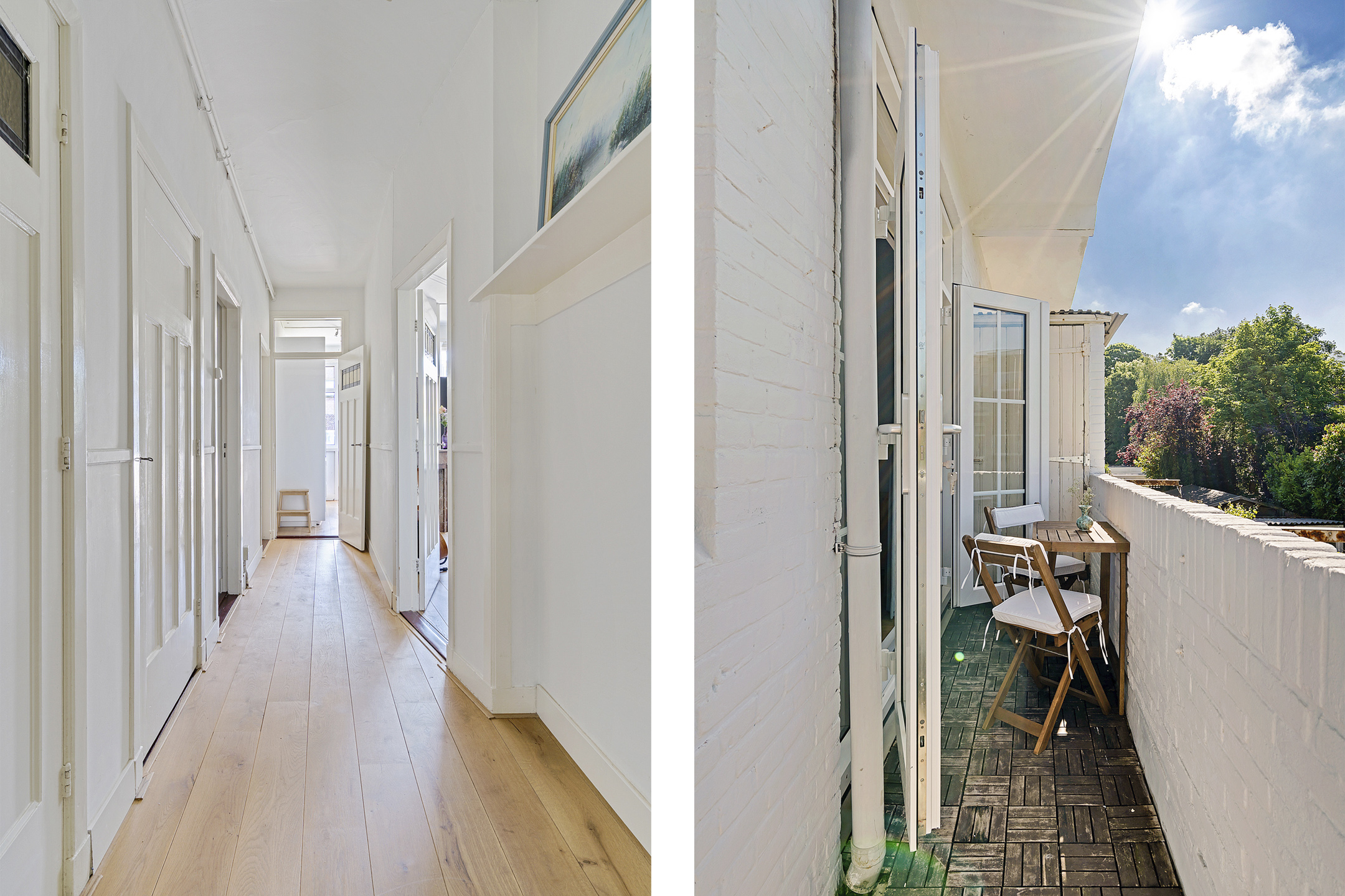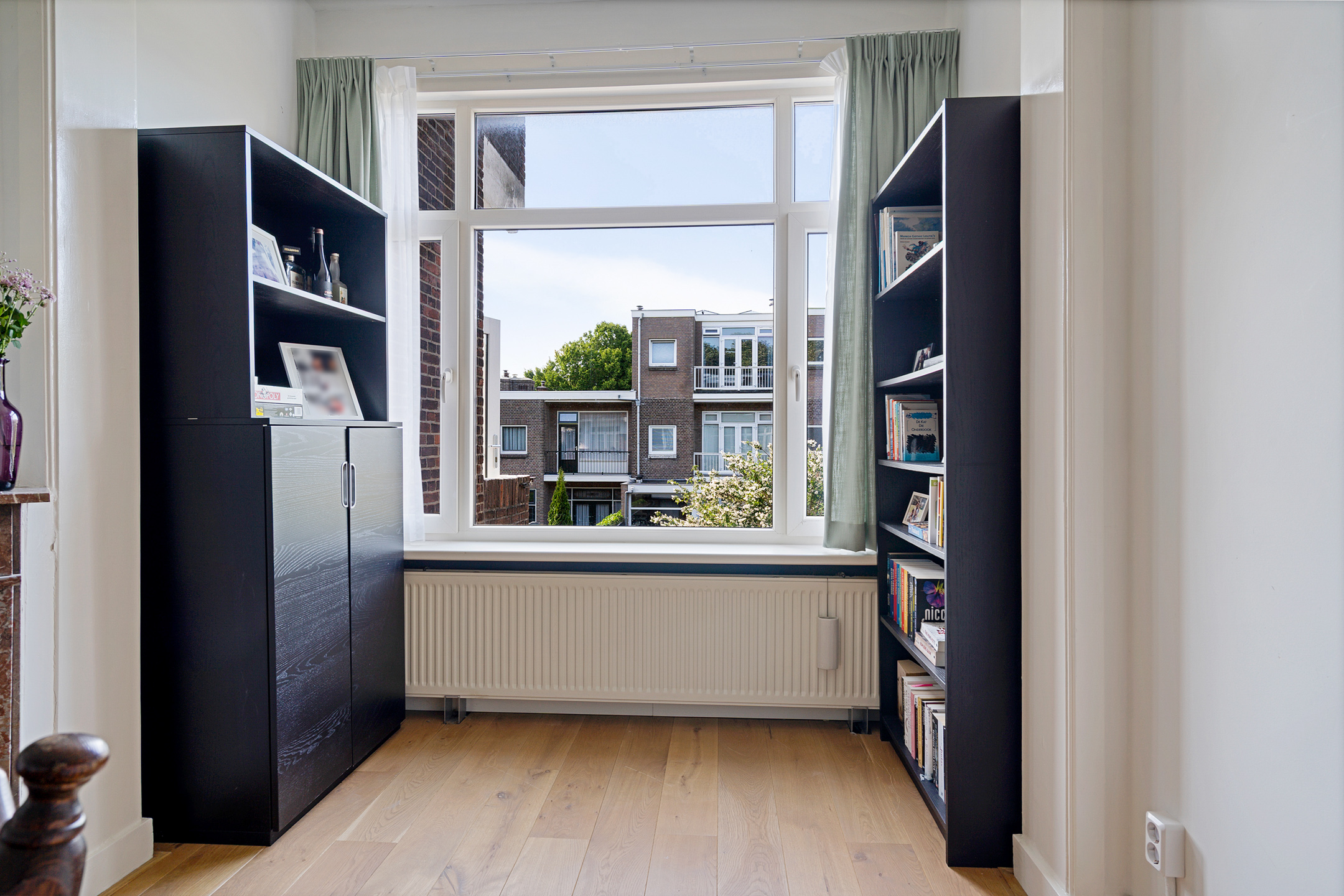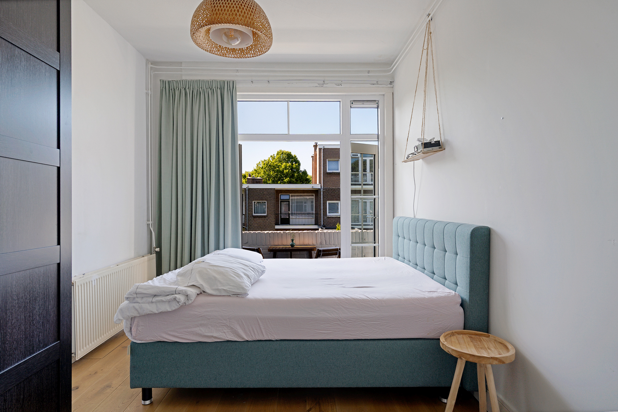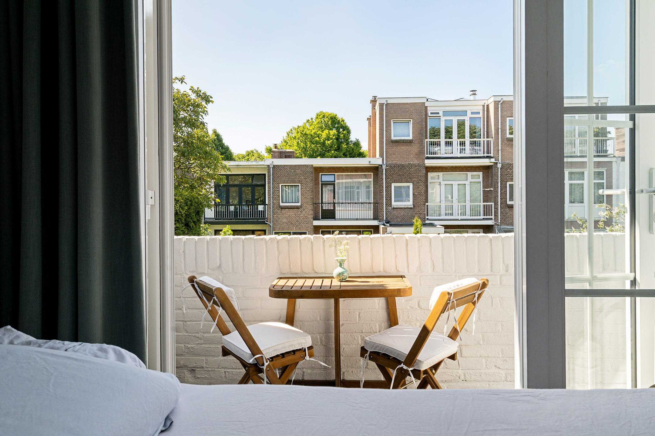 Aan de voorzijde bevindt zich een lichte slaapkamer met uitzicht op de groene laan. De royale tweede slaapkamer ligt aan de achterzijde en beschikt over openslaande deuren naar het balkon. Beide kamers zijn ruim genoeg voor een tweepersoonsbed en een kledingkast of bureau.
