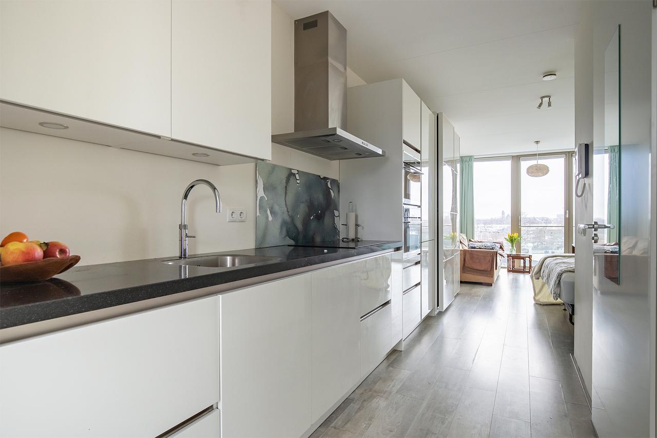 Wonen op hoogte in deze moderne studio van ca. 39 m² aan de Calandkade in Den Haag. Gelegen op de 4e etage, comfortabel bereikbaar met de lift.
