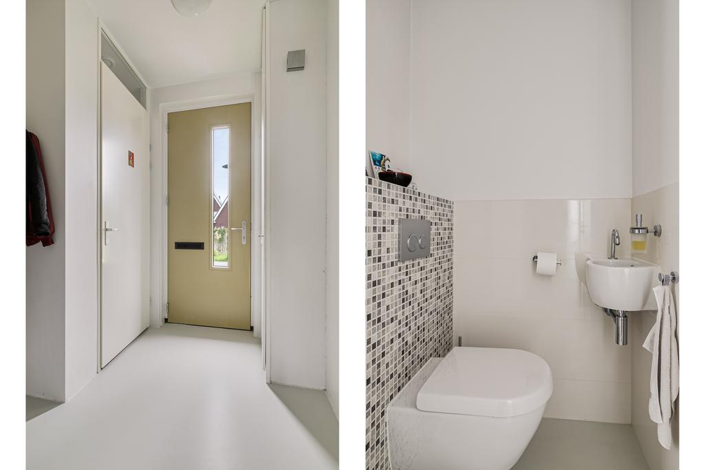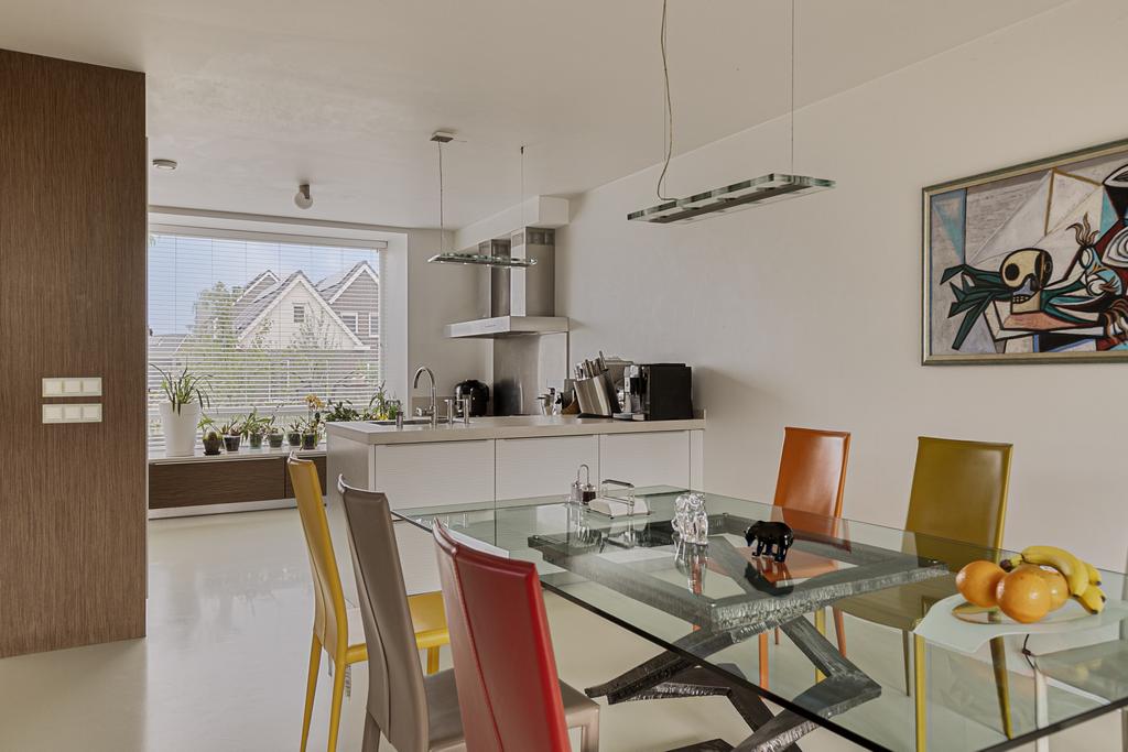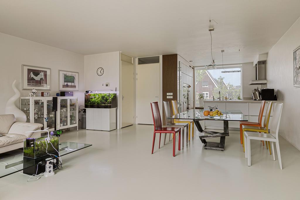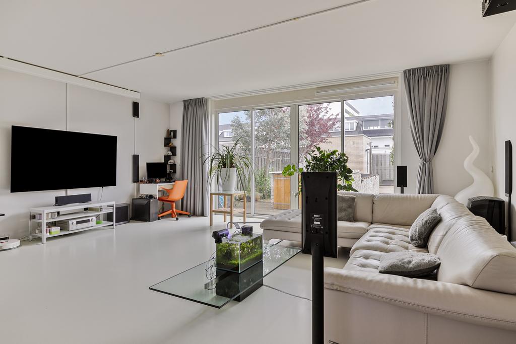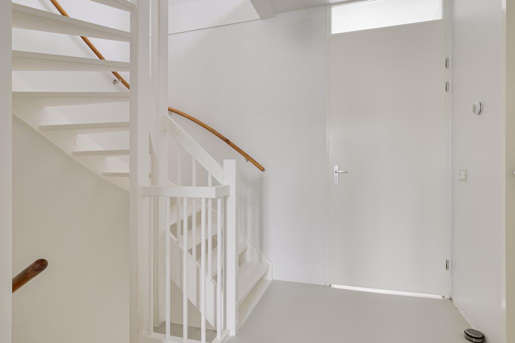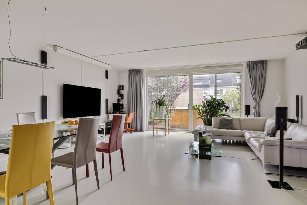 De entreehal van de woning is voorzien van een meterkast, separaat toilet, garderobe en trapopgang naar de eerste verdieping. Bij binnenkomst in de woonkamer val de hoeveelheid ruimte en licht meteen op. Aan de voorzijde is de open keuken gelegen. De keuken is gezien van diverse inbouwapparatuur en veel kastruimte. Aan de achterzijde is de tuingerichte woonkamer gelegen. Vanuit de woonkamer heb je via de schuifpui toegang tot de diepe, goed onderhouden achtertuin. De volledige benedenverdieping is voorzien van vloerverwarming.