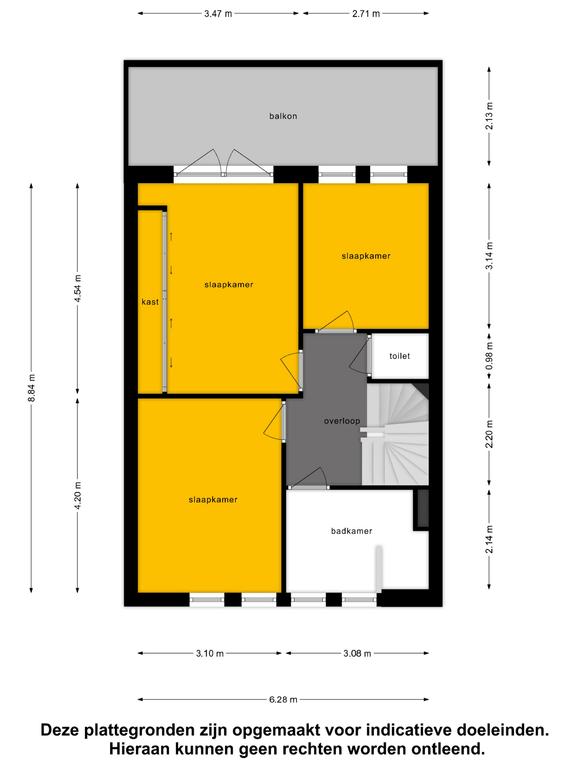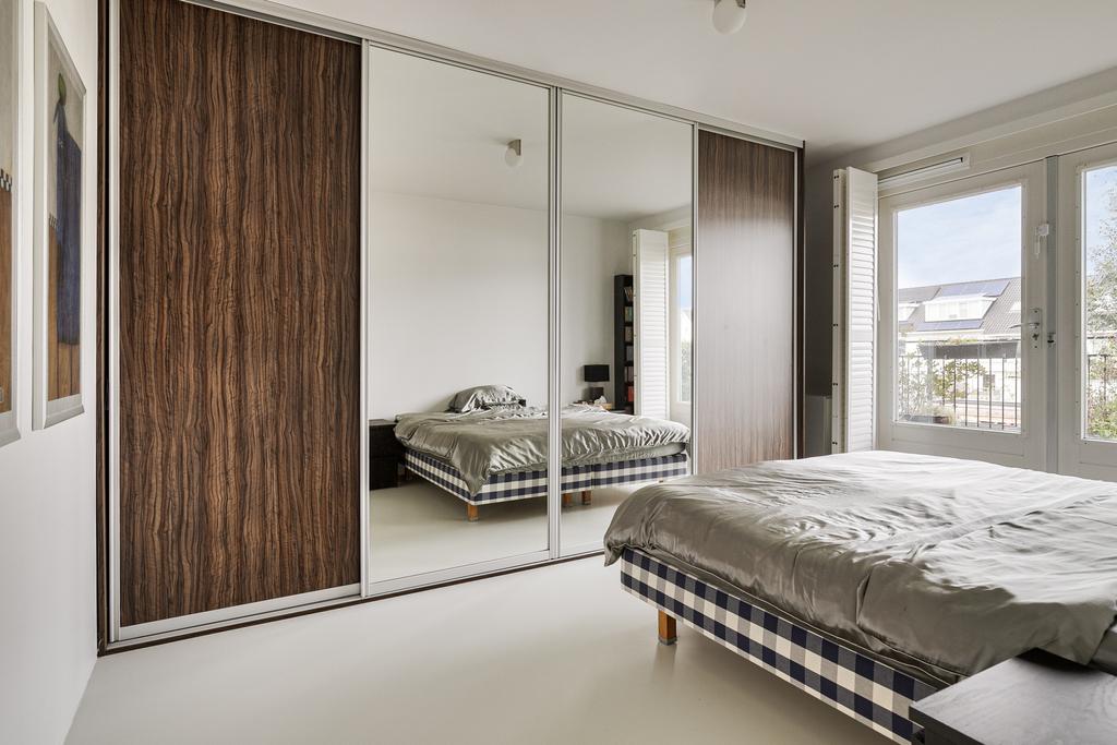 Vanaf de overloop is er toegang tot de slaapkamers, de badkamer en het separate toilet. Slaapkamer 1 en de badkamer liggen aan de voorzijde van de woning. De badkamer is voorzien van een ligbad, badkamermeubel, spiegelkast en inloopregendouche. Slaapkamer 2 en slaapkamer 3 zijn aan de achterzijde van de woning gelegen. Slaapkamer 2 biedt toegang tot het ruime balkon.