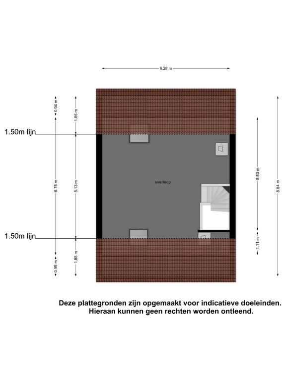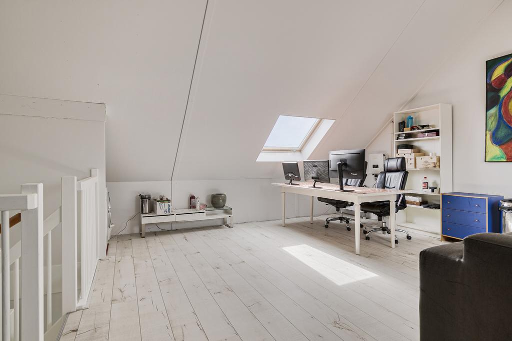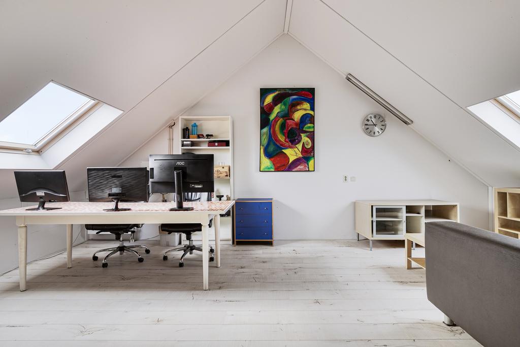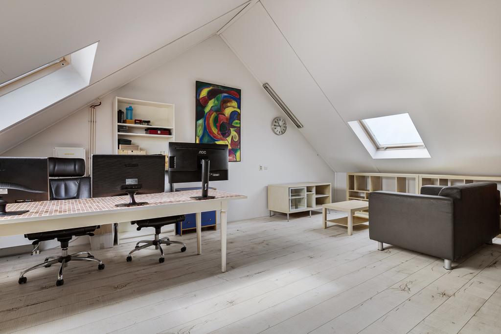 De zolderverdieping is 1 grote ruimte met aan weerzijde grote dakramen. Hier bevindt zich tevens de opstelplaats van de cv-ketel en de wasmachineaansluiting.