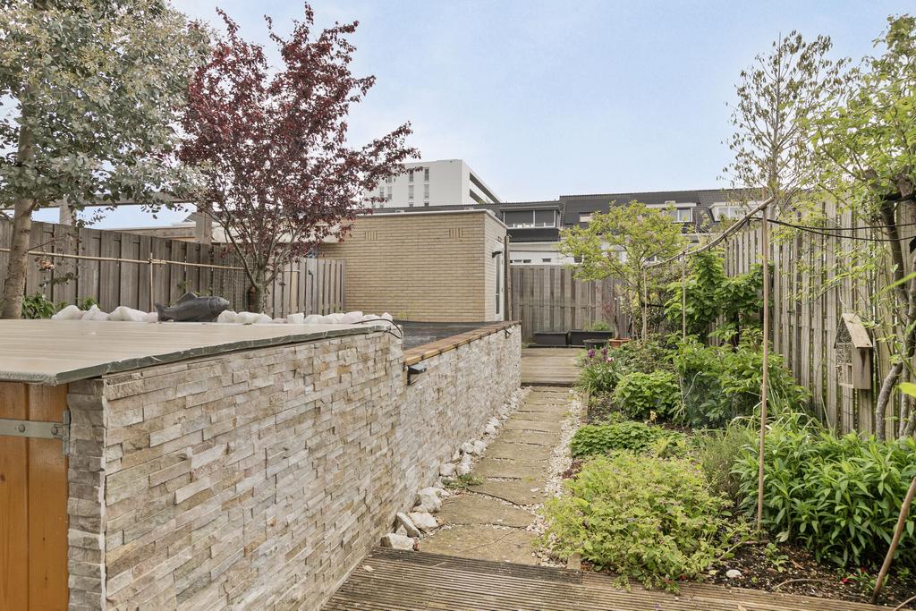 De voortuin is gelegen op het zuidwesten, er is genoeg ruimte om hier een gezellig zitje te creëren en te genieten van de zon. De diepe achtertuin is netjes onderhouden en is voorzien van volgroeid groen.