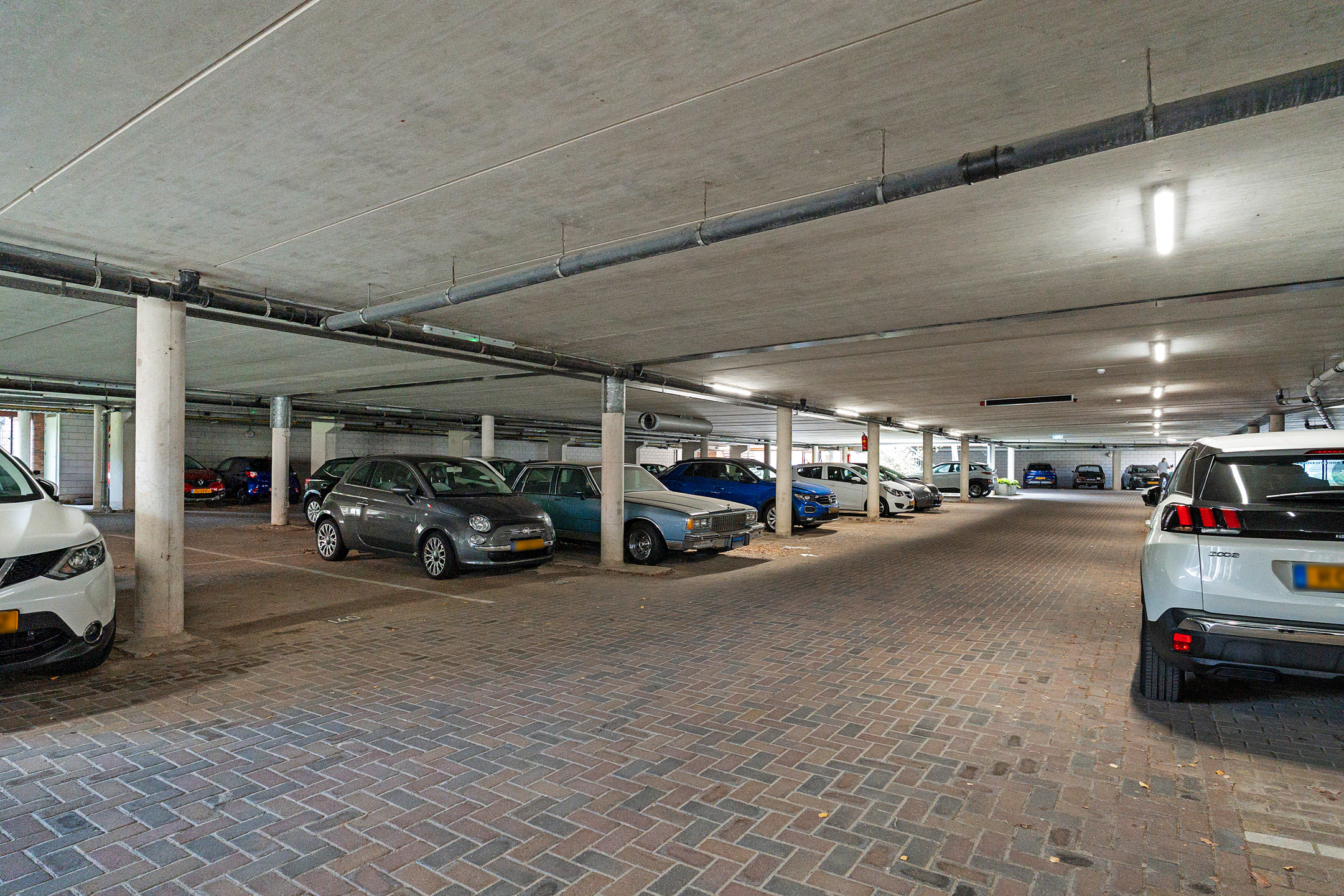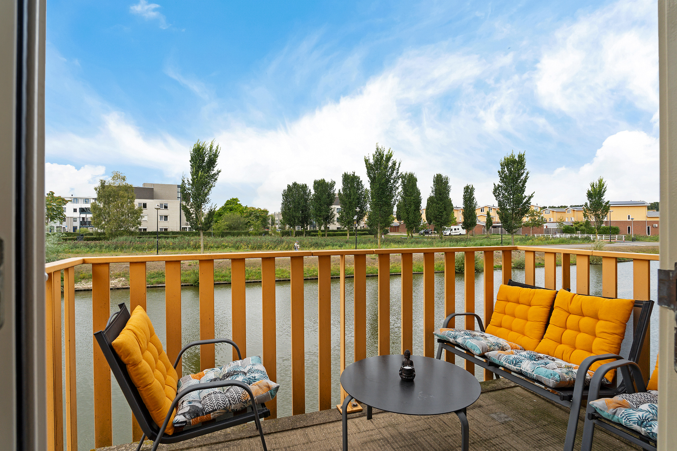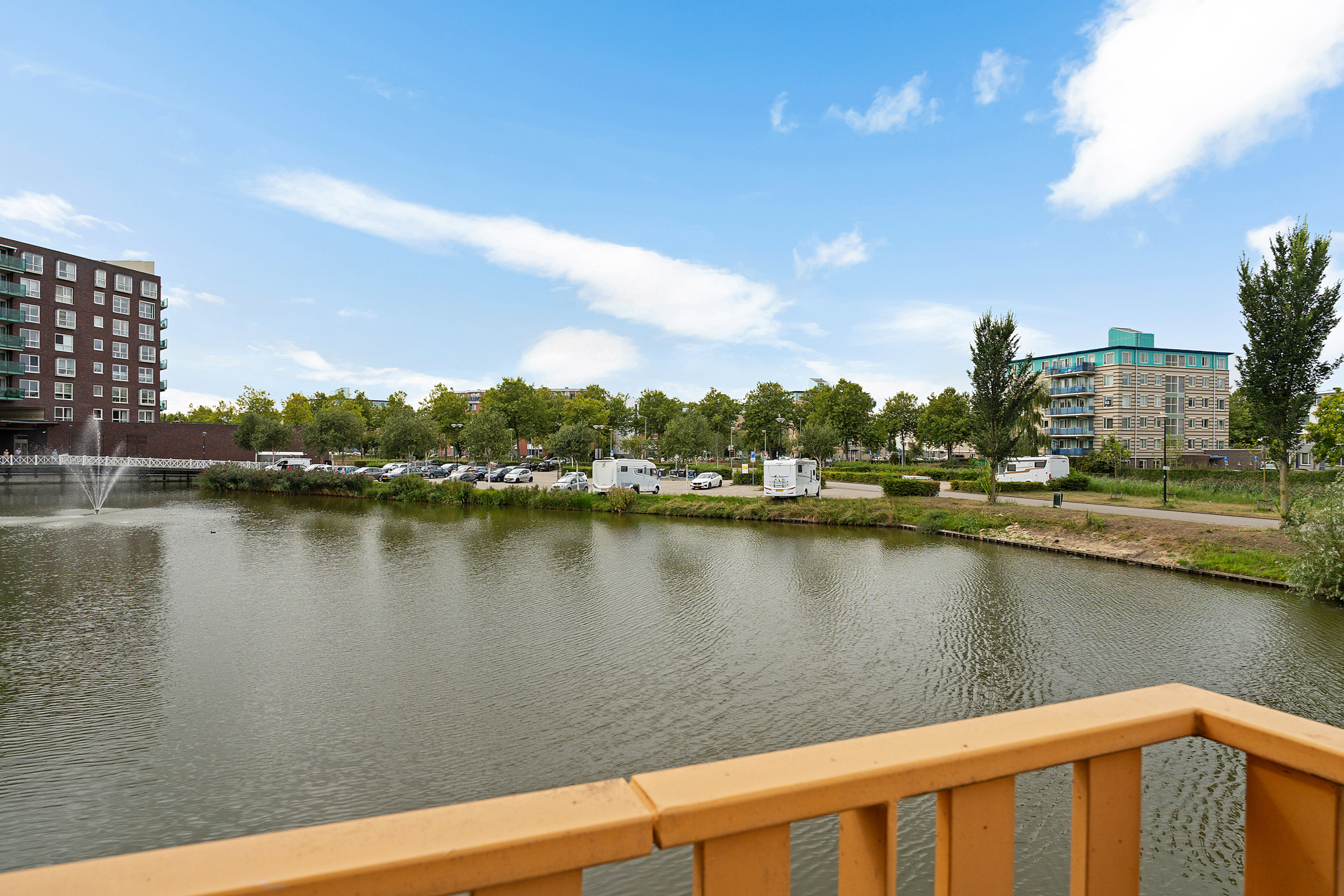 Het balkon aan de achterzijde biedt vrij uitzicht over het water en is perfect georiënteerd op het westen. Een fijne plek om buiten te ontspannen in de middag- of avondzon. Op de begane grond beschik je daarnaast over een eigen berging en een privéparkeerplaats direct onder het complex.
